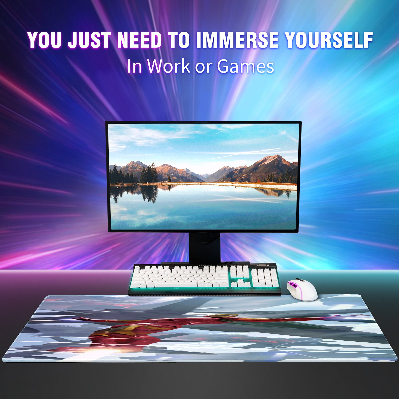Large Mouse Pad for Desktop, Cute Desk Mat Pad Protector for Work & Gaming, Aesthetic Pretty Anti-Slip Laptop Blotter Cover for Office School Home Supplies, 漫威 (424) , 35.4inx15.7in