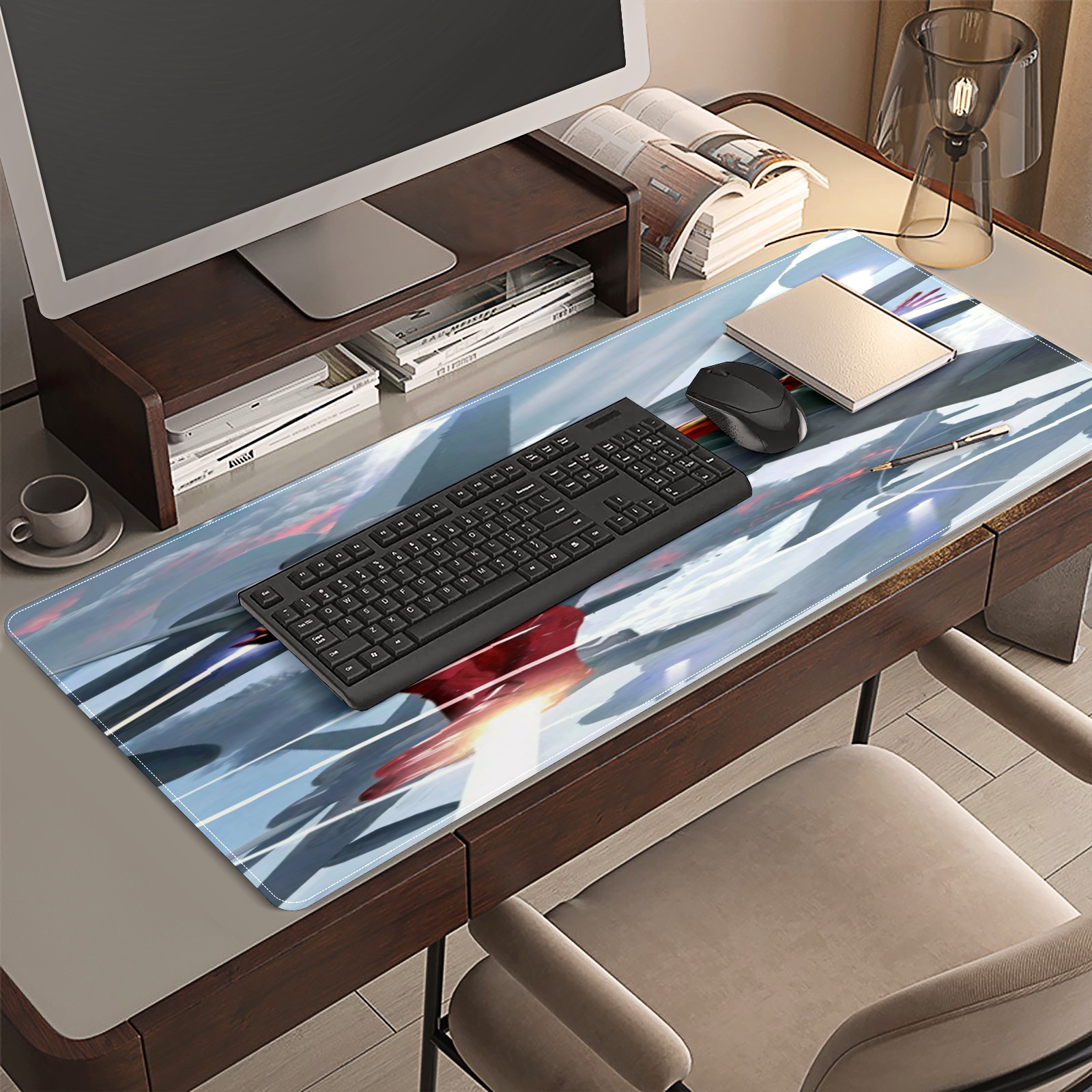 <p>This 35.4” × 15.7” extended desk mat offers ample space for your keyboard, mouse and essentials, working as a smooth work/writing pad while protecting your desktop from scratches.</p><p>With stylish artistic patterns, it adds personality to your home office, study or gaming setup. The high-density woven surface ensures precise, smooth mouse tracking for work and gaming.</p><p>Featuring an anti-slip natural rubber base for firm grip and stability, the mat is soft, elastic and odorless. Reinforced stitched edges prevent fraying and curling for long-lasting durability.</p>