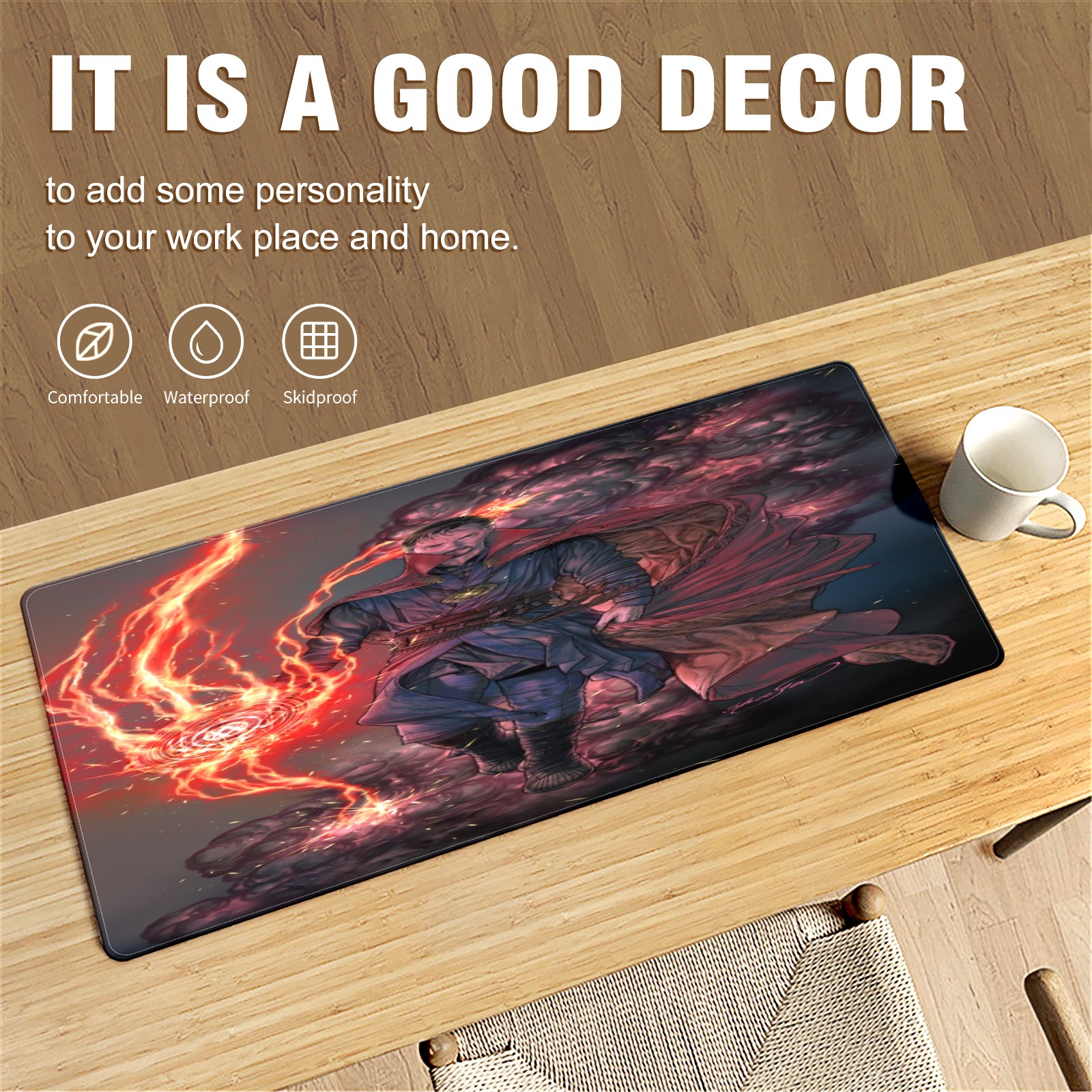 • <p>This 35.4” × 15.7” extended desk mat offers ample space for your keyboard, mouse and essentials, working as a smooth work/writing pad while protecting your desktop from scratches.</p><p>With stylish artistic patterns, it adds personality to your home office, study or gaming setup. The high-density woven surface ensures precise, smooth mouse tracking for work and gaming.</p><p>Featuring an anti-slip natural rubber base for firm grip and stability, the mat is soft, elastic and odorless. Reinforced stitched edges prevent fraying and curling for long-lasting durability.</p>