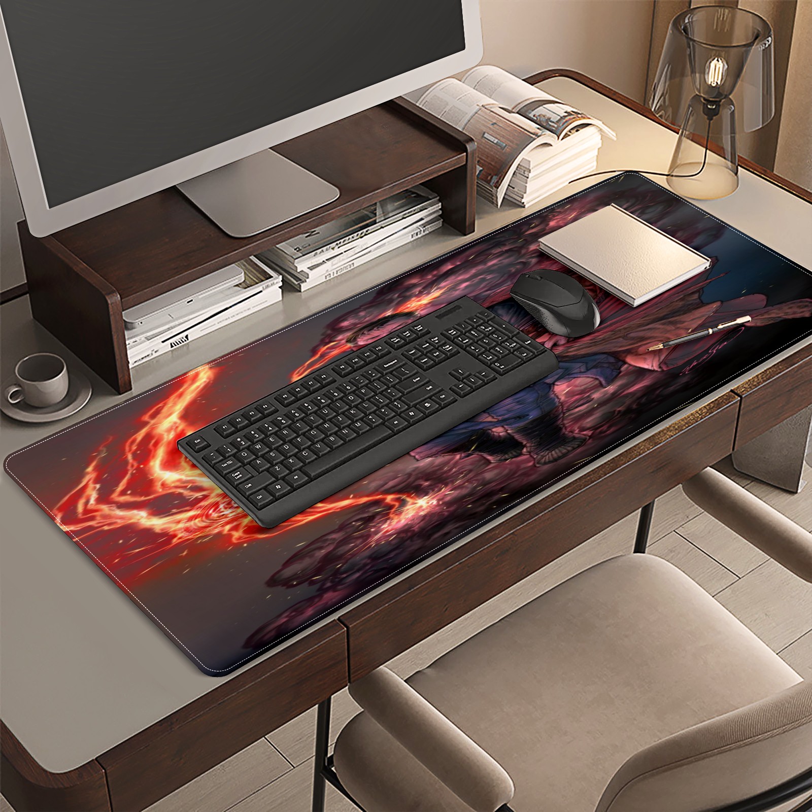 <p>This 35.4” × 15.7” extended desk mat offers ample space for your keyboard, mouse and essentials, working as a smooth work/writing pad while protecting your desktop from scratches.</p><p>With stylish artistic patterns, it adds personality to your home office, study or gaming setup. The high-density woven surface ensures precise, smooth mouse tracking for work and gaming.</p><p>Featuring an anti-slip natural rubber base for firm grip and stability, the mat is soft, elastic and odorless. Reinforced stitched edges prevent fraying and curling for long-lasting durability.</p>