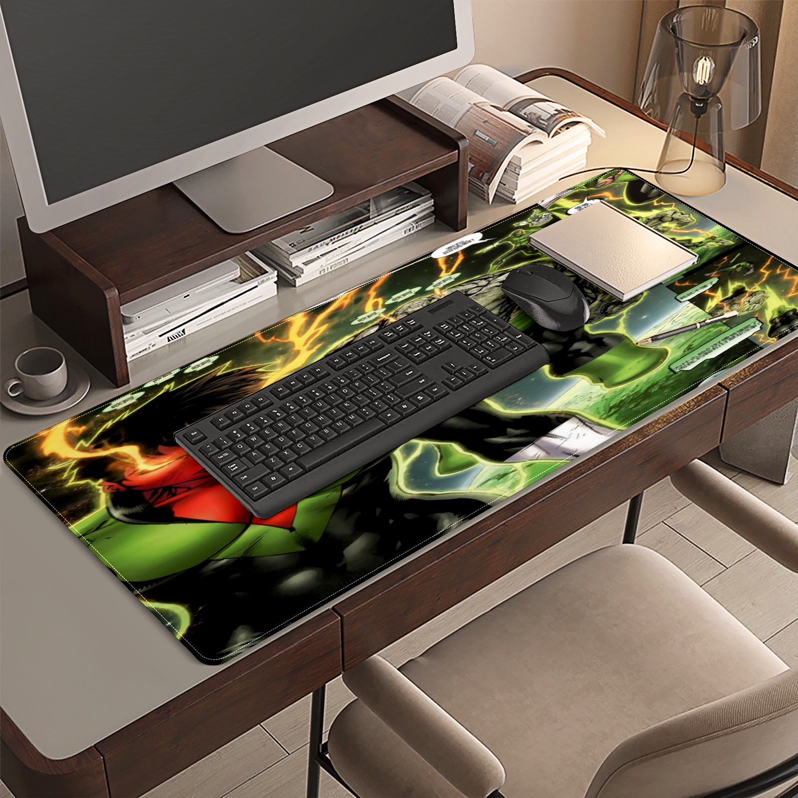 • <p>This 35.4” × 15.7” extended desk mat offers ample space for your keyboard, mouse and essentials, working as a smooth work/writing pad while protecting your desktop from scratches.</p><p>With stylish artistic patterns, it adds personality to your home office, study or gaming setup. The high-density woven surface ensures precise, smooth mouse tracking for work and gaming.</p><p>Featuring an anti-slip natural rubber base for firm grip and stability, the mat is soft, elastic and odorless. Reinforced stitched edges prevent fraying and curling for long-lasting durability.</p>
