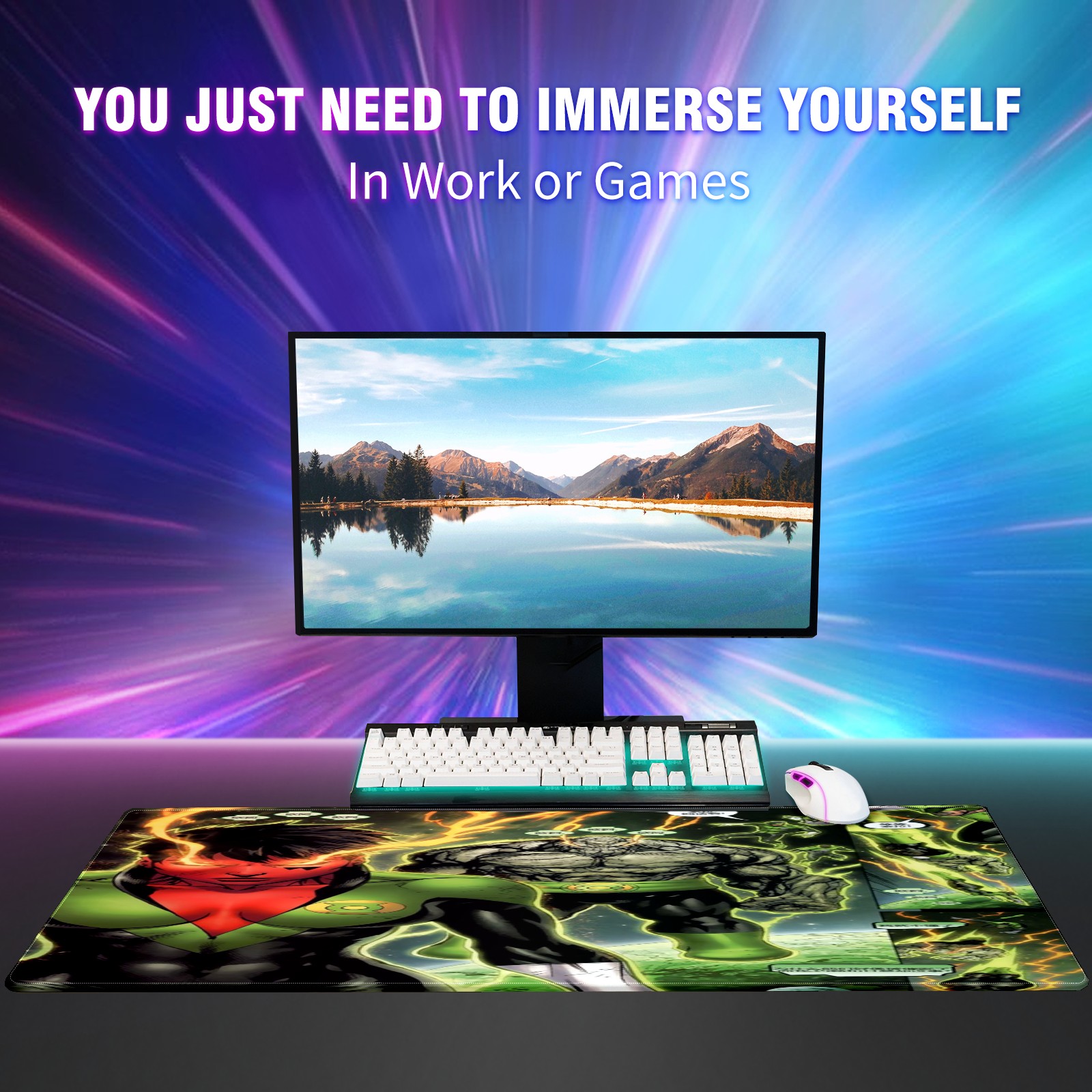 Large Mouse Pad for Desktop, Cute Desk Mat Pad Protector for Work & Gaming, Aesthetic Pretty Anti-Slip Laptop Blotter Cover for Office School Home Supplies, 漫威 (50) , 35.4inx15.7in