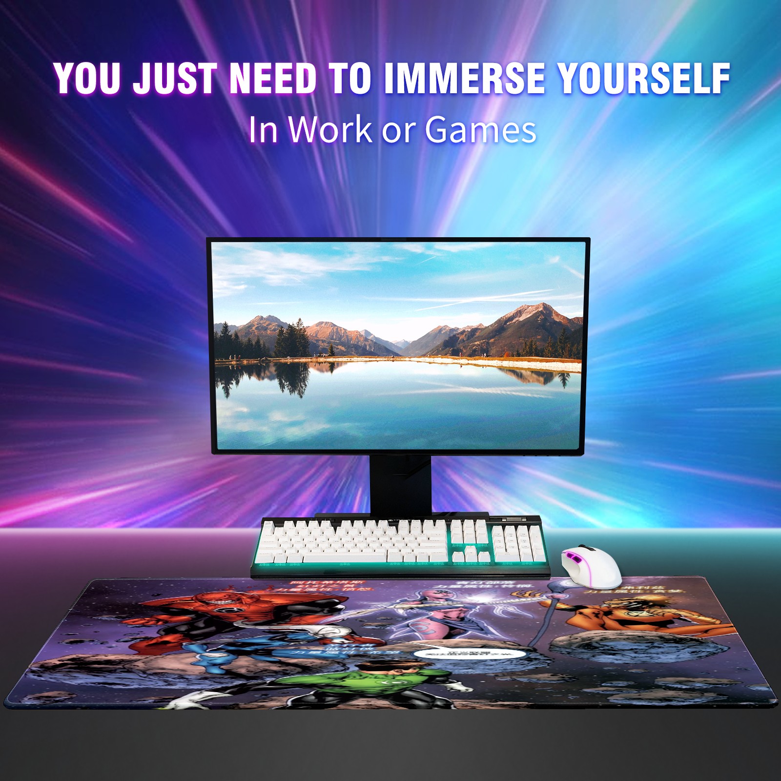 Large Mouse Pad for Desktop, Cute Desk Mat Pad Protector for Work & Gaming, Aesthetic Pretty Anti-Slip Laptop Blotter Cover for Office School Home Supplies, 漫威 (46) , 35.4inx15.7in