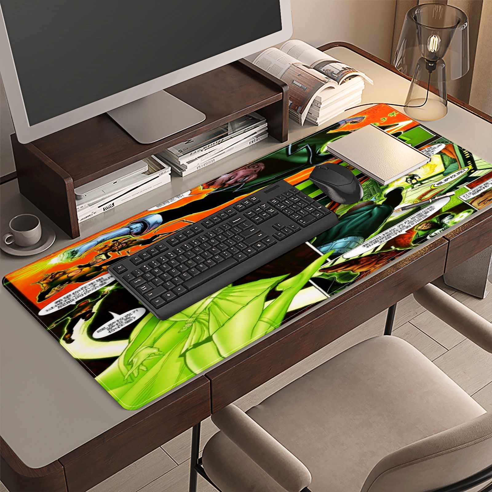 <p>This 35.4” × 15.7” extended desk mat offers ample space for your keyboard, mouse and essentials, working as a smooth work/writing pad while protecting your desktop from scratches.</p><p>With stylish artistic patterns, it adds personality to your home office, study or gaming setup. The high-density woven surface ensures precise, smooth mouse tracking for work and gaming.</p><p>Featuring an anti-slip natural rubber base for firm grip and stability, the mat is soft, elastic and odorless. Reinforced stitched edges prevent fraying and curling for long-lasting durability.</p>
