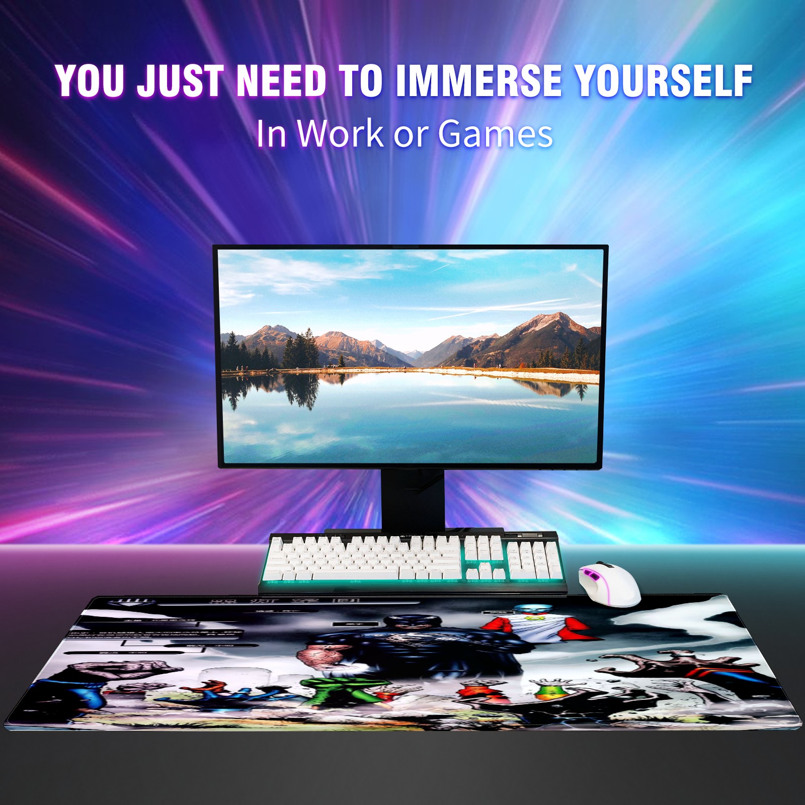 Large Mouse Pad for Desktop, Cute Desk Mat Pad Protector for Work & Gaming, Aesthetic Pretty Anti-Slip Laptop Blotter Cover for Office School Home Supplies, 漫威 (39) , 35.4inx15.7in