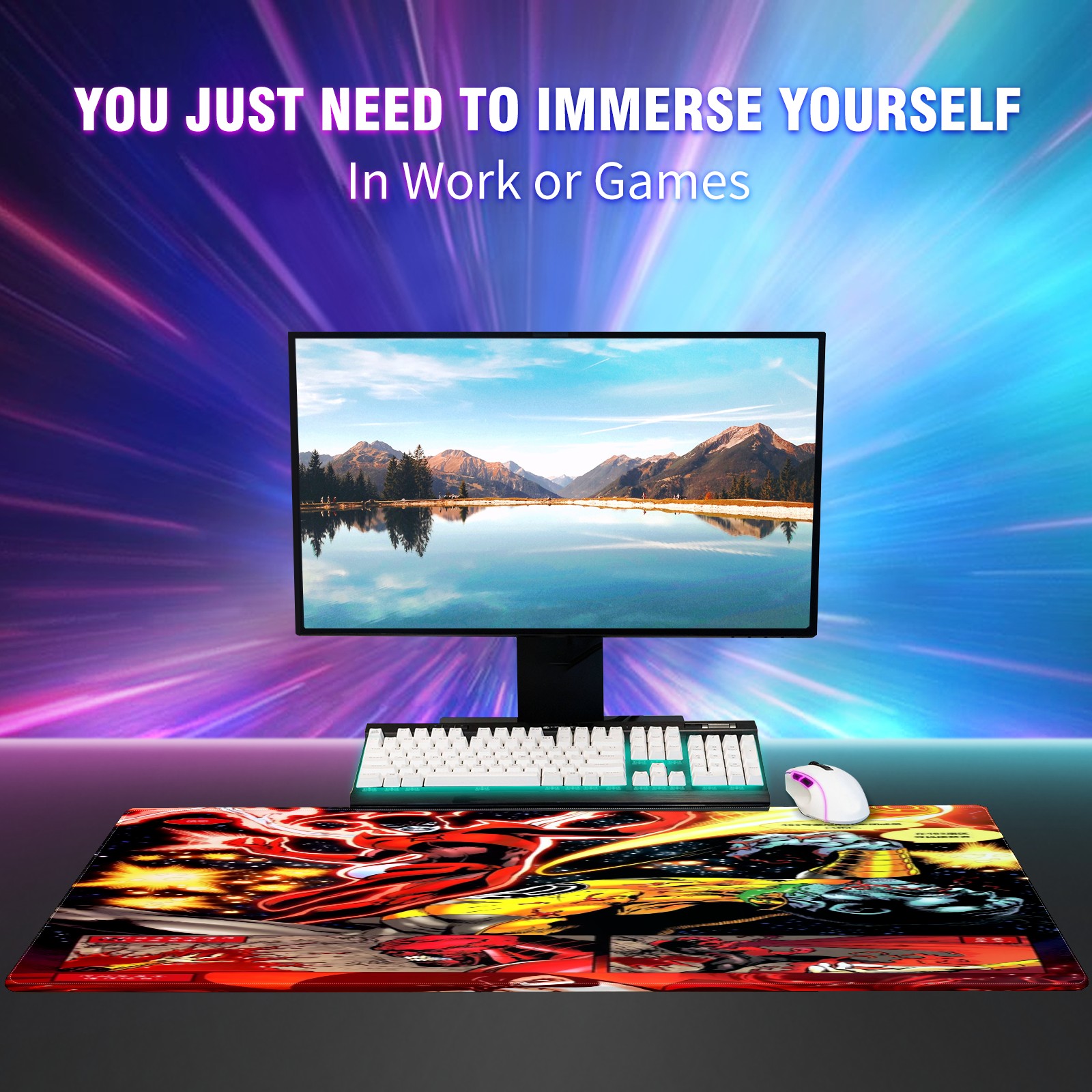 Large Mouse Pad for Desktop, Cute Desk Mat Pad Protector for Work & Gaming, Aesthetic Pretty Anti-Slip Laptop Blotter Cover for Office School Home Supplies, 漫威 (36) , 35.4inx15.7in