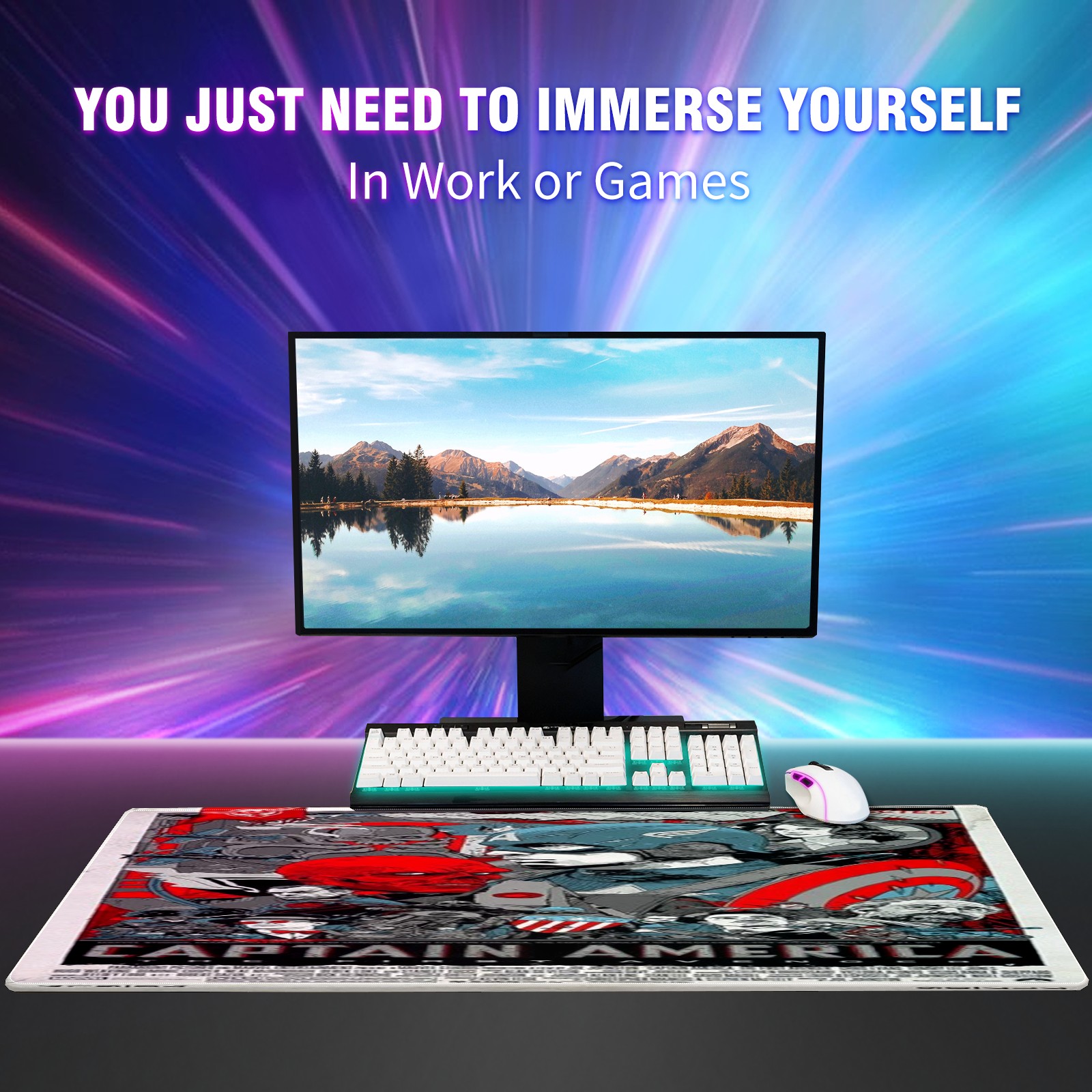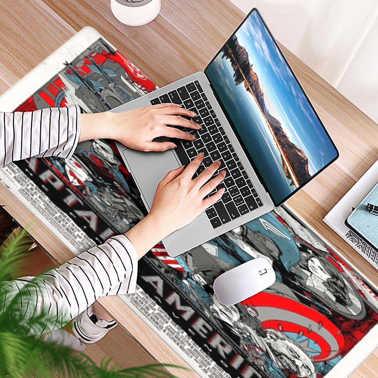 Large Mouse Pad for Desktop, Cute Desk Mat Pad Protector for Work & Gaming, Aesthetic Pretty Anti-Slip Laptop Blotter Cover for Office School Home Supplies, 漫威 (27) , 35.4inx15.7in