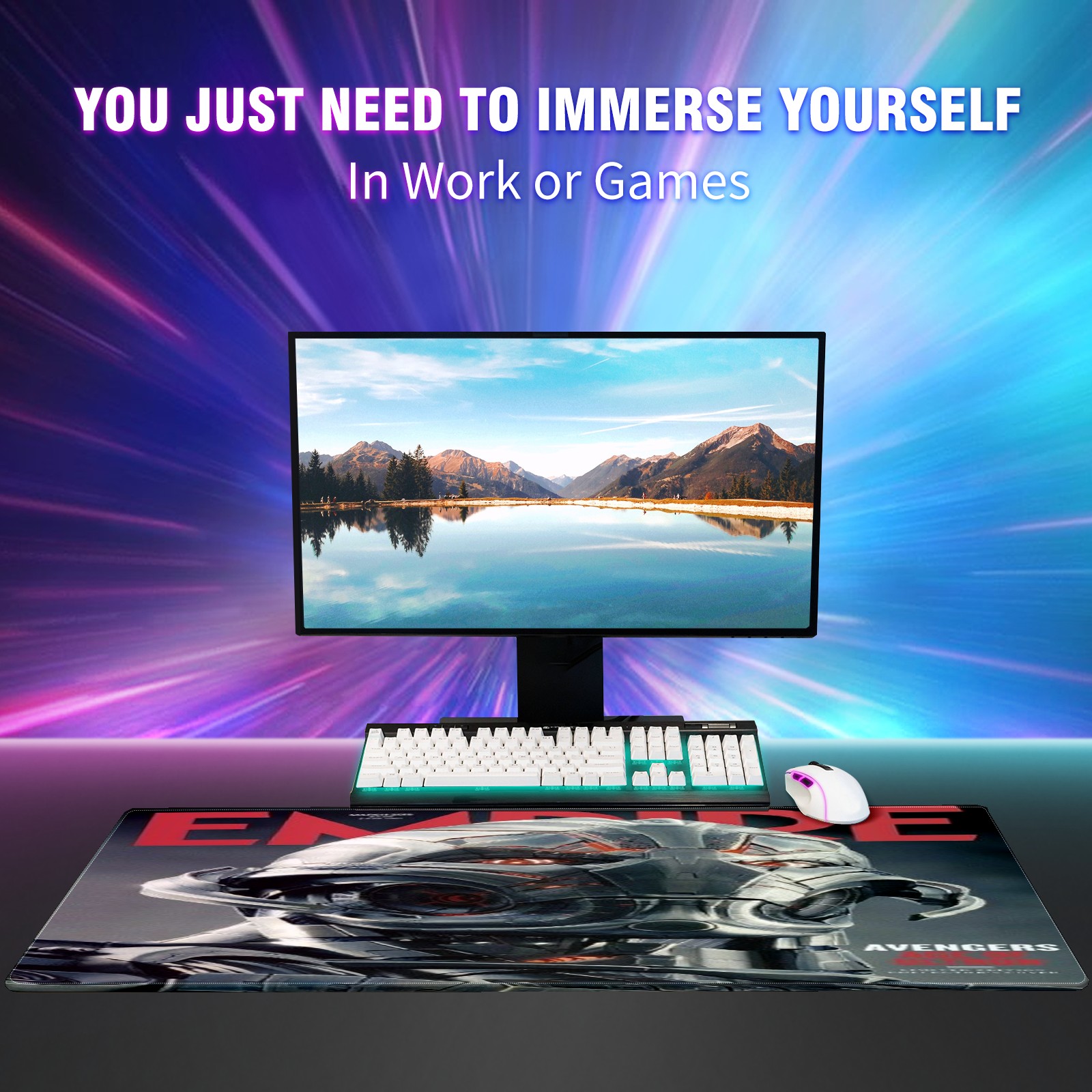 Large Mouse Pad for Desktop, Cute Desk Mat Pad Protector for Work & Gaming, Aesthetic Pretty Anti-Slip Laptop Blotter Cover for Office School Home Supplies, 漫威 (26) , 35.4inx15.7in