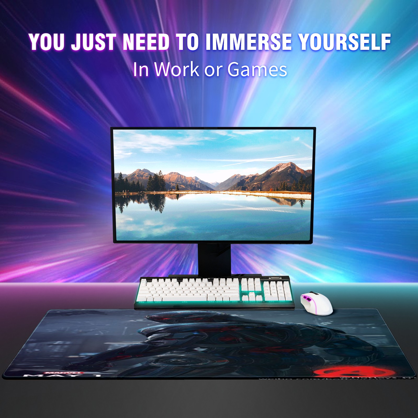 Large Mouse Pad for Desktop, Cute Desk Mat Pad Protector for Work & Gaming, Aesthetic Pretty Anti-Slip Laptop Blotter Cover for Office School Home Supplies, 漫威 (25) , 35.4inx15.7in