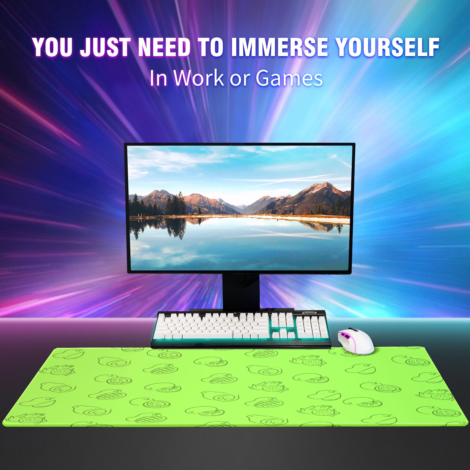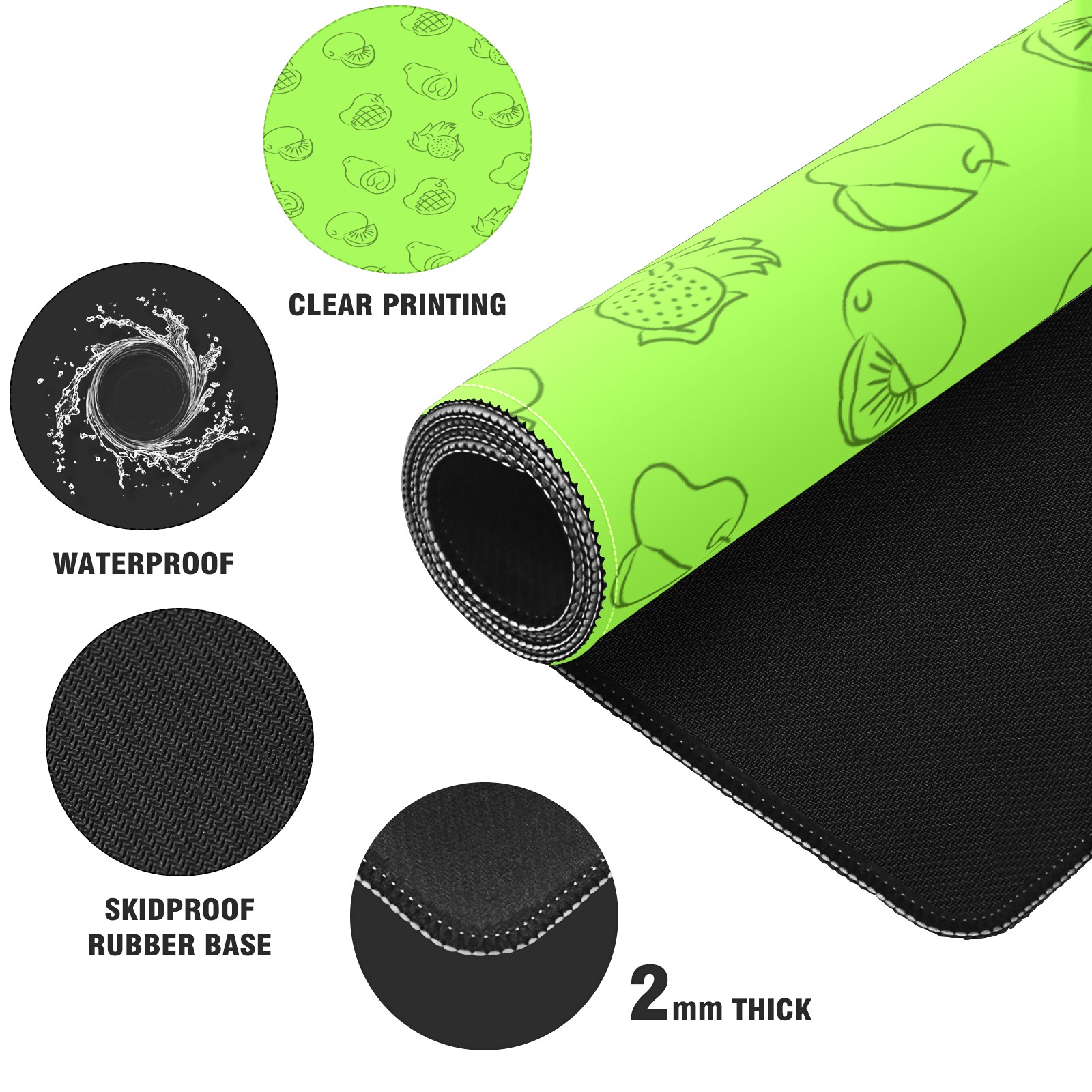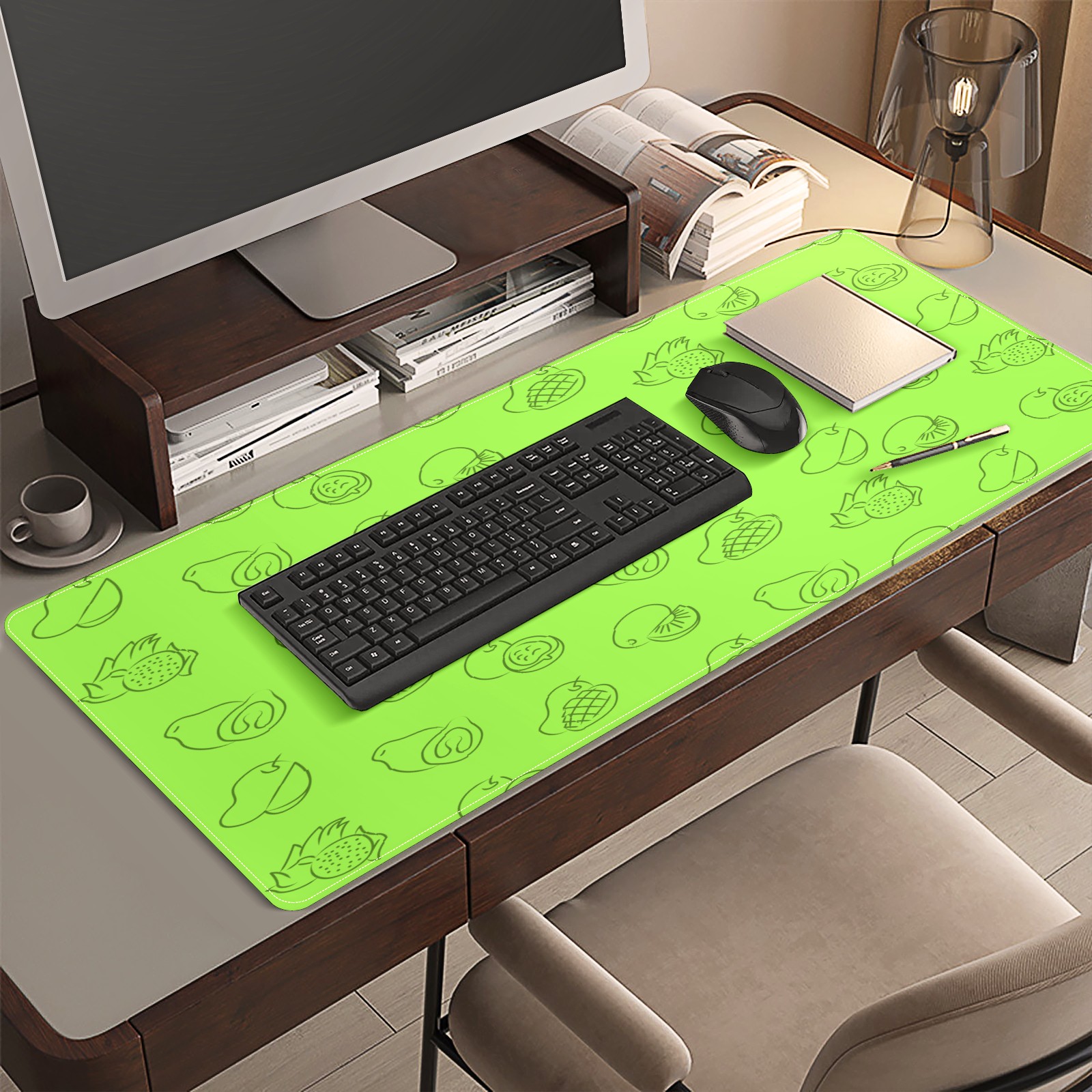 Large Mouse Pad for Desktop, Cute Desk Mat Pad Protector for Work & Gaming, Aesthetic Pretty Anti-Slip Laptop Blotter Cover for Office School Home Supplies, Fruits Green Pattern , 35.4inx15.7in