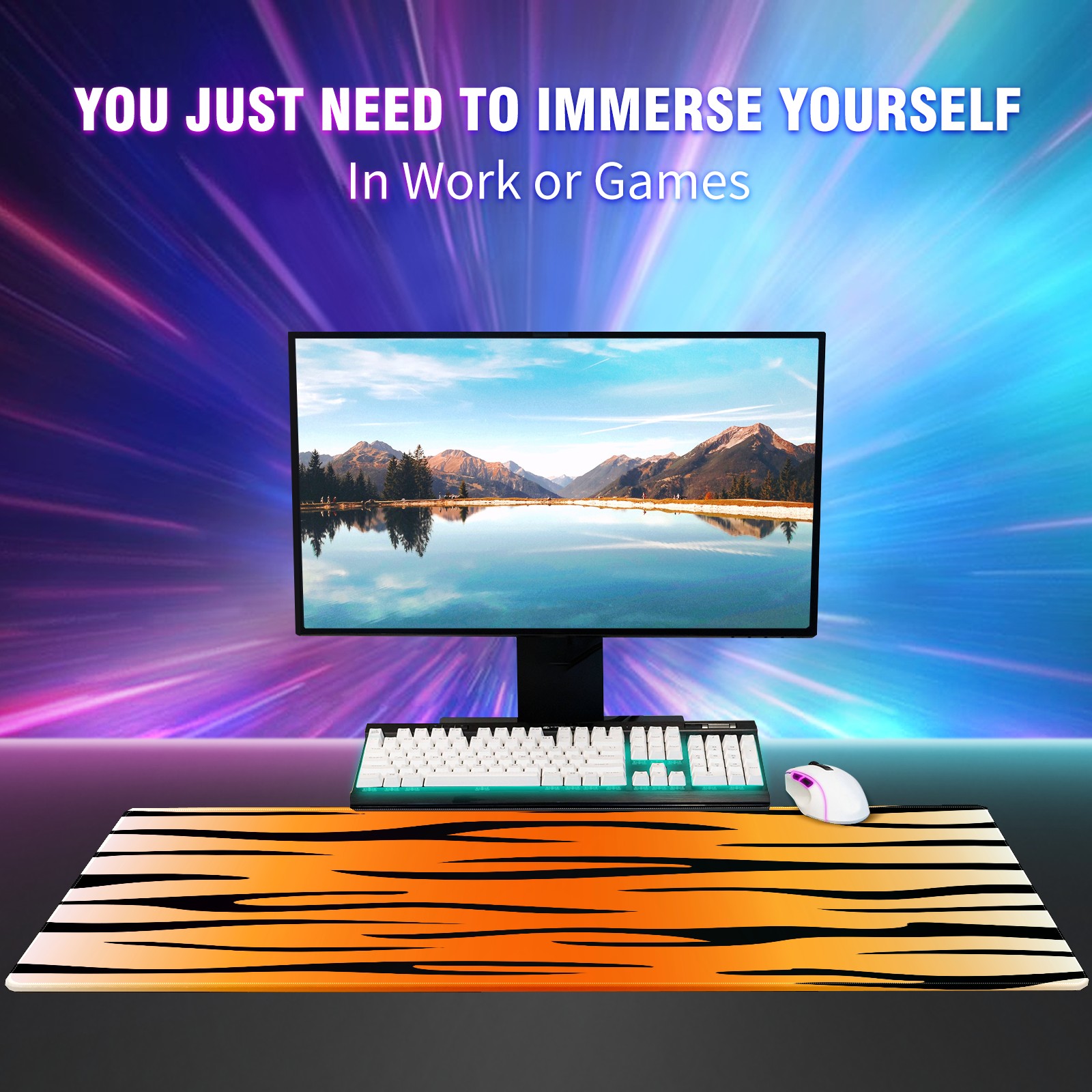 Large Mouse Pad for Desktop, Cute Desk Mat Pad Protector for Work & Gaming, Aesthetic Pretty Anti-Slip Laptop Blotter Cover for Office School Home Supplies, Ombre Tiger Stripe , 35.4inx15.7in