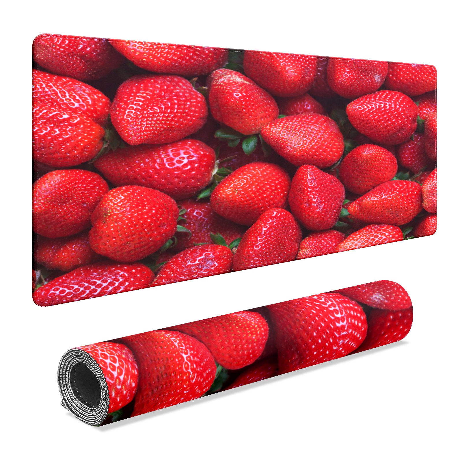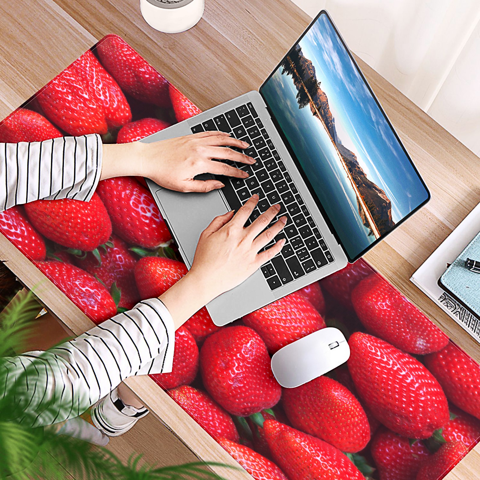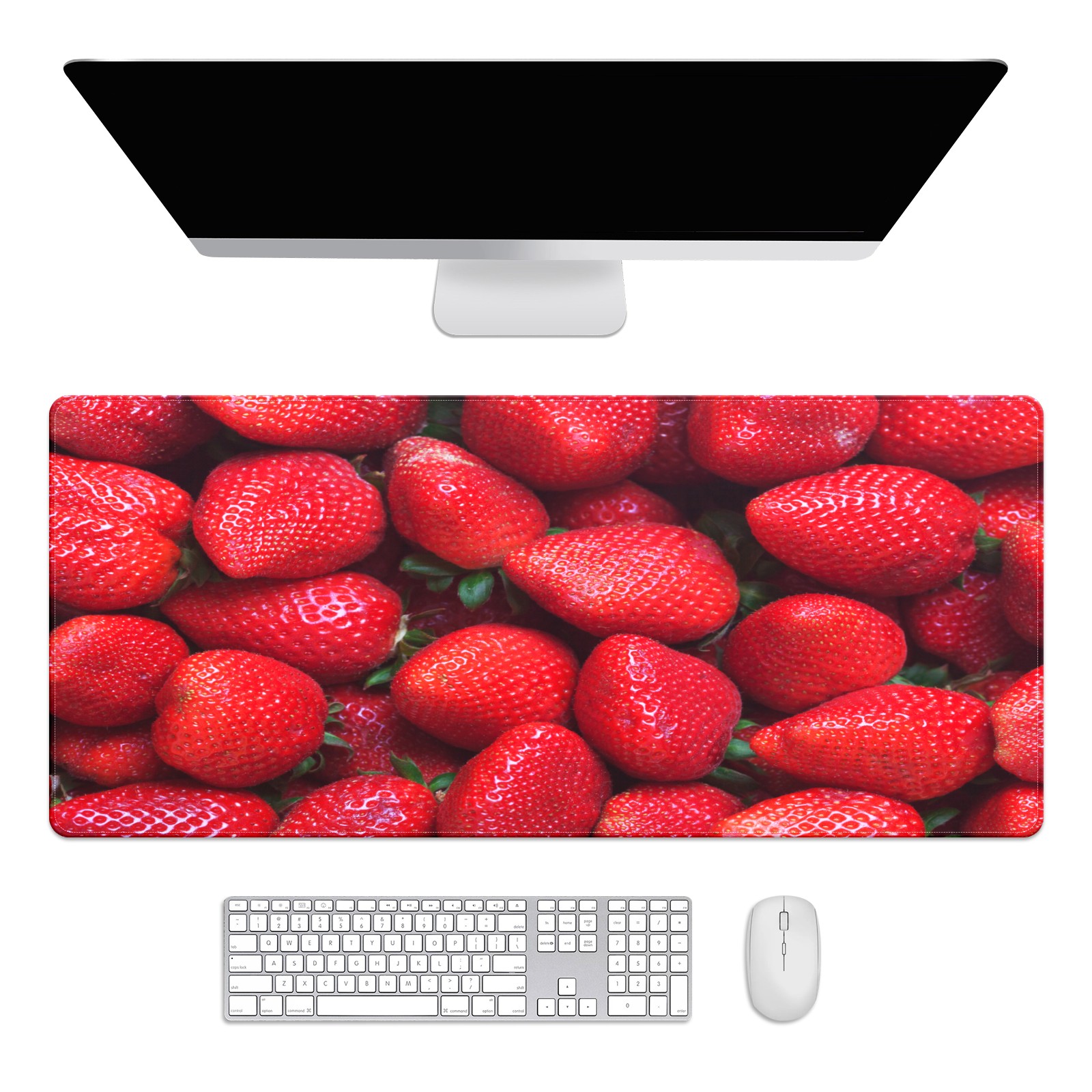 Large Mouse Pad for Desktop, Cute Desk Mat Pad Protector for Work & Gaming, Aesthetic Pretty Anti-Slip Laptop Blotter Cover for Office School Home Supplies, いちご 写真 赤い , 35.4inx15.7in