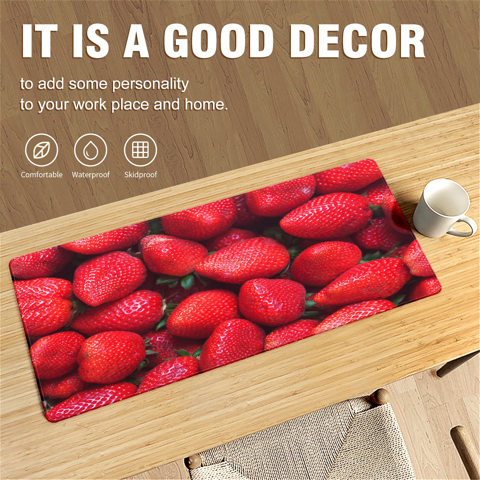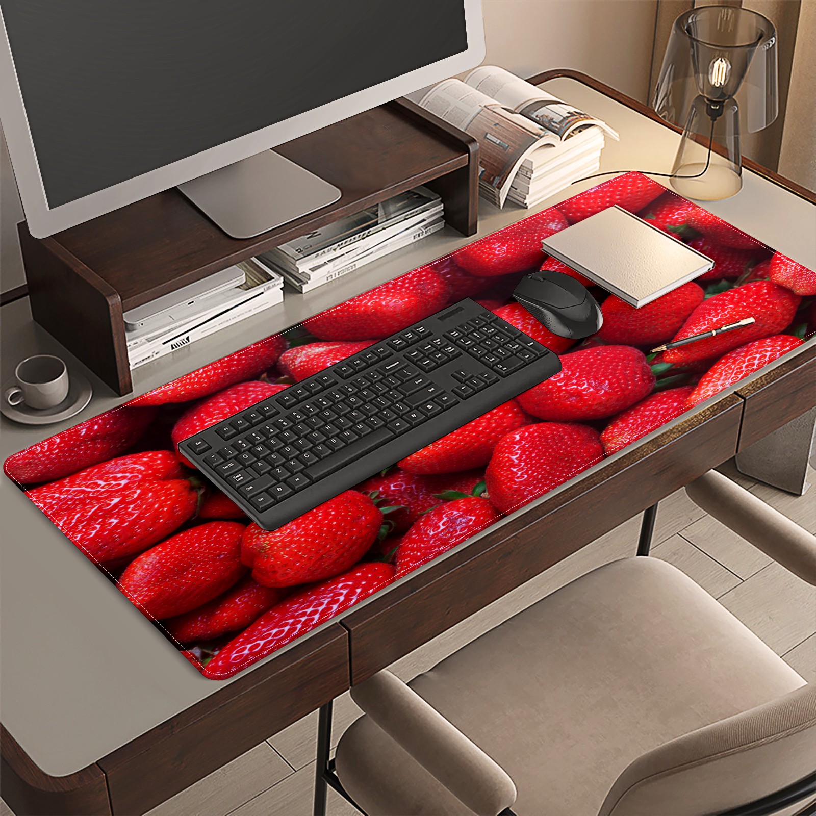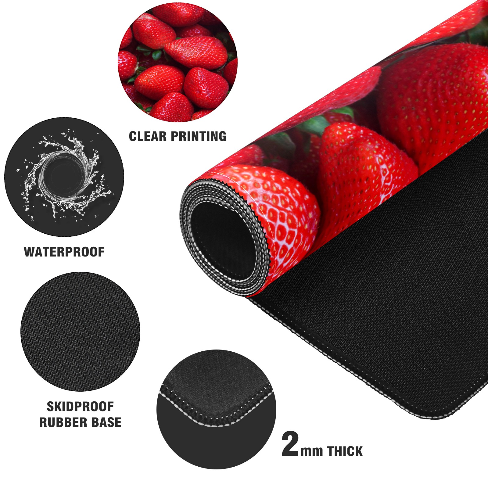 Large Mouse Pad for Desktop, Cute Desk Mat Pad Protector for Work & Gaming, Aesthetic Pretty Anti-Slip Laptop Blotter Cover for Office School Home Supplies, いちご 写真 赤い , 35.4inx15.7in
