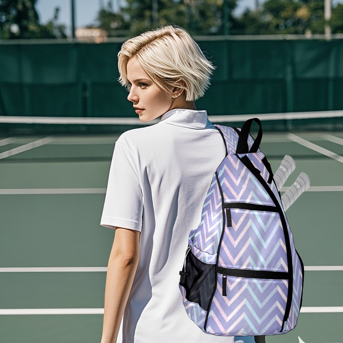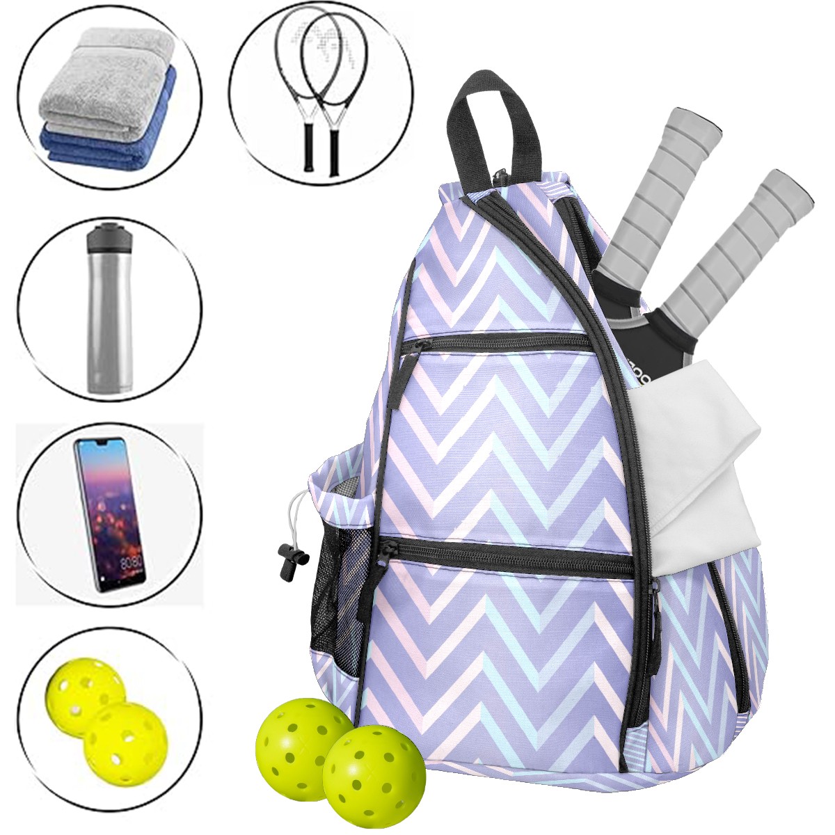 Multifunctional Pickleball Bag,Large Capacity Sports Pickleball Racket Bag, Water Bottle Holder and Fence Hook,Suitable for Both Men Women -Pastel Geometric Broken Line