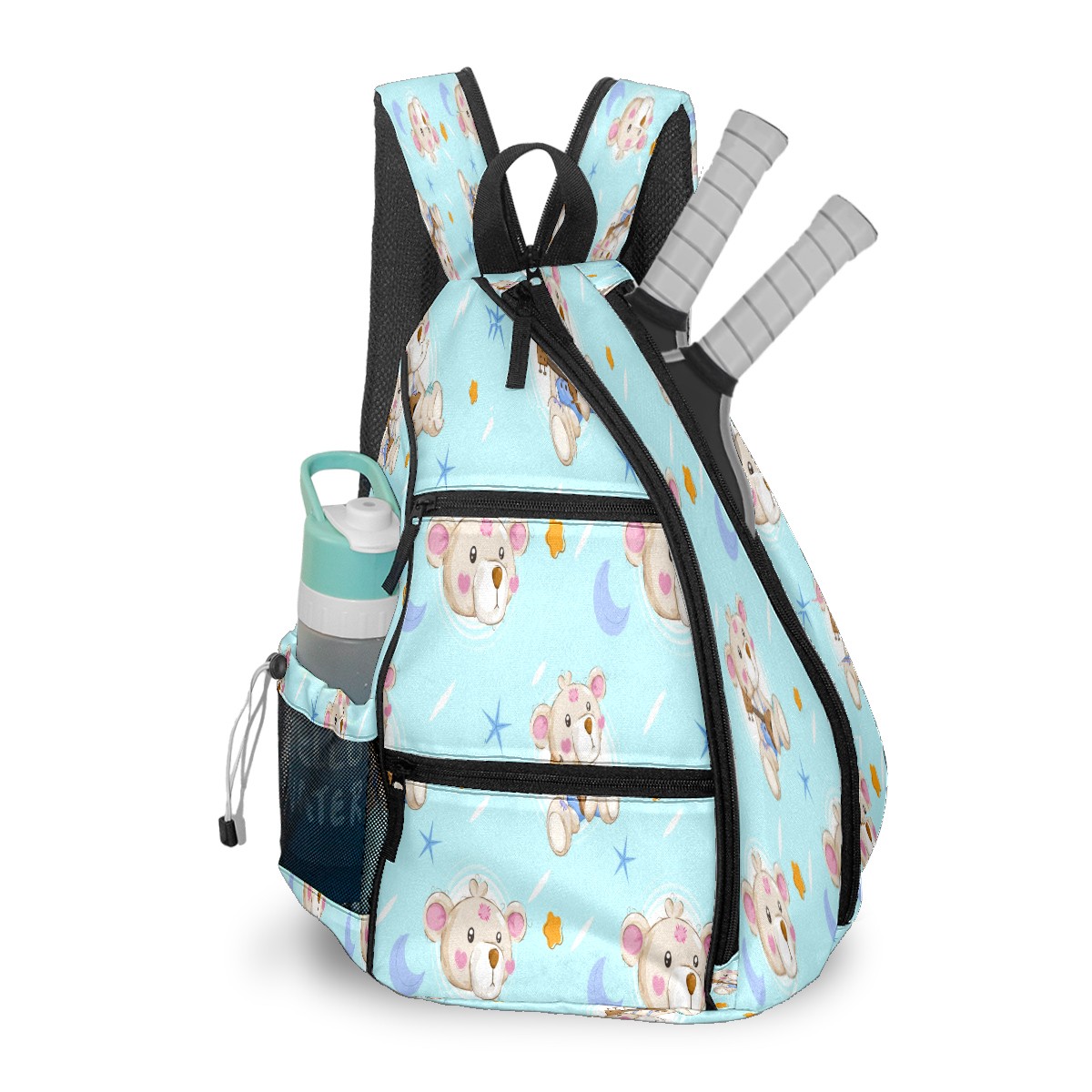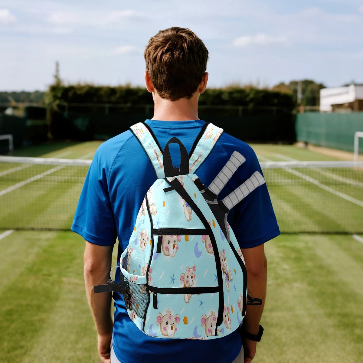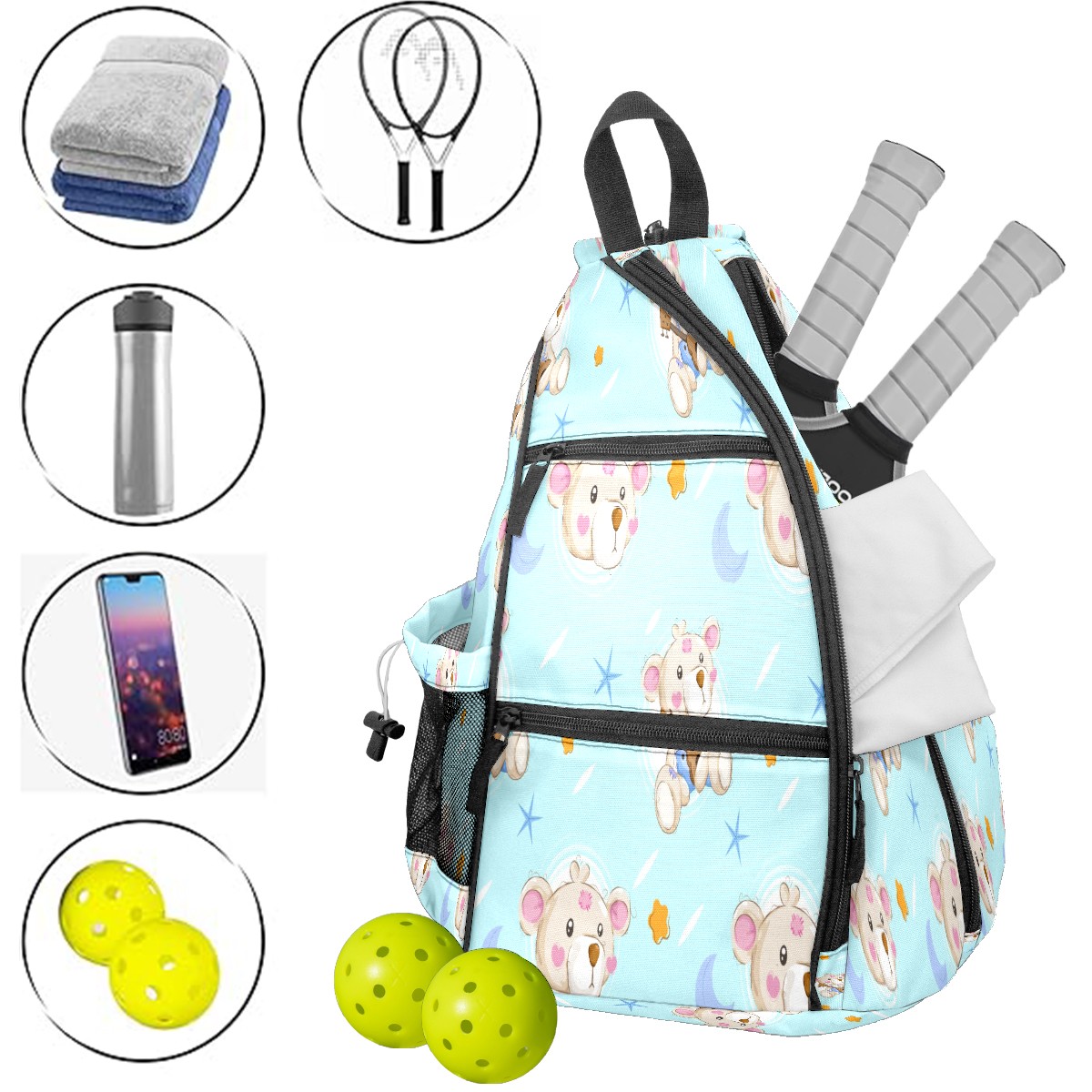 Multifunctional Pickleball Bag,Large Capacity Sports Pickleball Racket Bag, Water Bottle Holder and Fence Hook,Suitable for Both Men Women -Hand Drawn Lovely Bear
