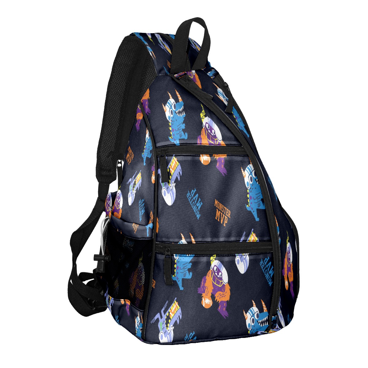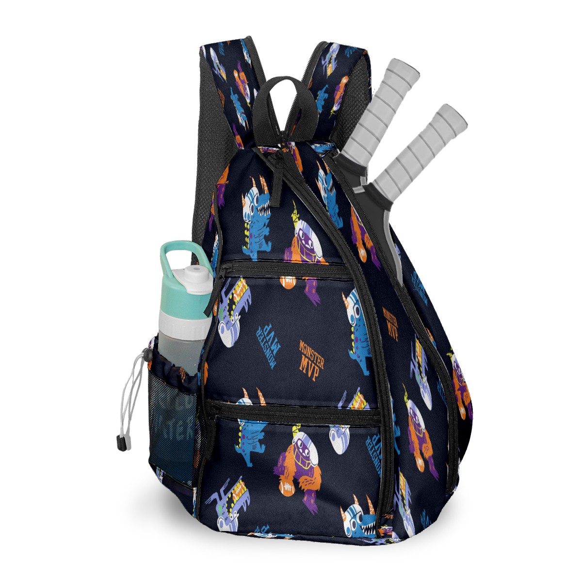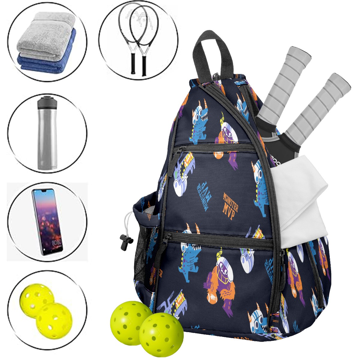 Multifunctional Pickleball Bag,Large Capacity Sports Pickleball Racket Bag, Water Bottle Holder and Fence Hook,Suitable for Both Men Women -Hand Drawn Football Monsters
