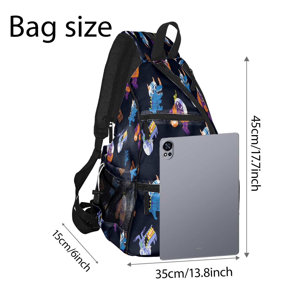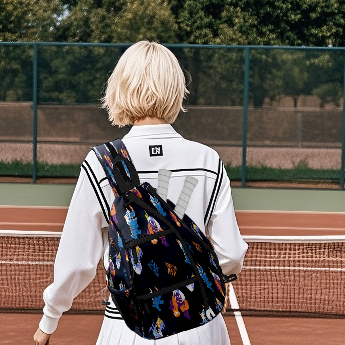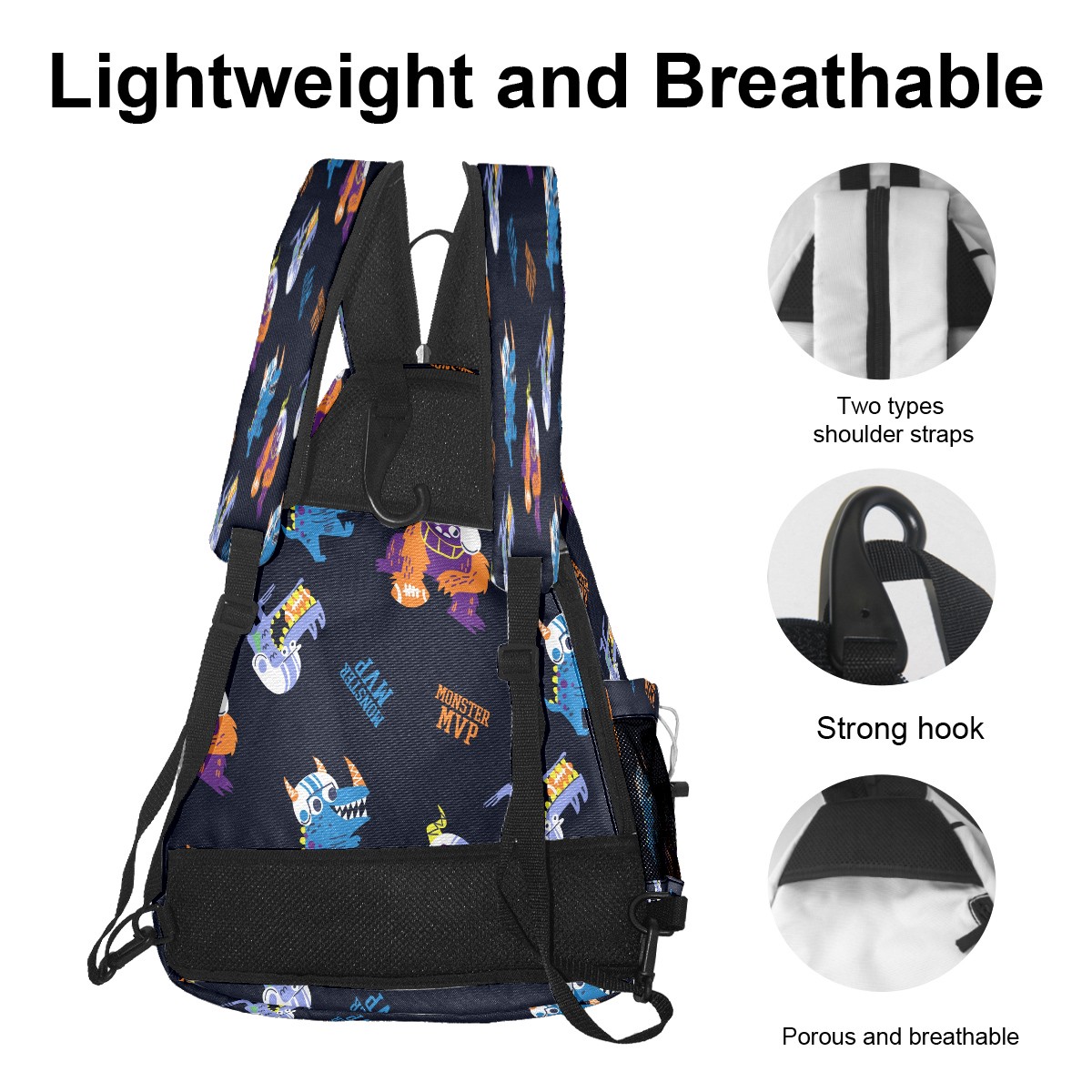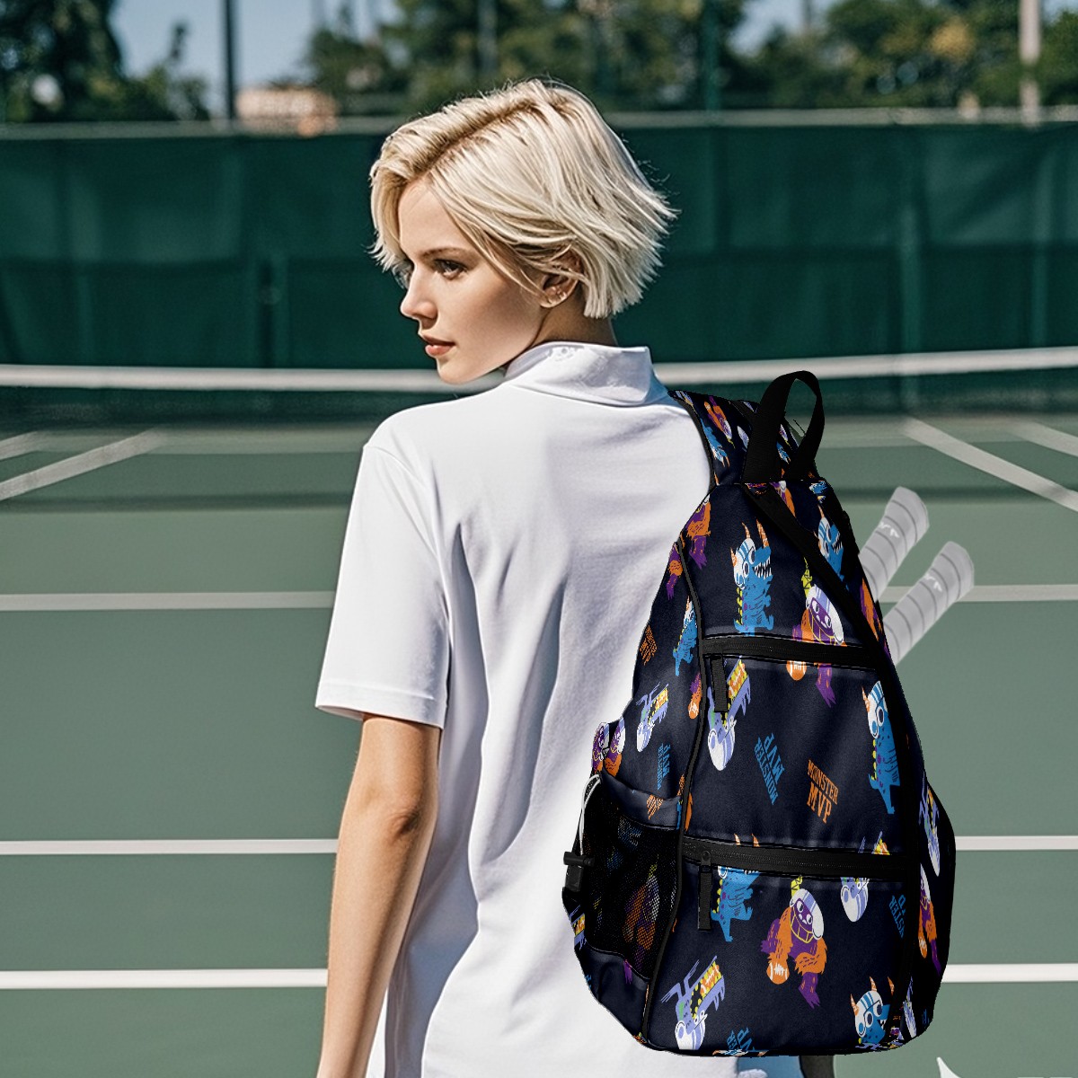 Multifunctional Pickleball Bag,Large Capacity Sports Pickleball Racket Bag, Water Bottle Holder and Fence Hook,Suitable for Both Men Women -Hand Drawn Football Monsters
