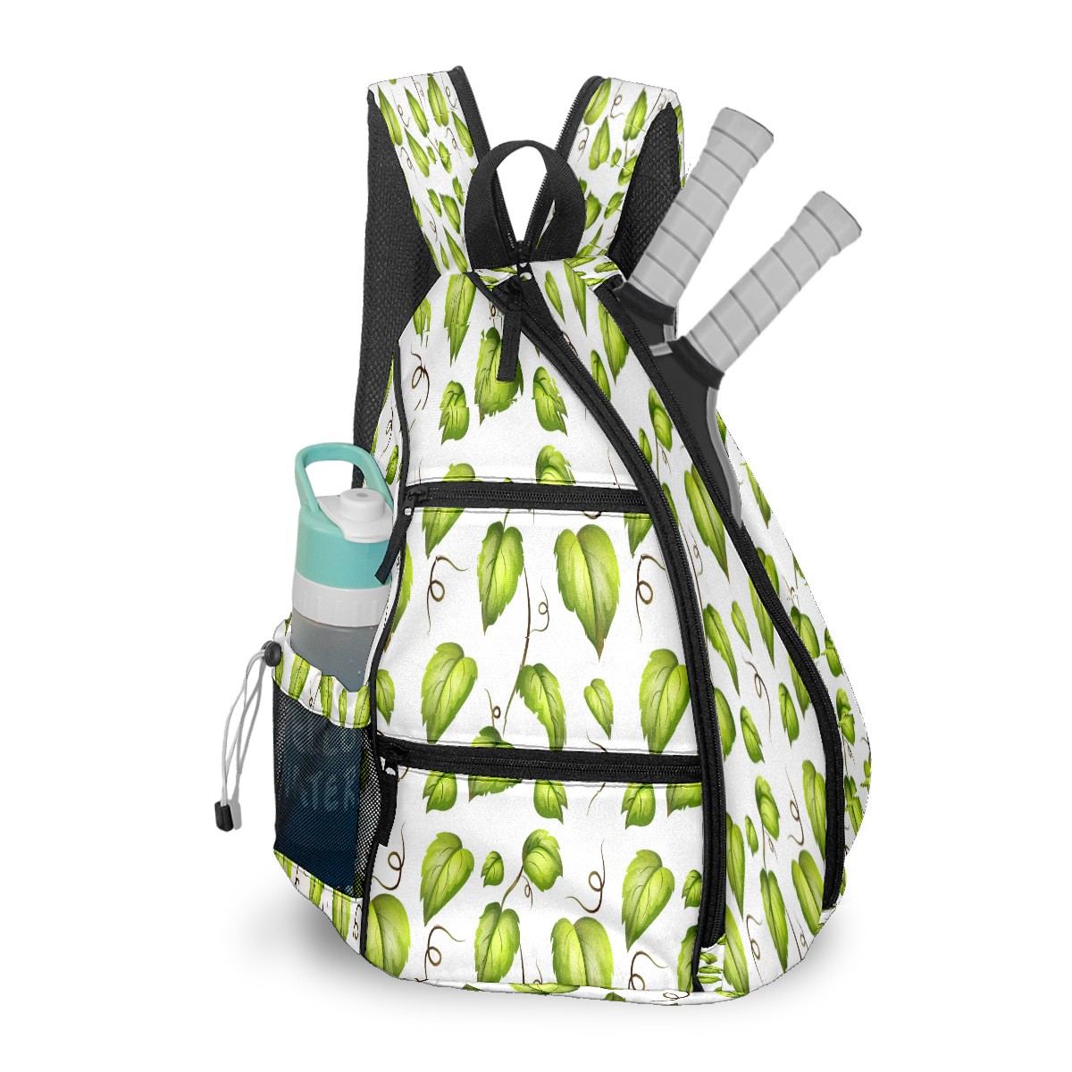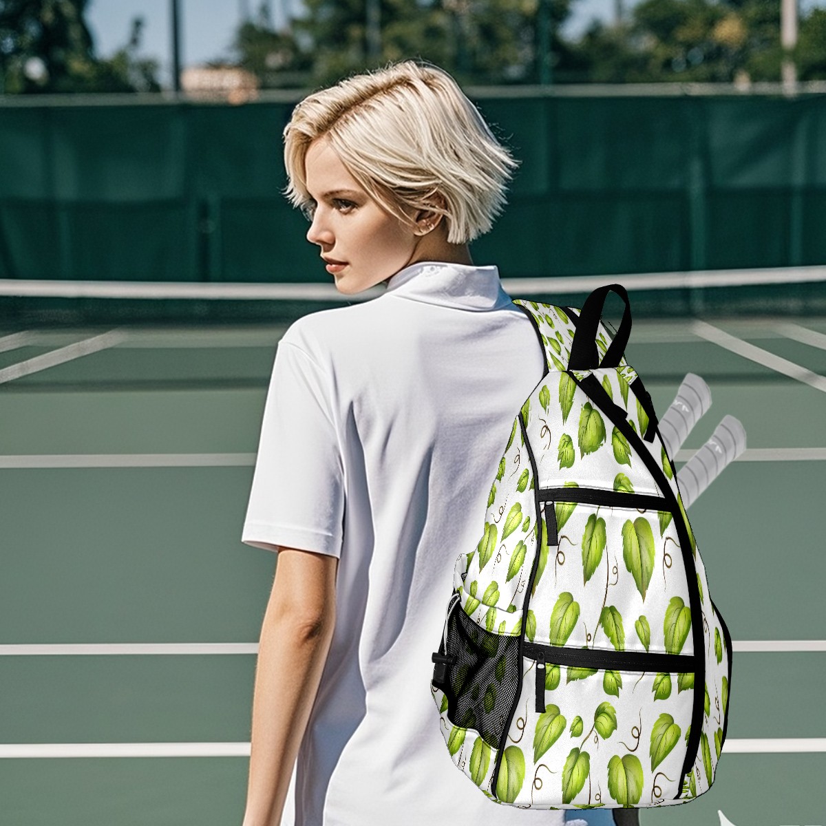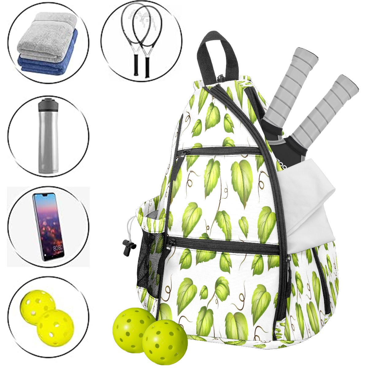 Multifunctional Pickleball Bag,Large Capacity Sports Pickleball Racket Bag, Water Bottle Holder and Fence Hook,Suitable for Both Men Women -Cartoon Green Leaf