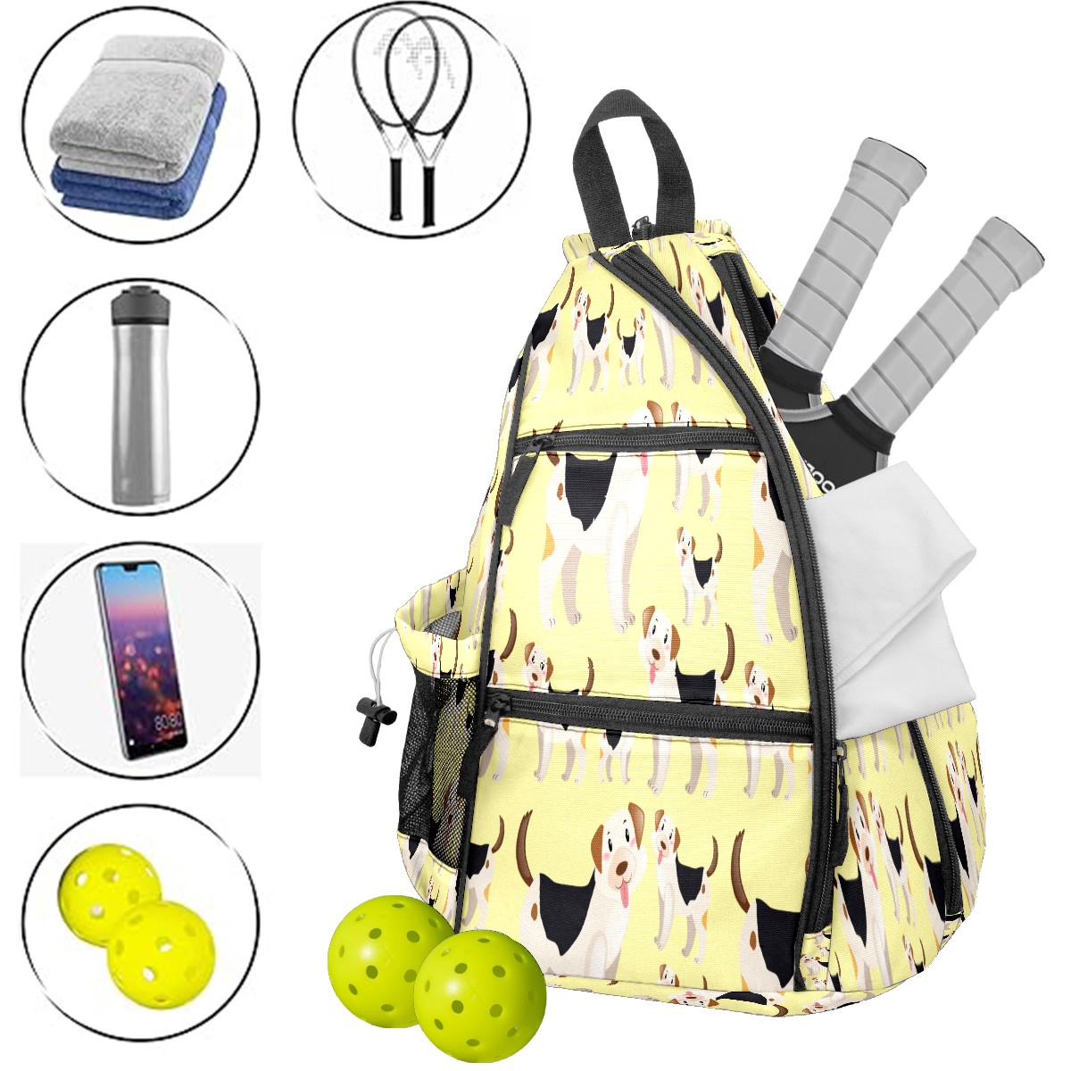 Multifunctional Pickleball Bag,Large Capacity Sports Pickleball Racket Bag, Water Bottle Holder and Fence Hook,Suitable for Both Men Women -Cute Yellow Pet Dogs