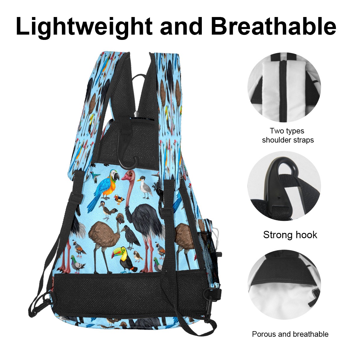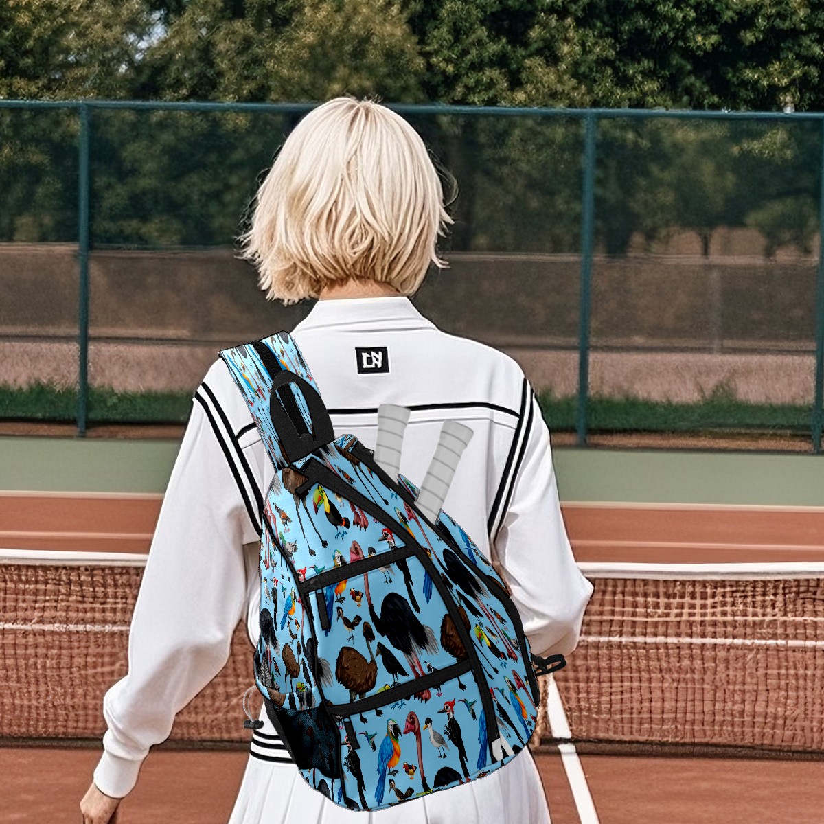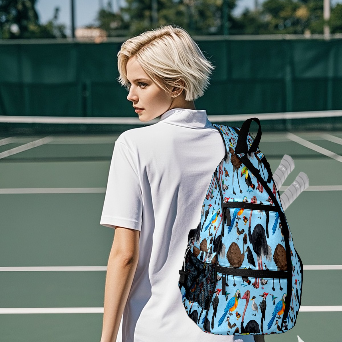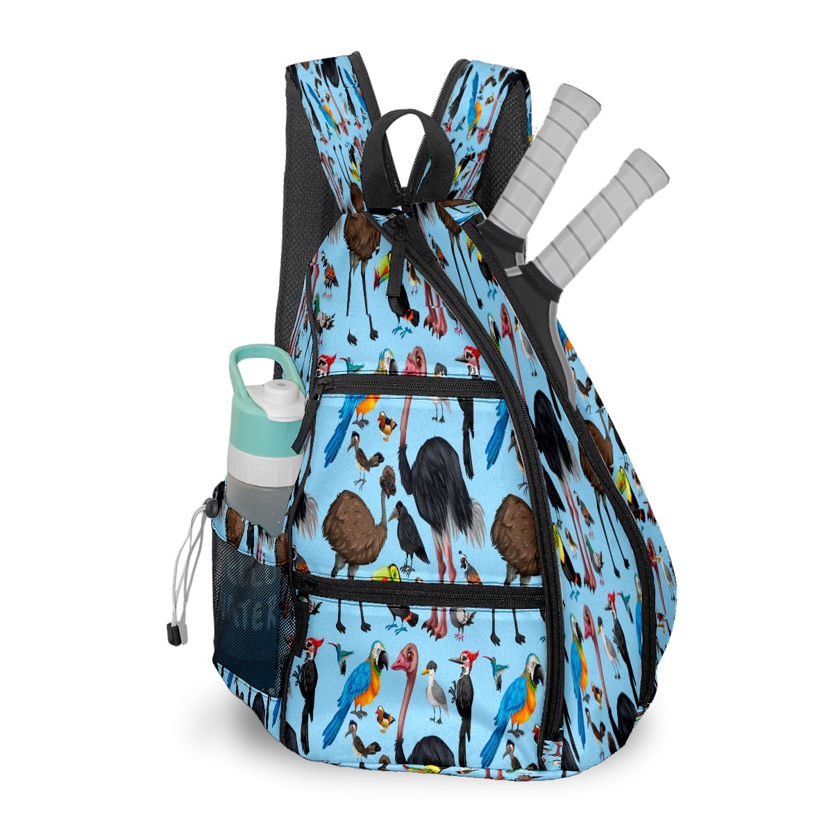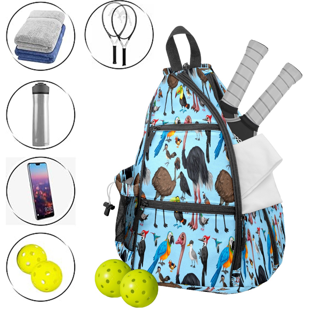 Multifunctional Pickleball Bag,Large Capacity Sports Pickleball Racket Bag, Water Bottle Holder and Fence Hook,Suitable for Both Men Women -Cute Wild Parrot Birds