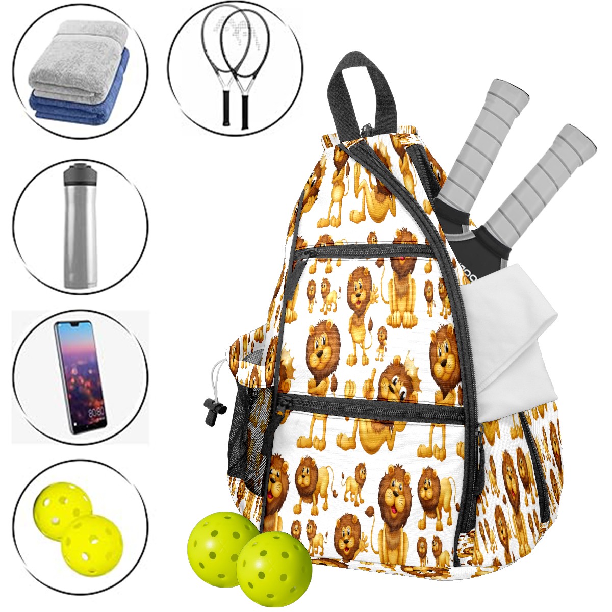 Multifunctional Pickleball Bag,Large Capacity Sports Pickleball Racket Bag, Water Bottle Holder and Fence Hook,Suitable for Both Men Women -Cartoon Cute Wild Lion