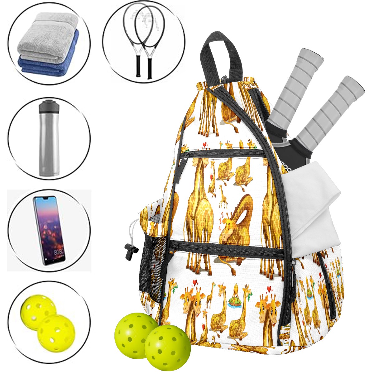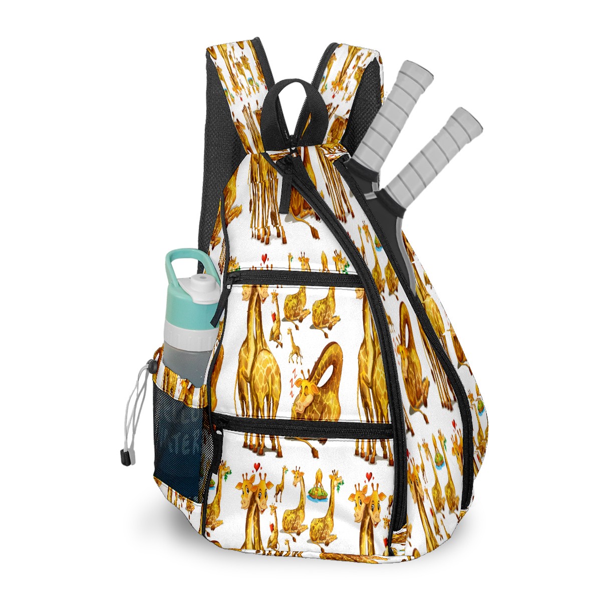 Multifunctional Pickleball Bag,Large Capacity Sports Pickleball Racket Bag, Water Bottle Holder and Fence Hook,Suitable for Both Men Women -Cartoon Cute Yellow Giraffe