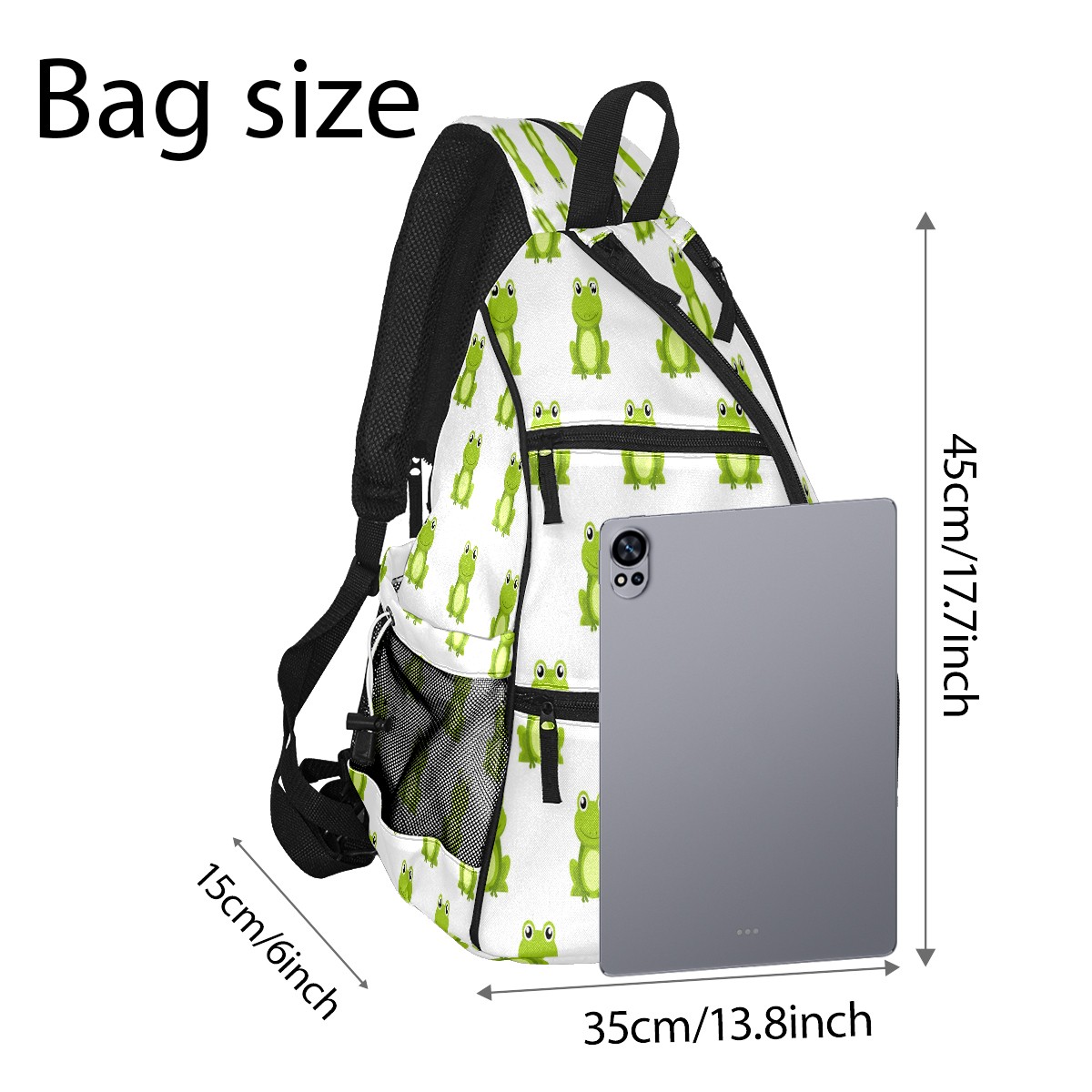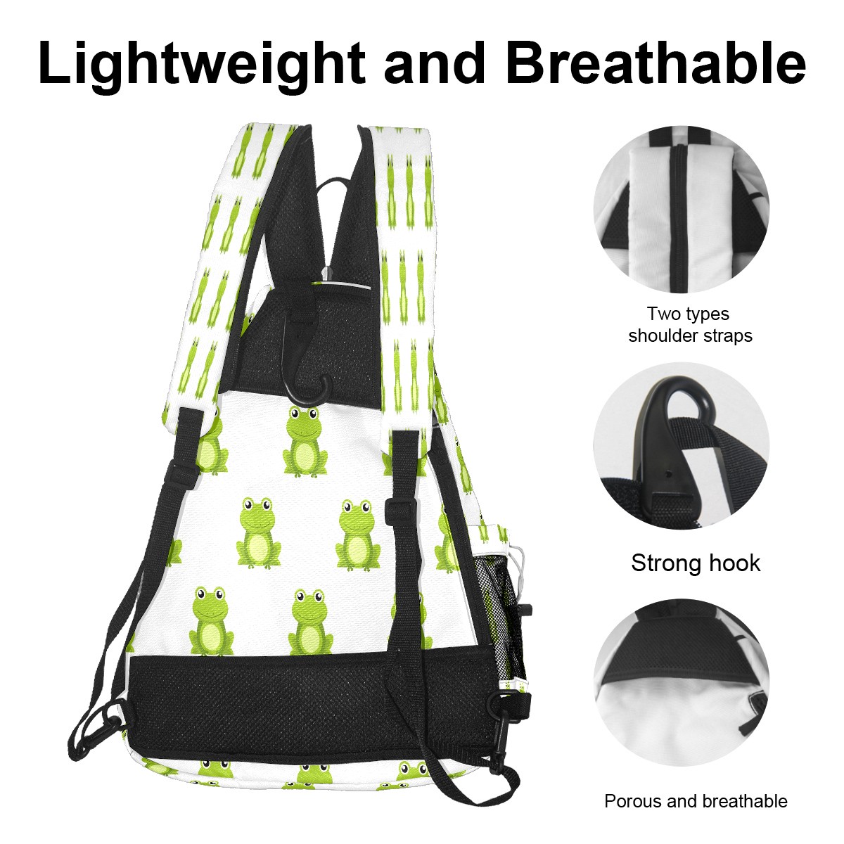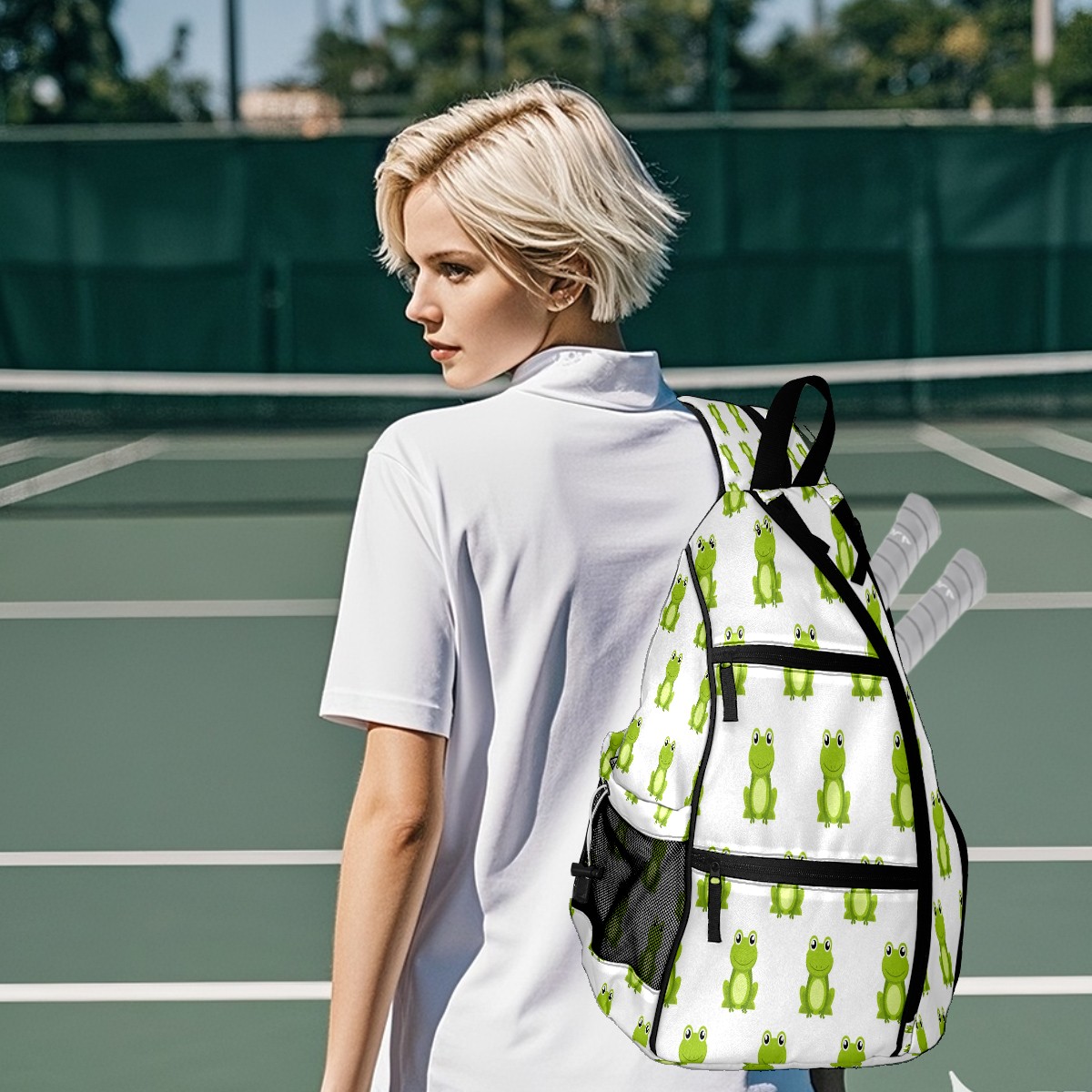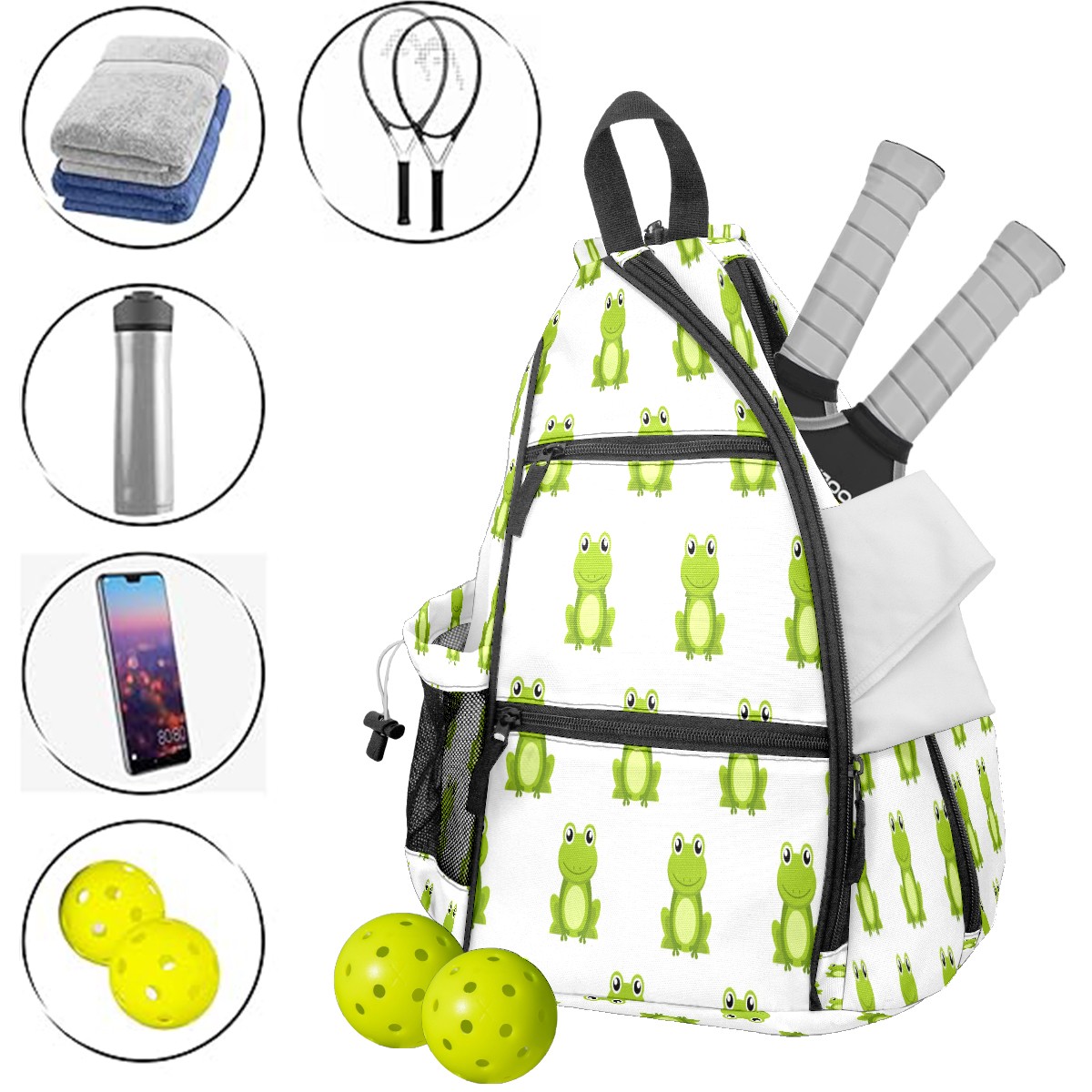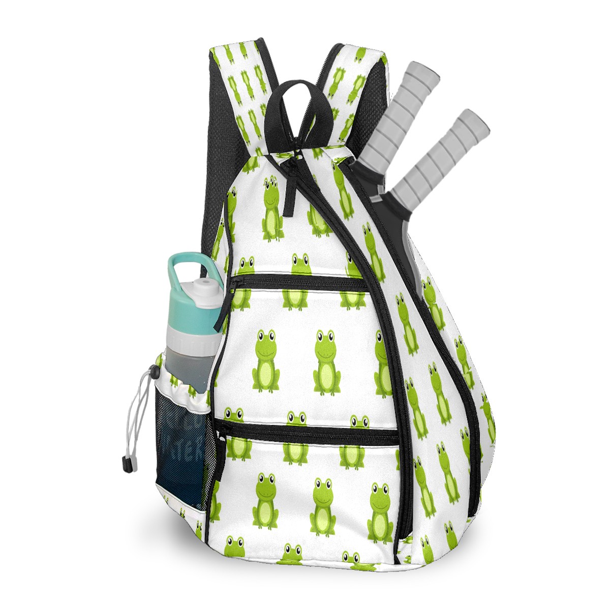 Multifunctional Pickleball Bag,Large Capacity Sports Pickleball Racket Bag, Water Bottle Holder and Fence Hook,Suitable for Both Men Women -Cute Cartoon Green Frog White