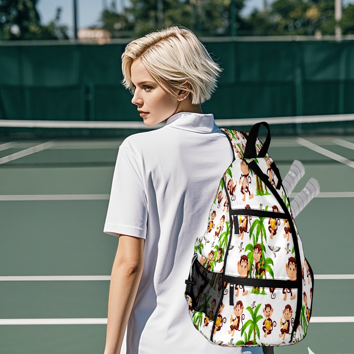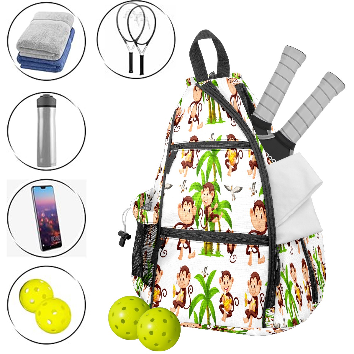 Multifunctional Pickleball Bag,Large Capacity Sports Pickleball Racket Bag, Water Bottle Holder and Fence Hook,Suitable for Both Men Women -Cartoon Cute Monkeys Coconut Trees
