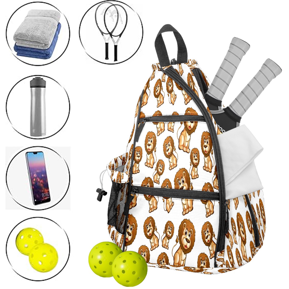 Multifunctional Pickleball Bag,Large Capacity Sports Pickleball Racket Bag, Water Bottle Holder and Fence Hook,Suitable for Both Men Women -Cartoon Cute Lion