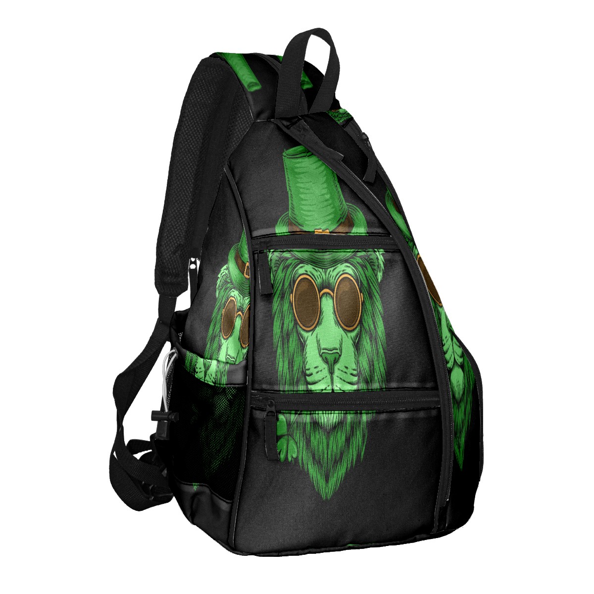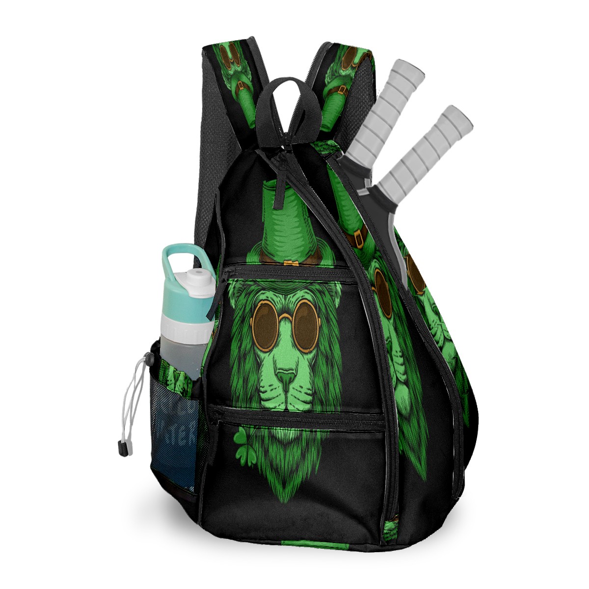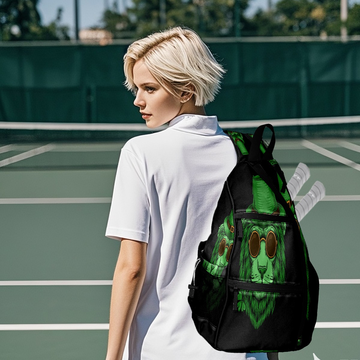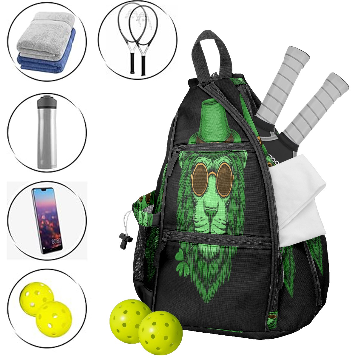 Multifunctional Pickleball Bag,Large Capacity Sports Pickleball Racket Bag, Water Bottle Holder and Fence Hook,Suitable for Both Men Women -Simple Green Lion Head