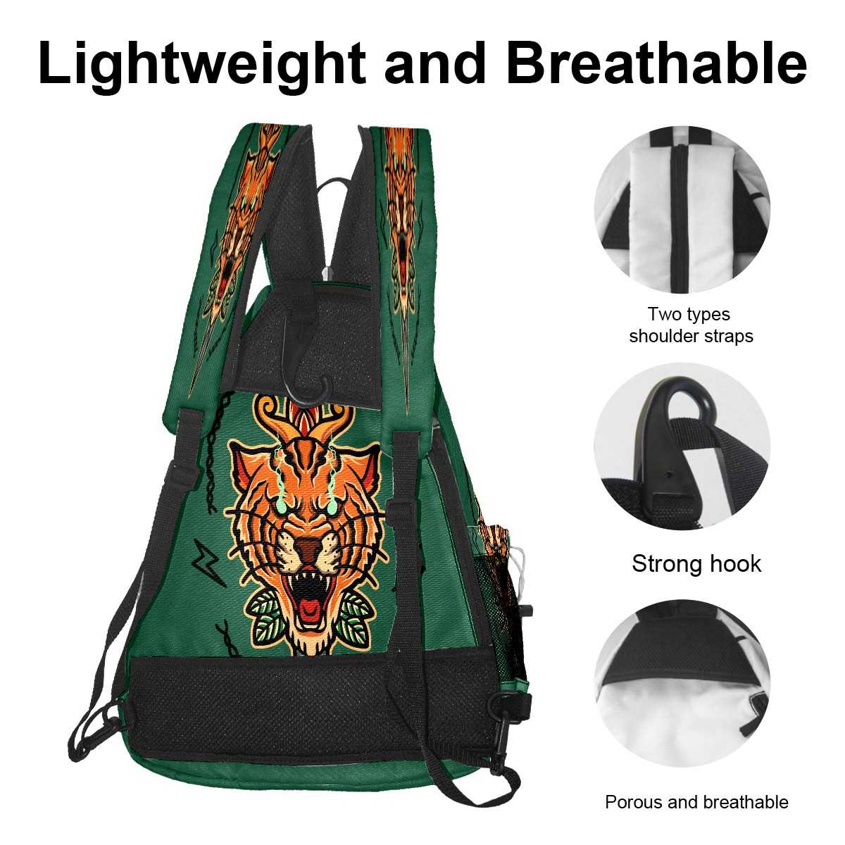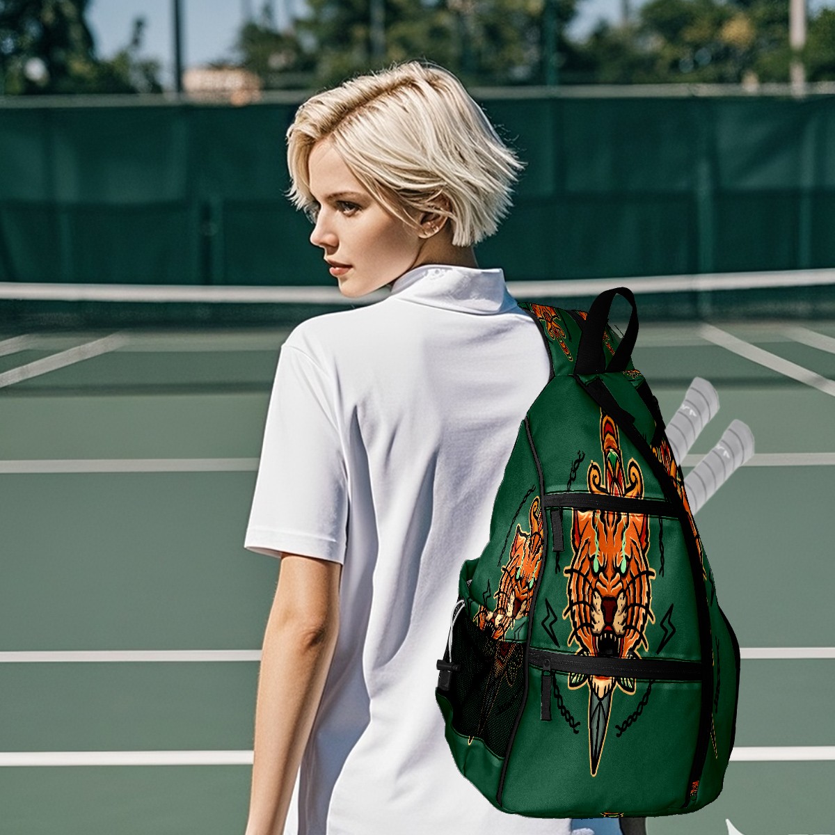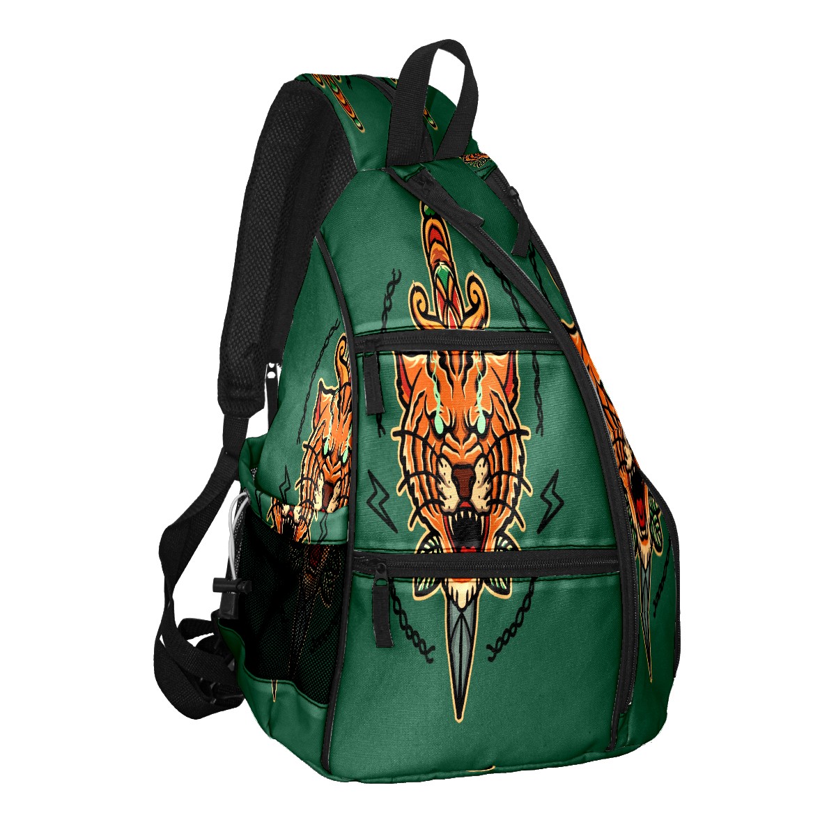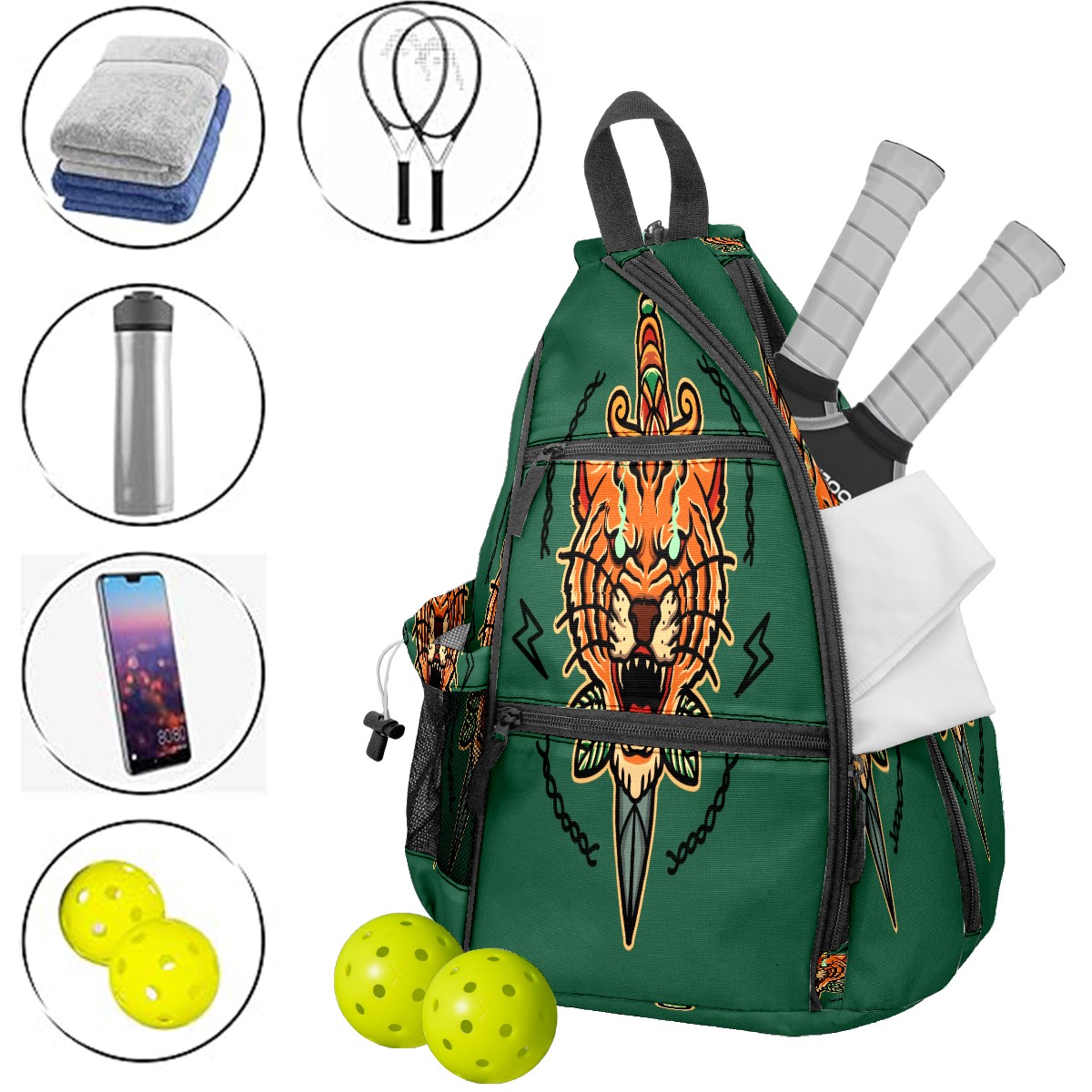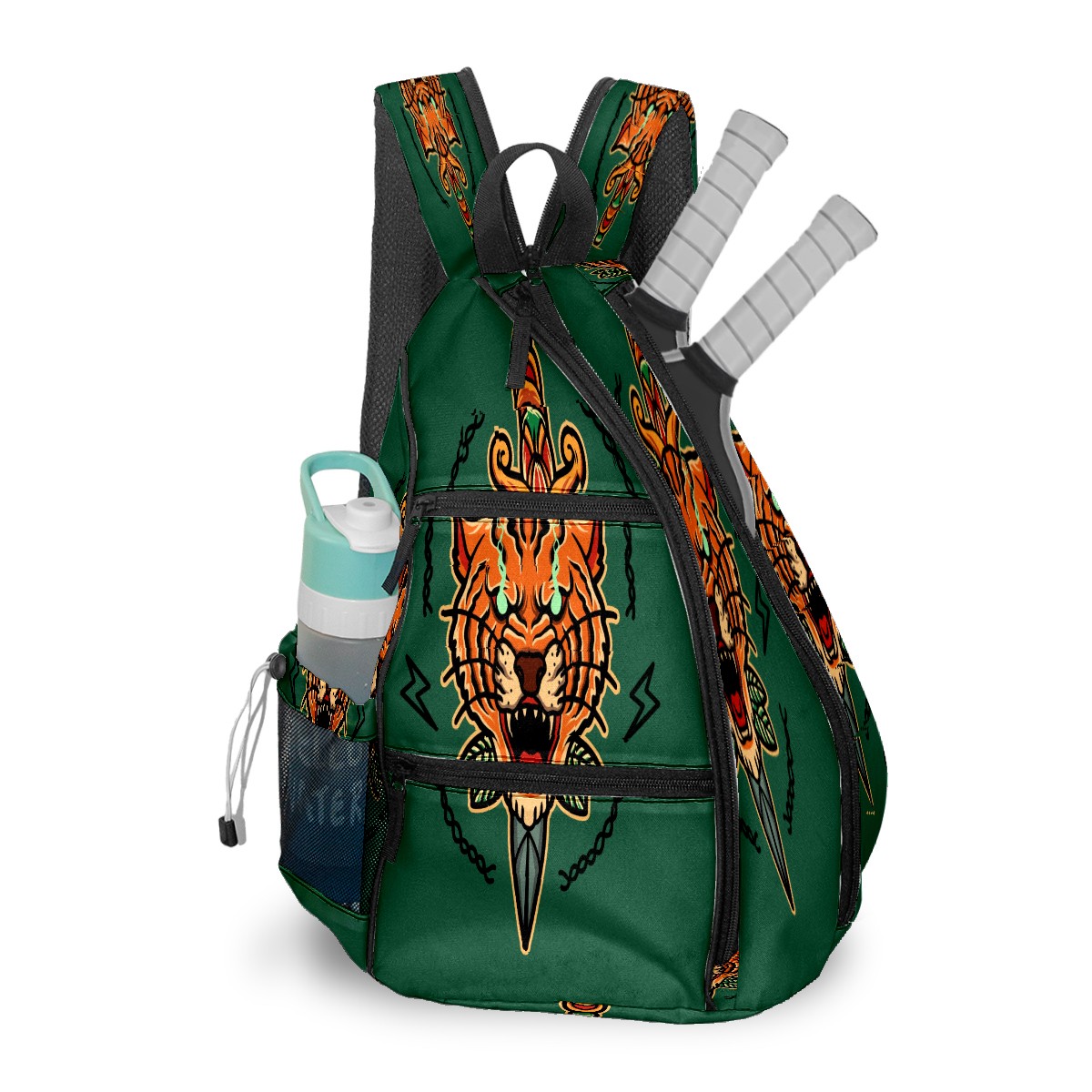 Multifunctional Pickleball Bag,Large Capacity Sports Pickleball Racket Bag, Water Bottle Holder and Fence Hook,Suitable for Both Men Women -Old School Tiger Tattoo