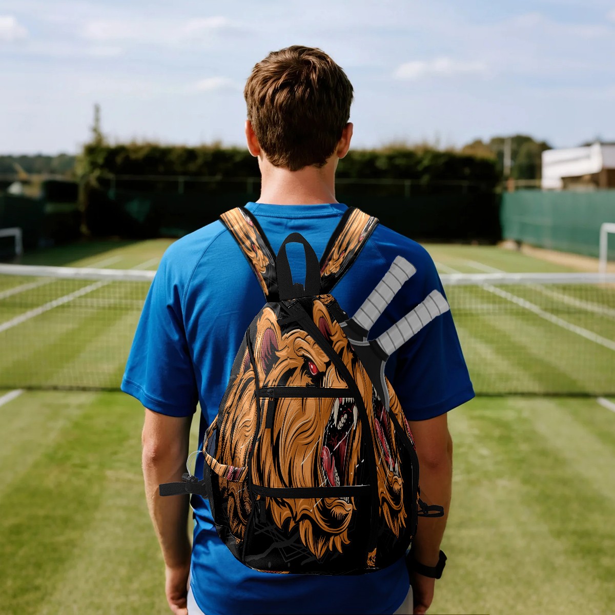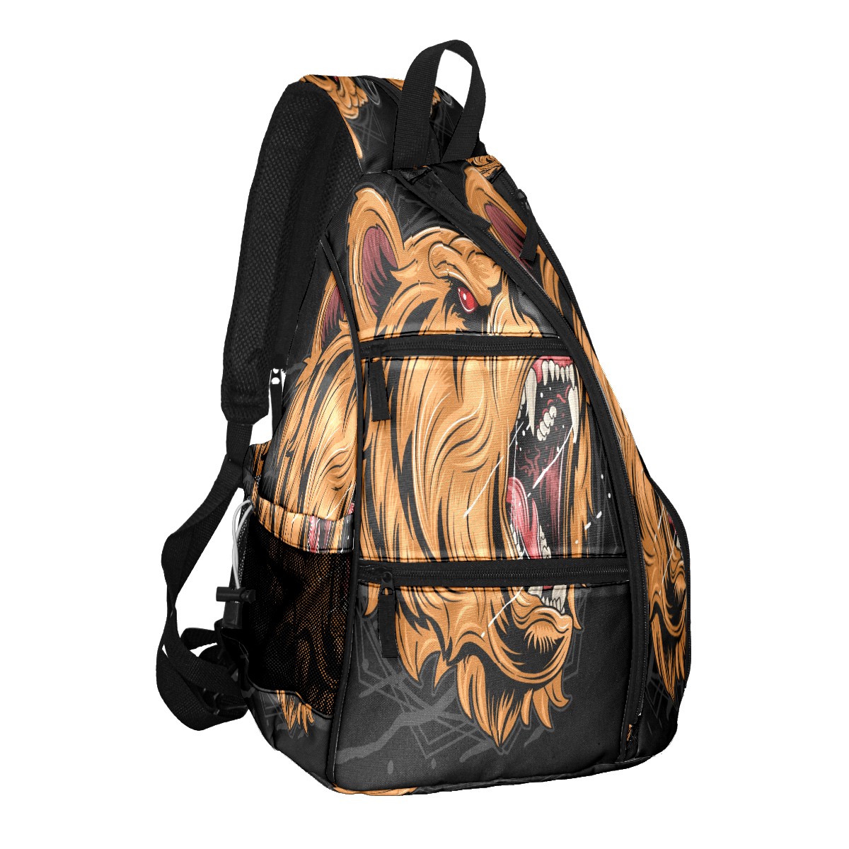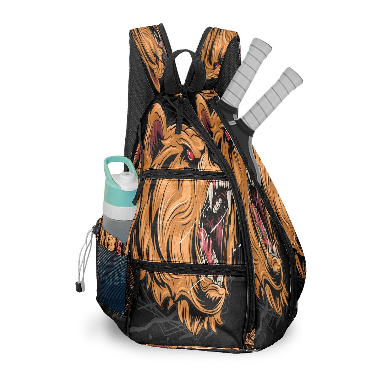 Multifunctional Pickleball Bag,Large Capacity Sports Pickleball Racket Bag, Water Bottle Holder and Fence Hook,Suitable for Both Men Women -Grizzly Bear Head Roaring