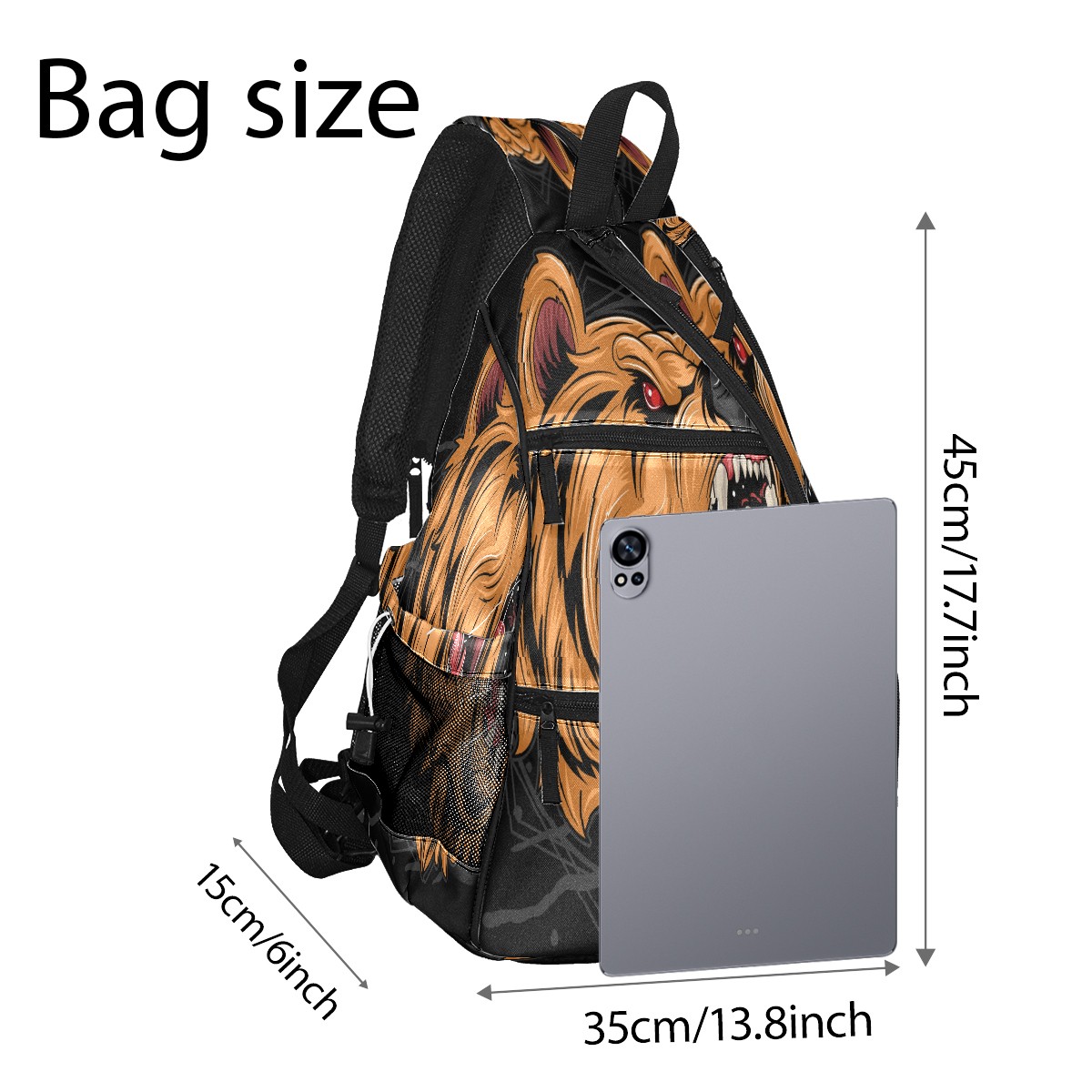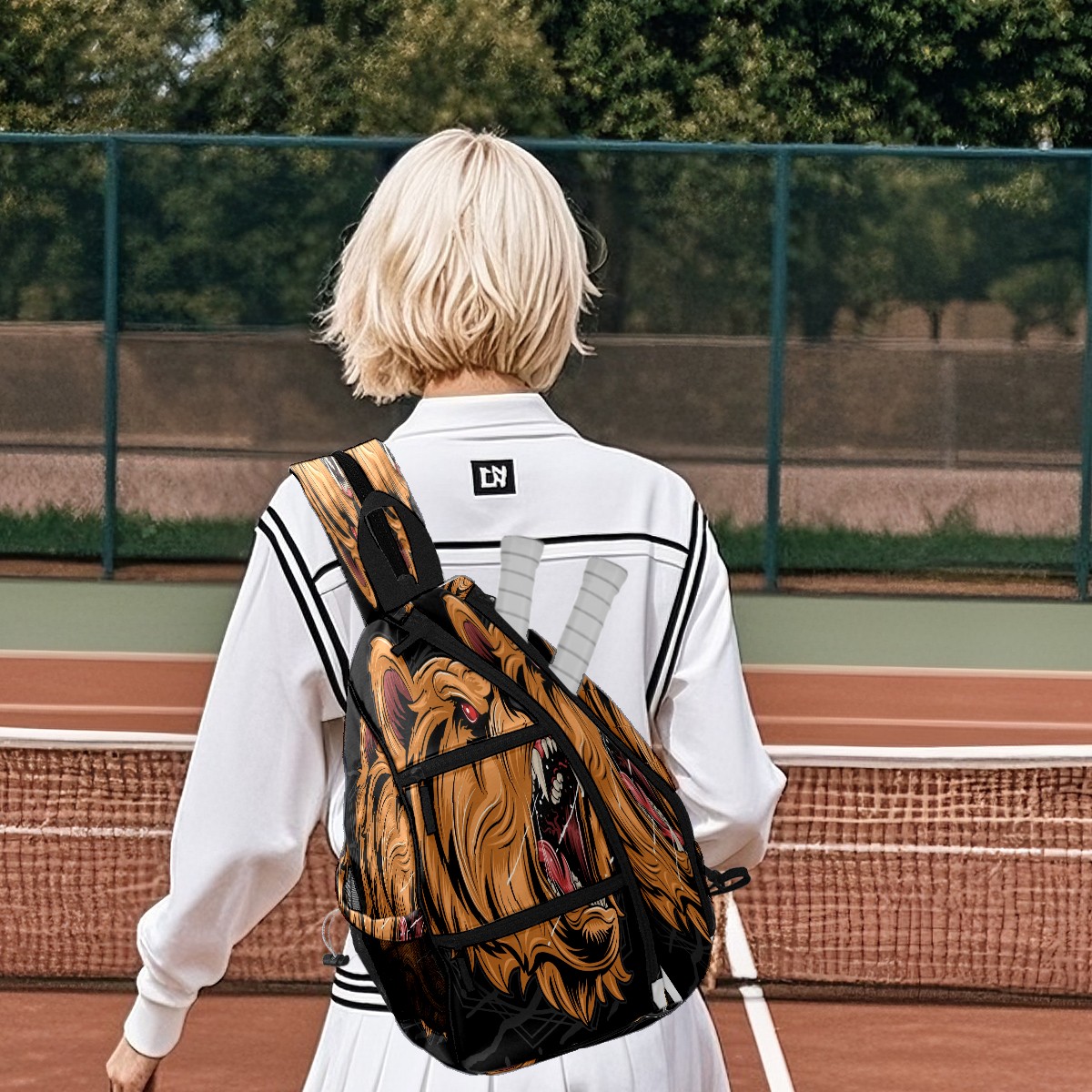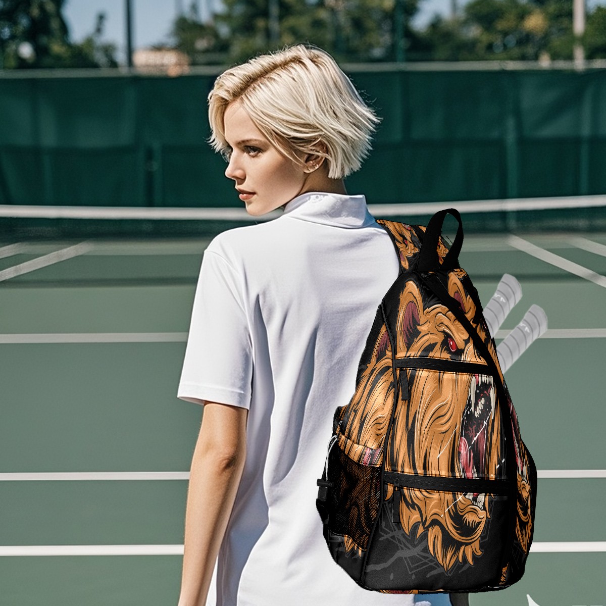 Multifunctional Pickleball Bag,Large Capacity Sports Pickleball Racket Bag, Water Bottle Holder and Fence Hook,Suitable for Both Men Women -Grizzly Bear Head Roaring