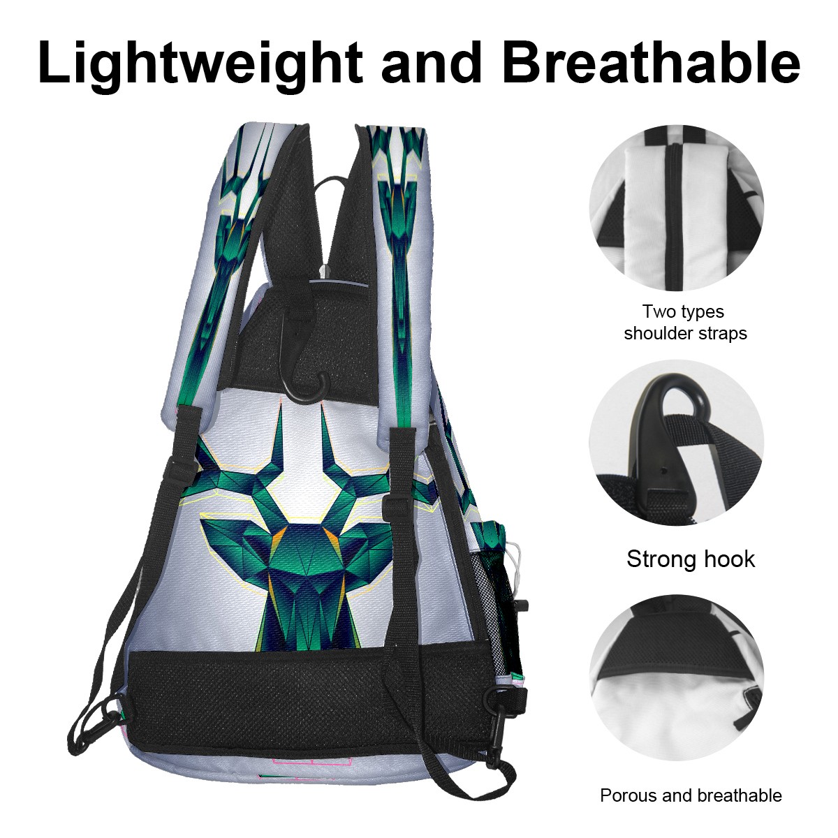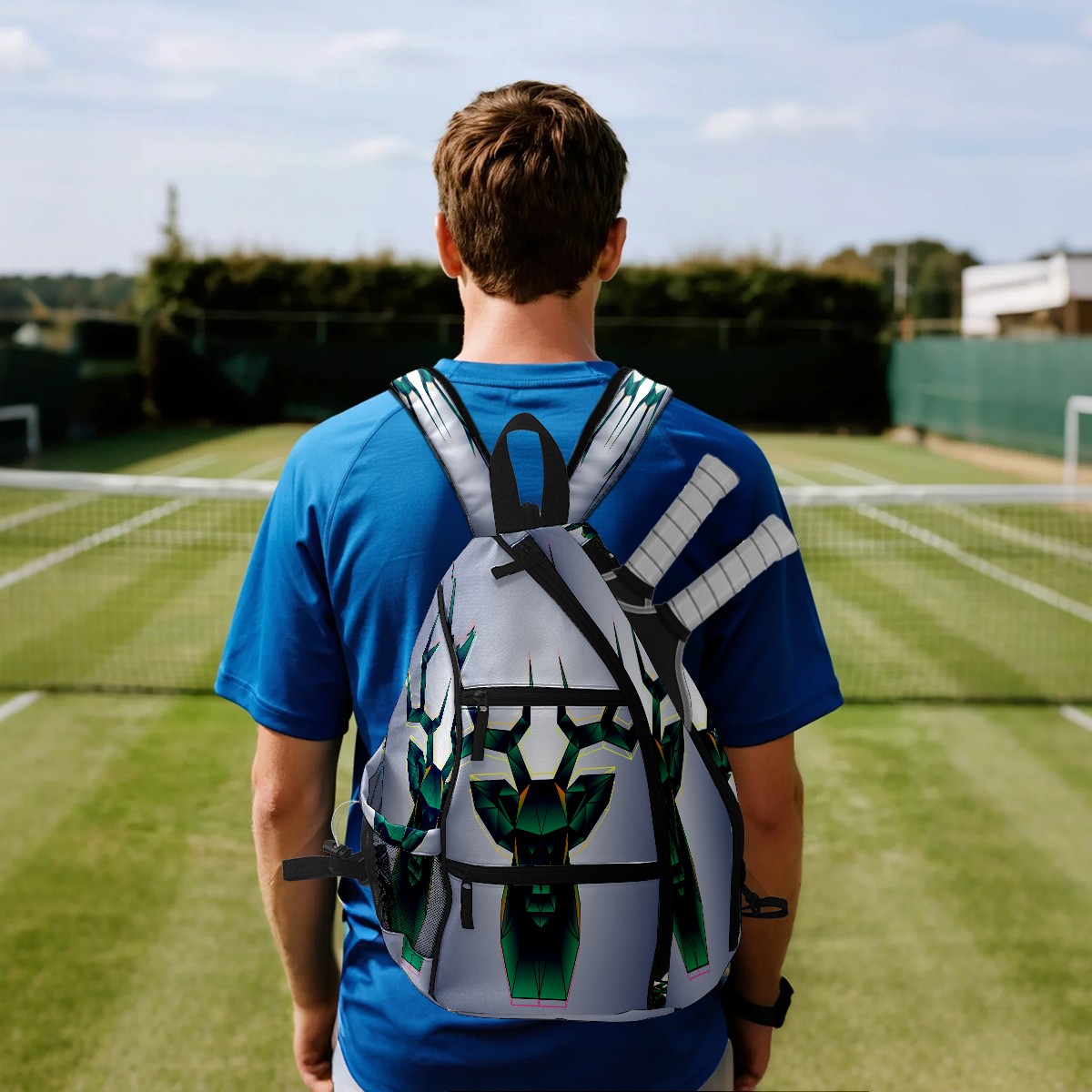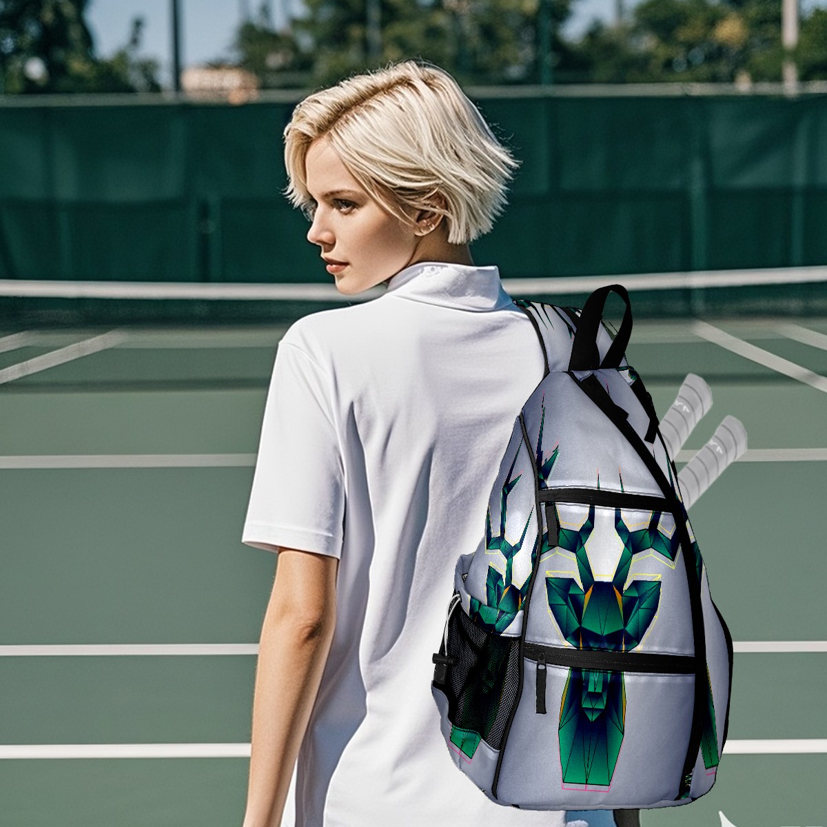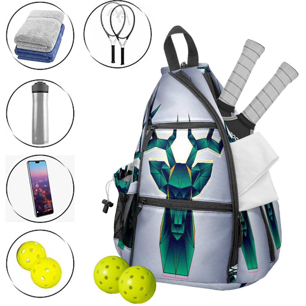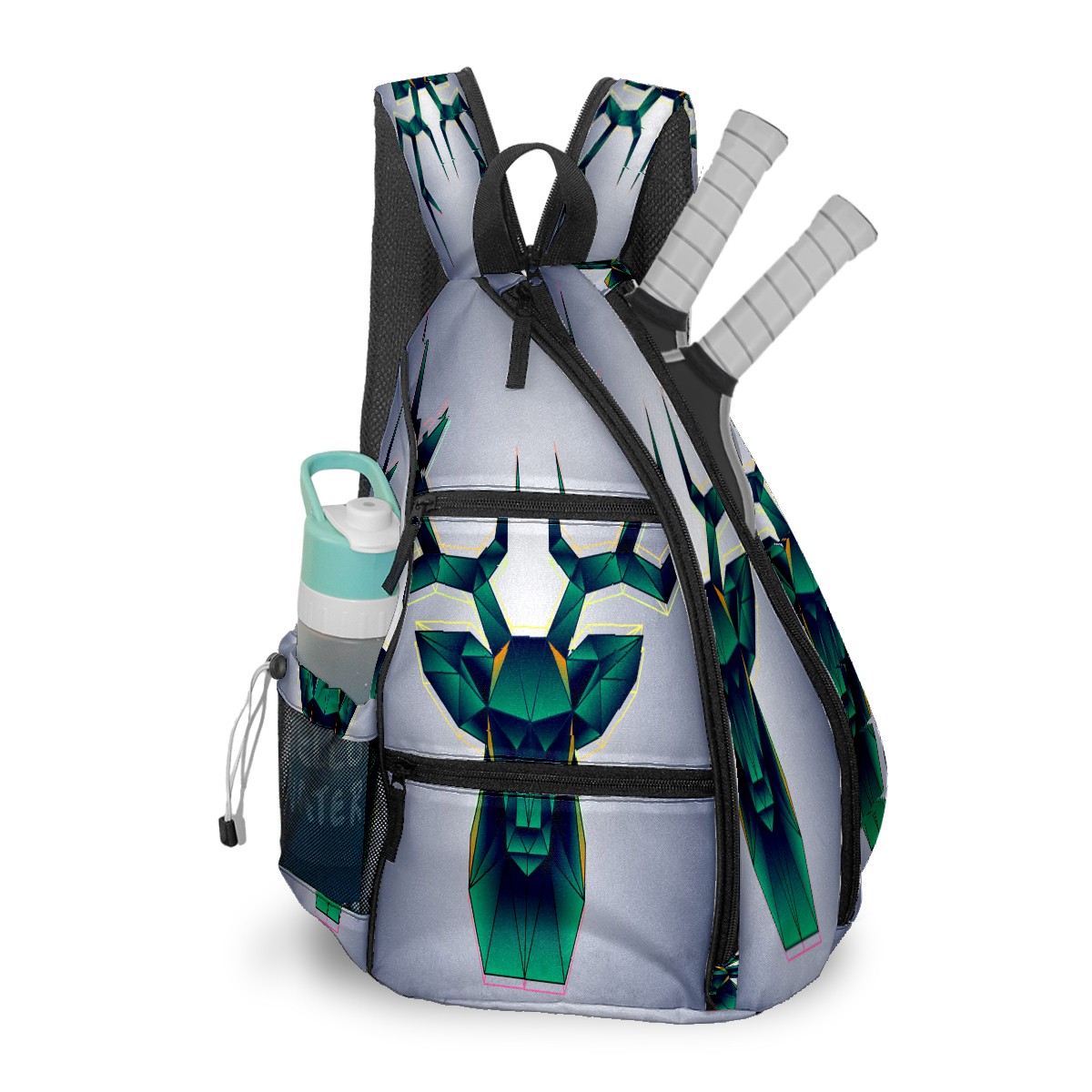 Multifunctional Pickleball Bag,Large Capacity Sports Pickleball Racket Bag, Water Bottle Holder and Fence Hook,Suitable for Both Men Women -Geometric Shape Deer Head