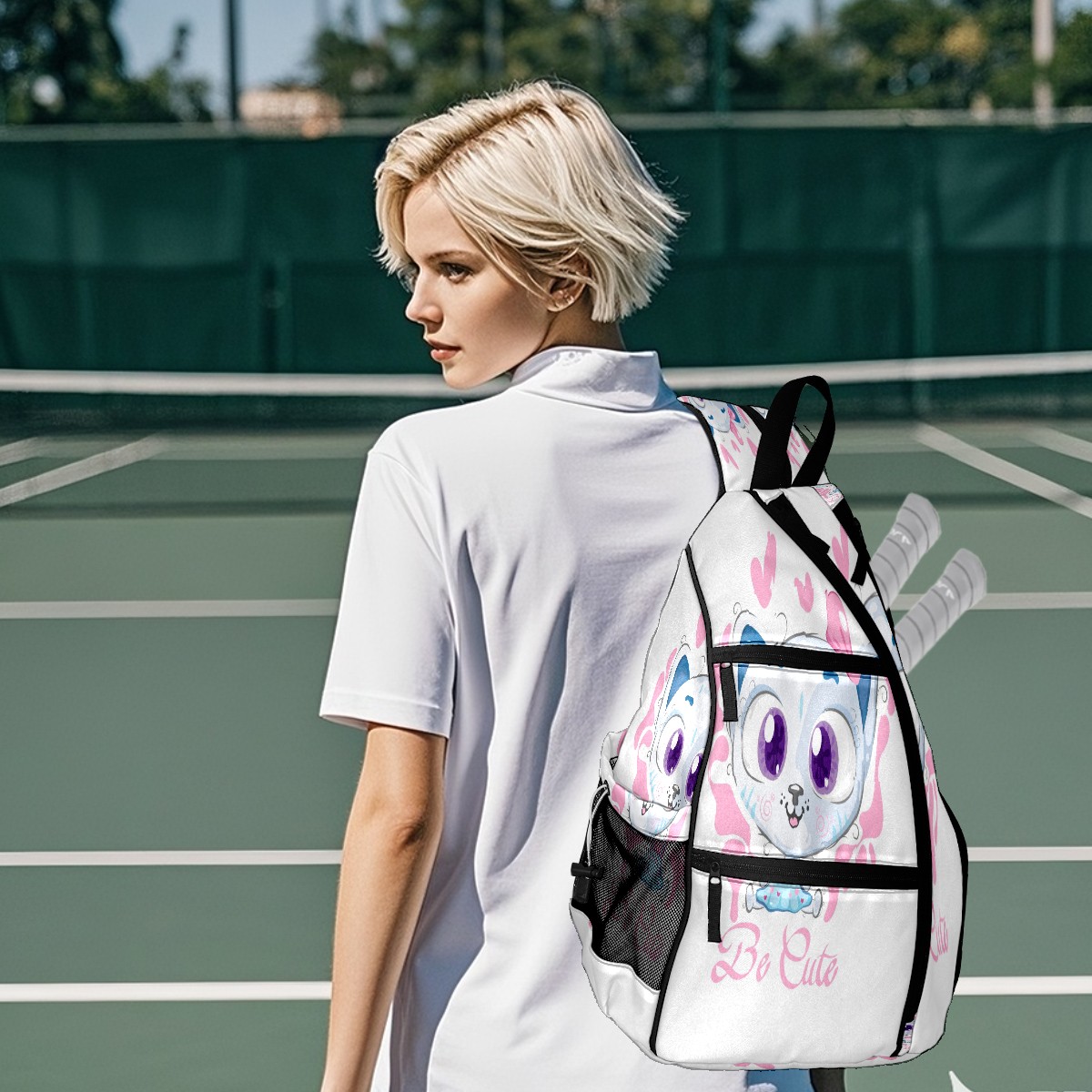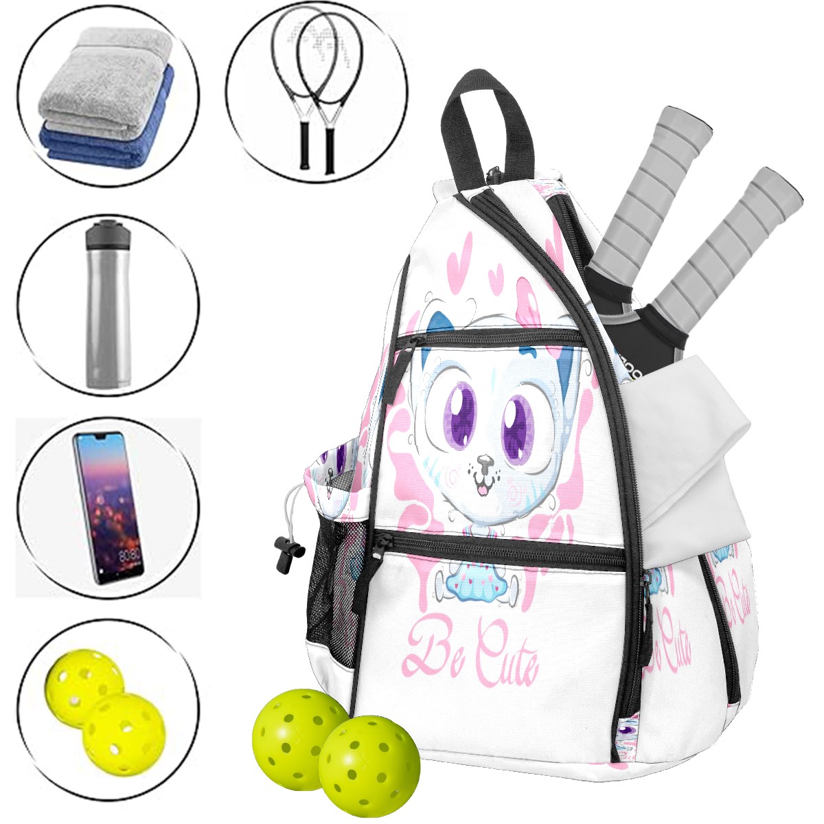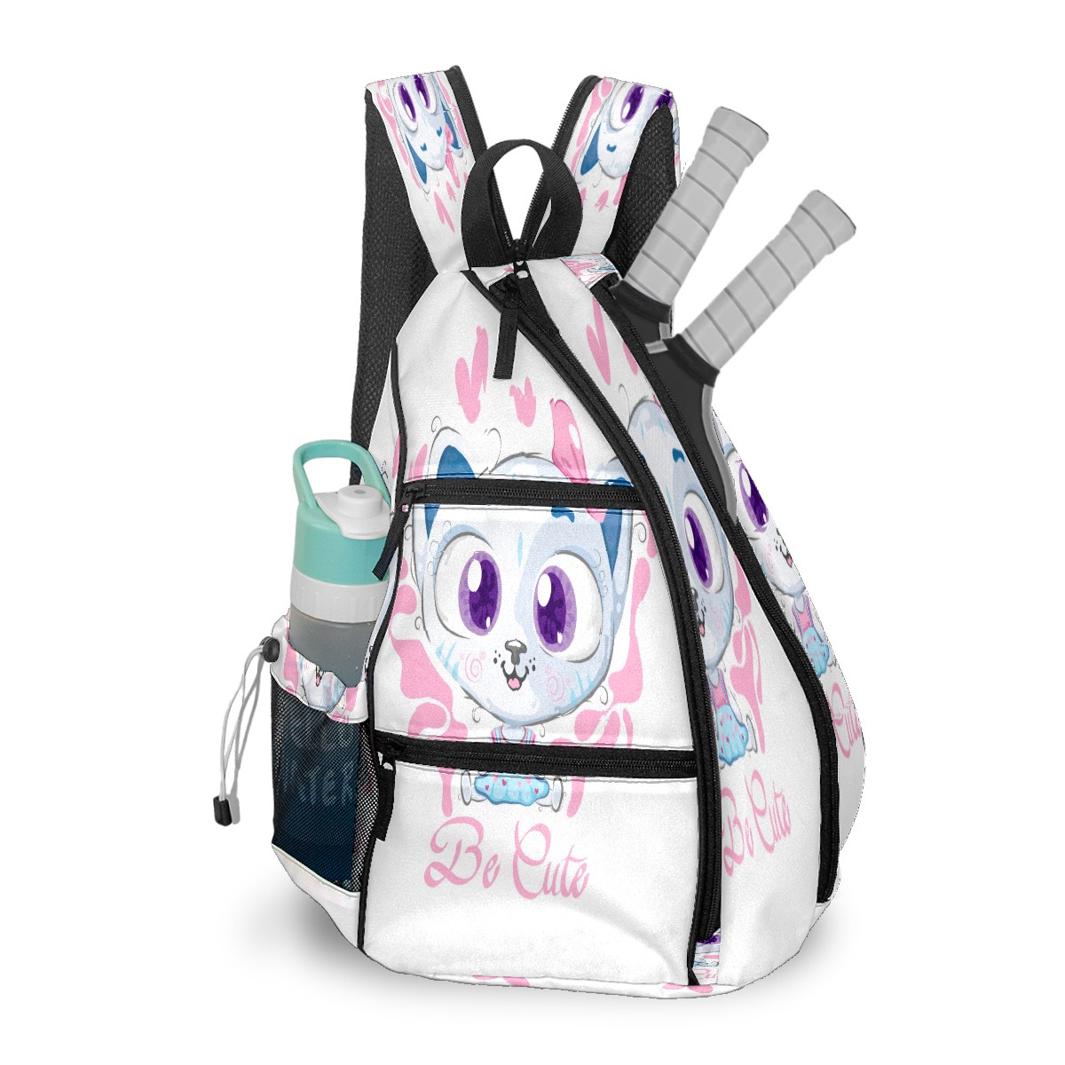 Multifunctional Pickleball Bag,Large Capacity Sports Pickleball Racket Bag, Water Bottle Holder and Fence Hook,Suitable for Both Men Women -Hand Drawn Cute Pet Cat