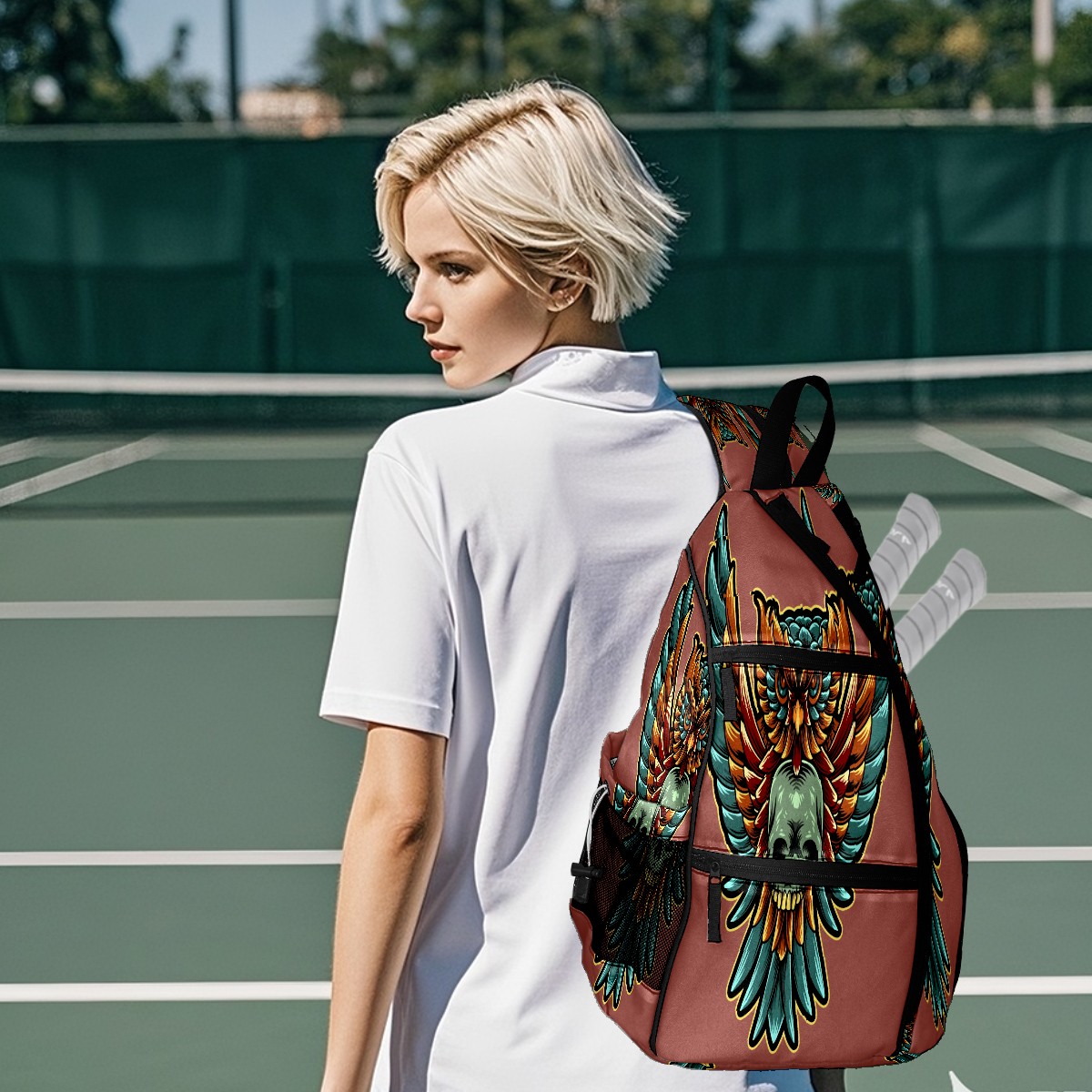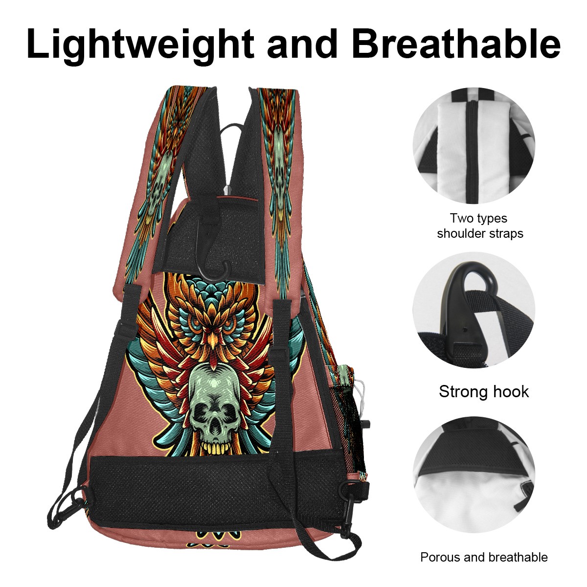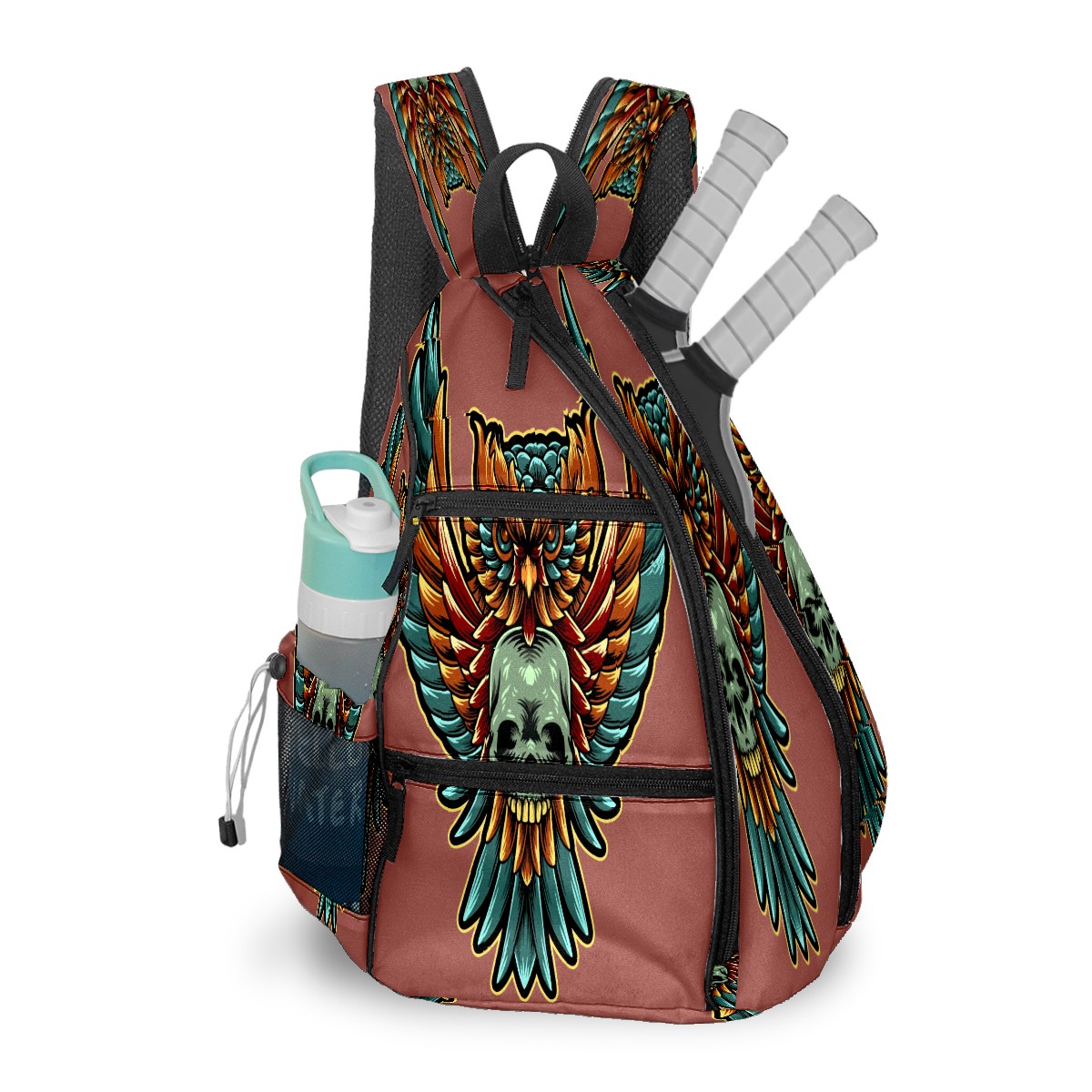 Multifunctional Pickleball Bag,Large Capacity Sports Pickleball Racket Bag, Water Bottle Holder and Fence Hook,Suitable for Both Men Women -Art Owl Skull