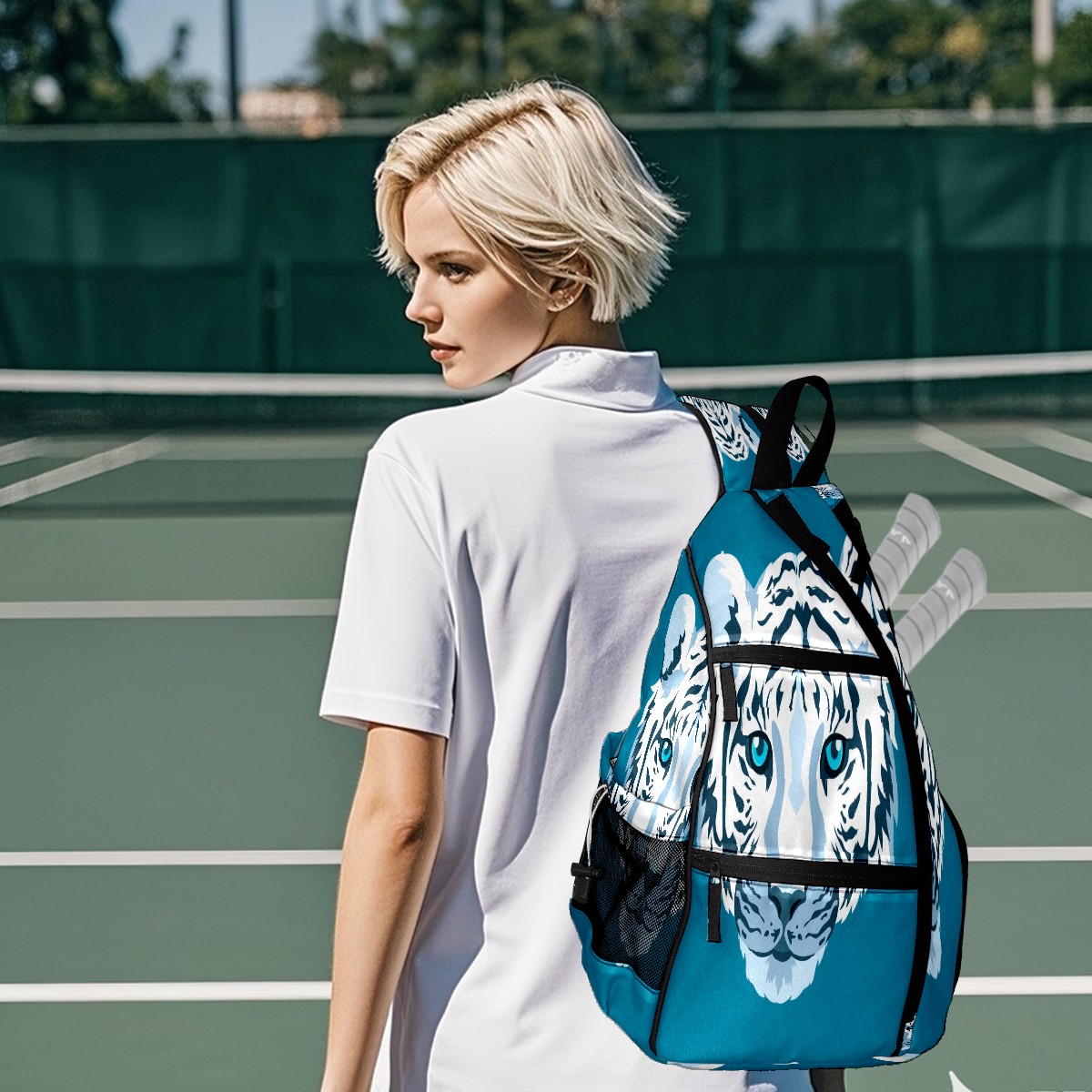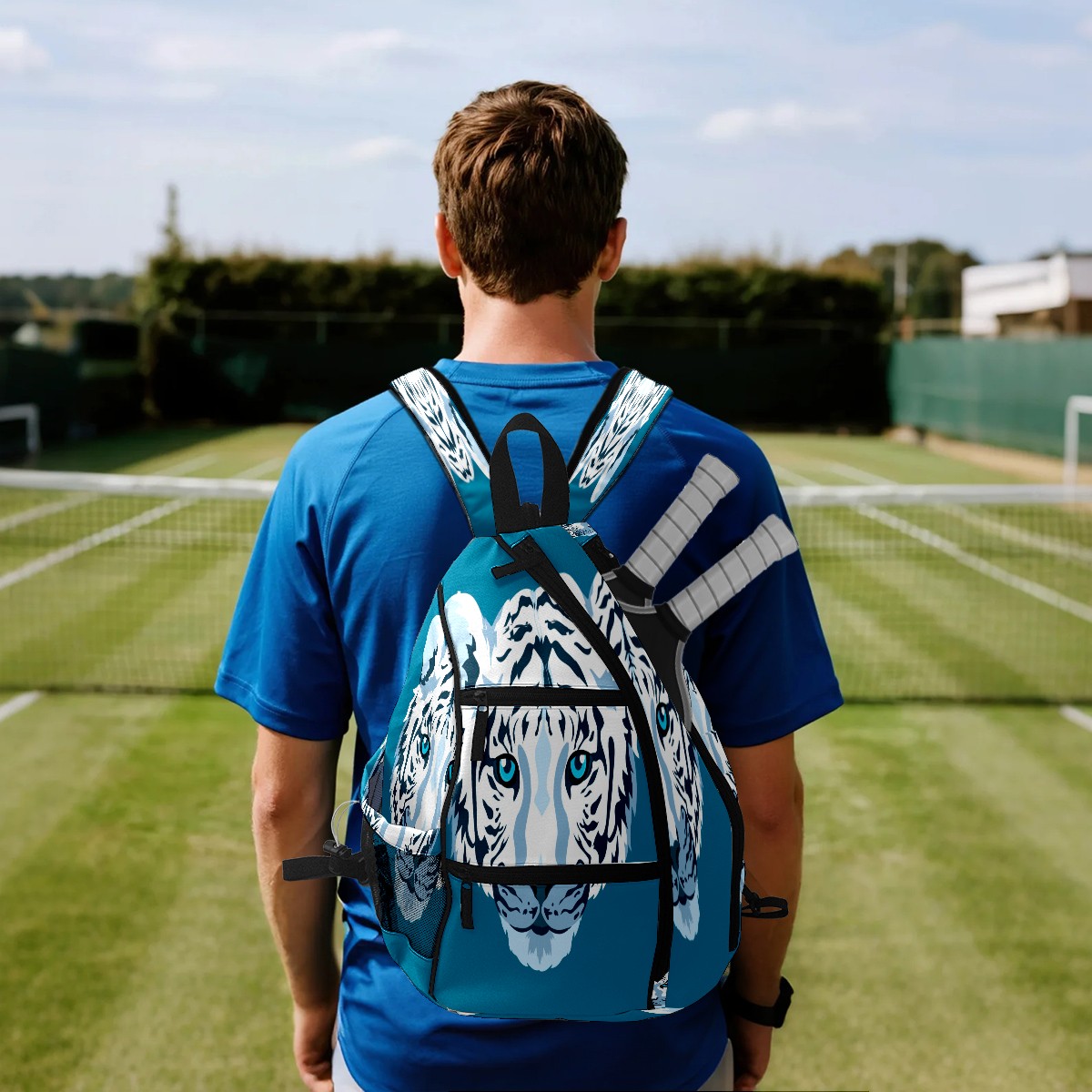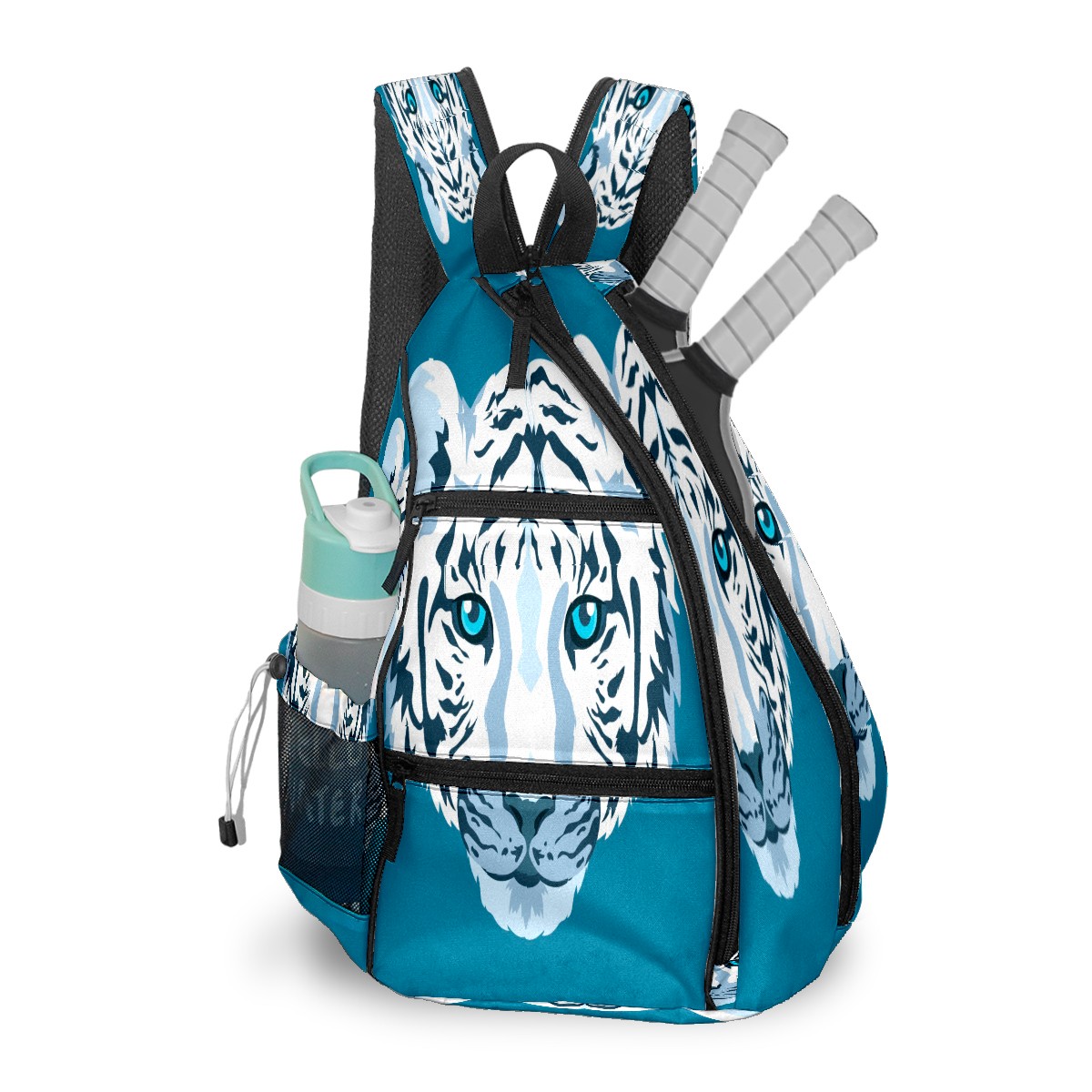 Multifunctional Pickleball Bag,Large Capacity Sports Pickleball Racket Bag, Water Bottle Holder and Fence Hook,Suitable for Both Men Women -Elegant White Tiger Face