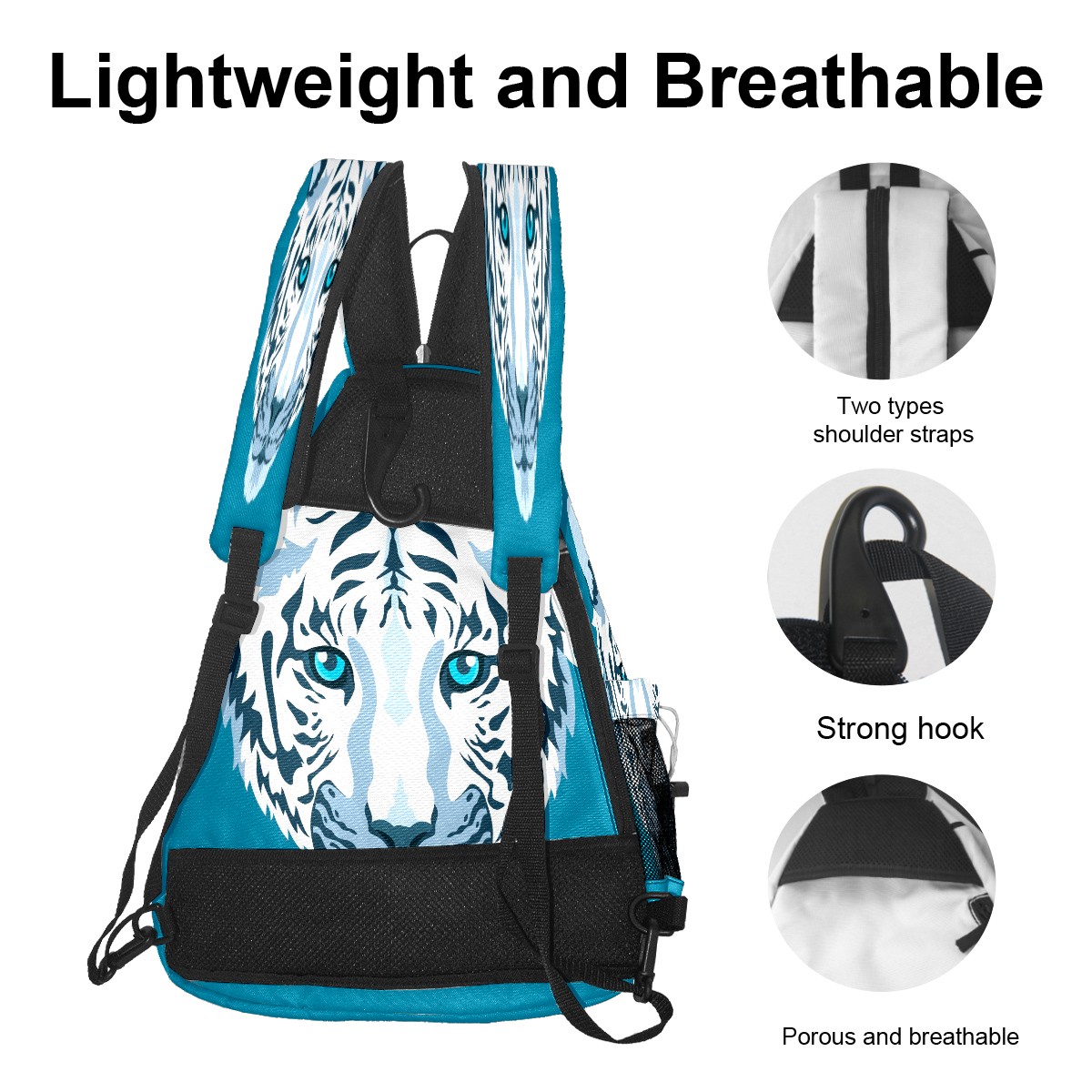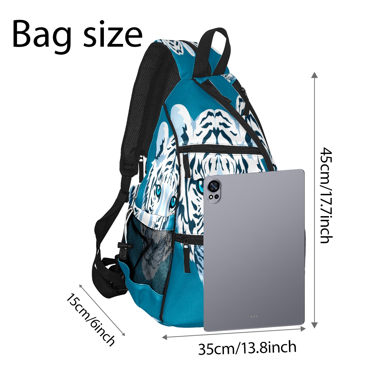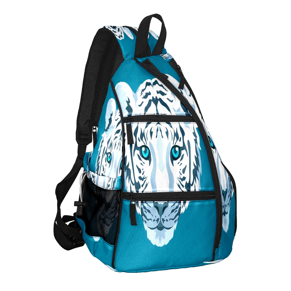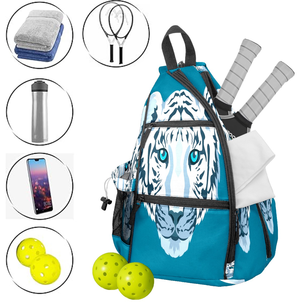 Multifunctional Pickleball Bag,Large Capacity Sports Pickleball Racket Bag, Water Bottle Holder and Fence Hook,Suitable for Both Men Women -Elegant White Tiger Face