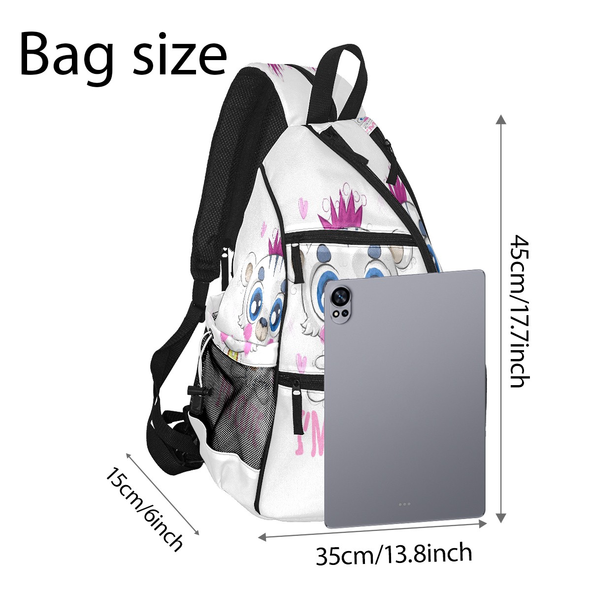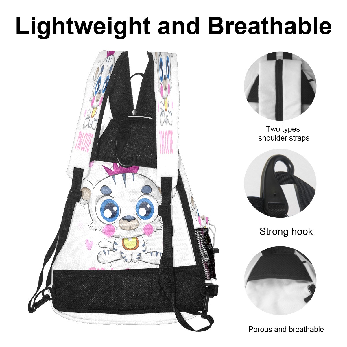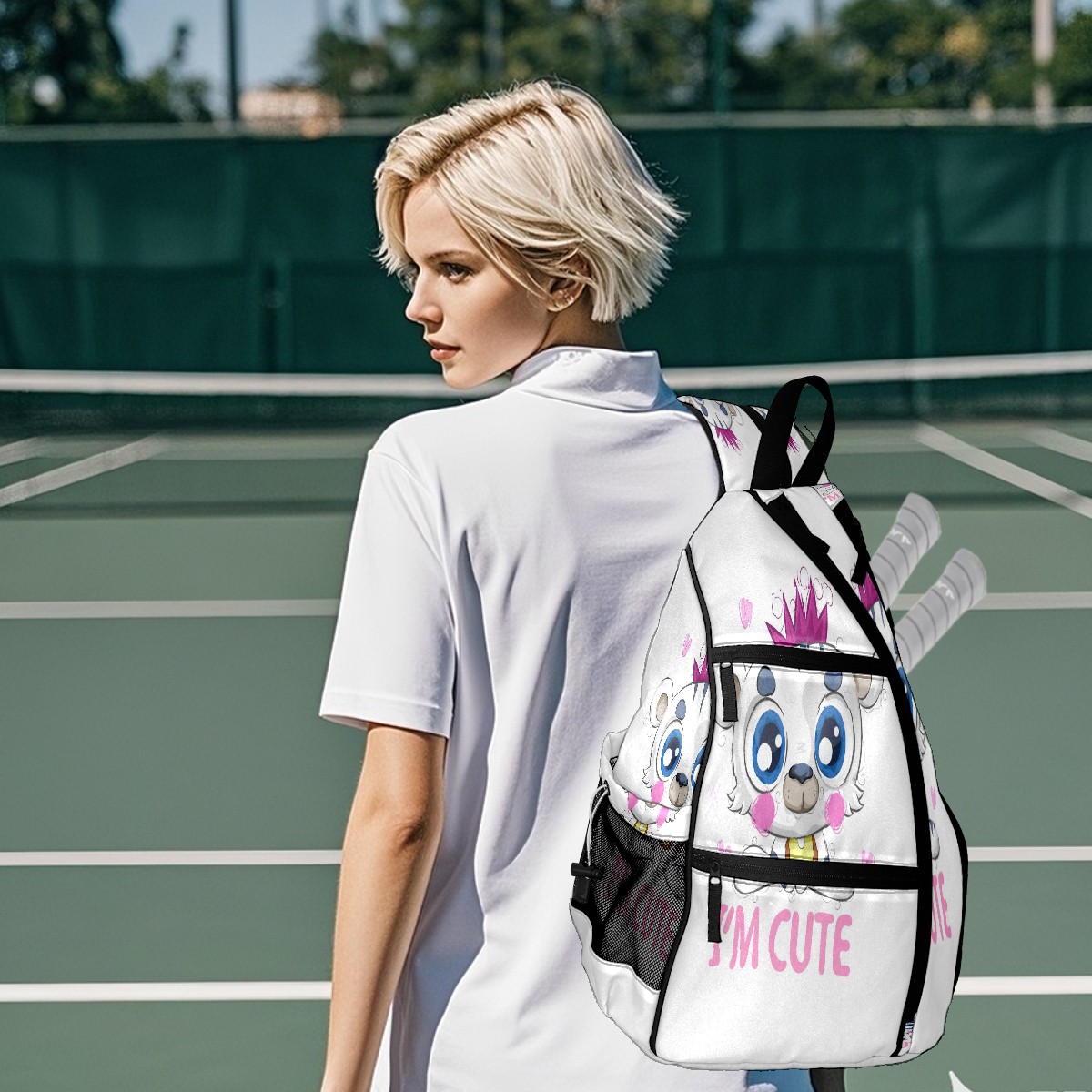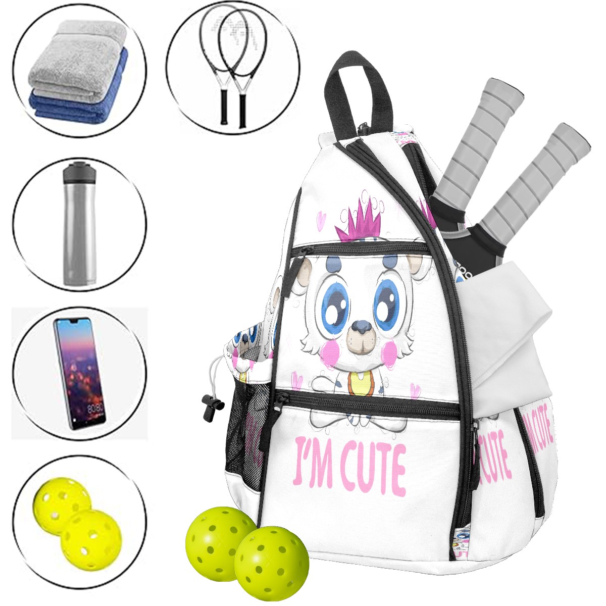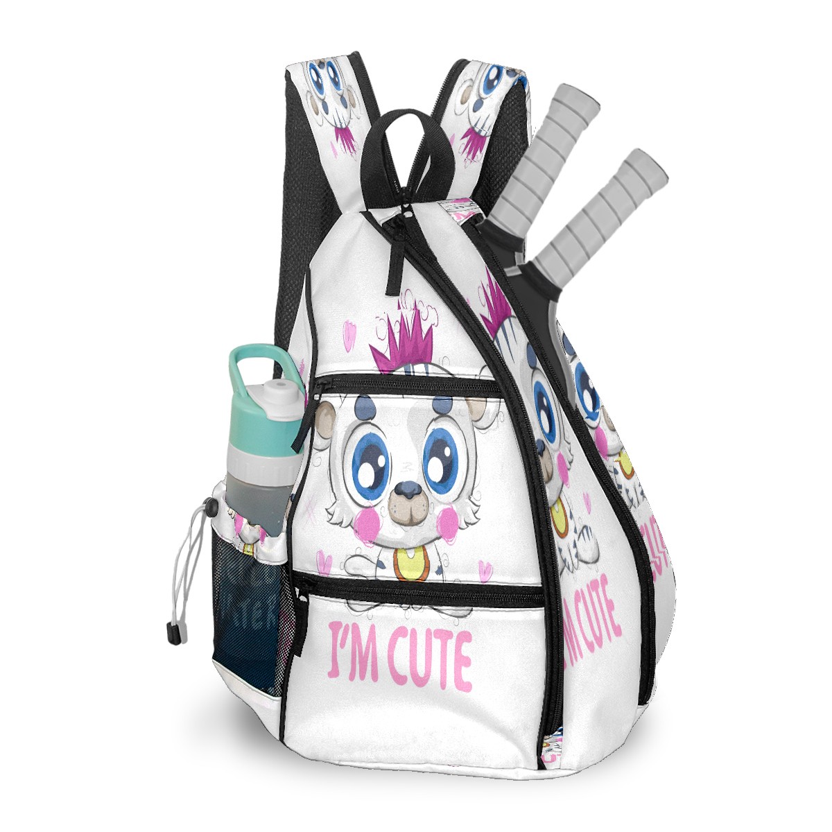 Multifunctional Pickleball Bag,Large Capacity Sports Pickleball Racket Bag, Water Bottle Holder and Fence Hook,Suitable for Both Men Women -Cartoon Cute Little White Tiger