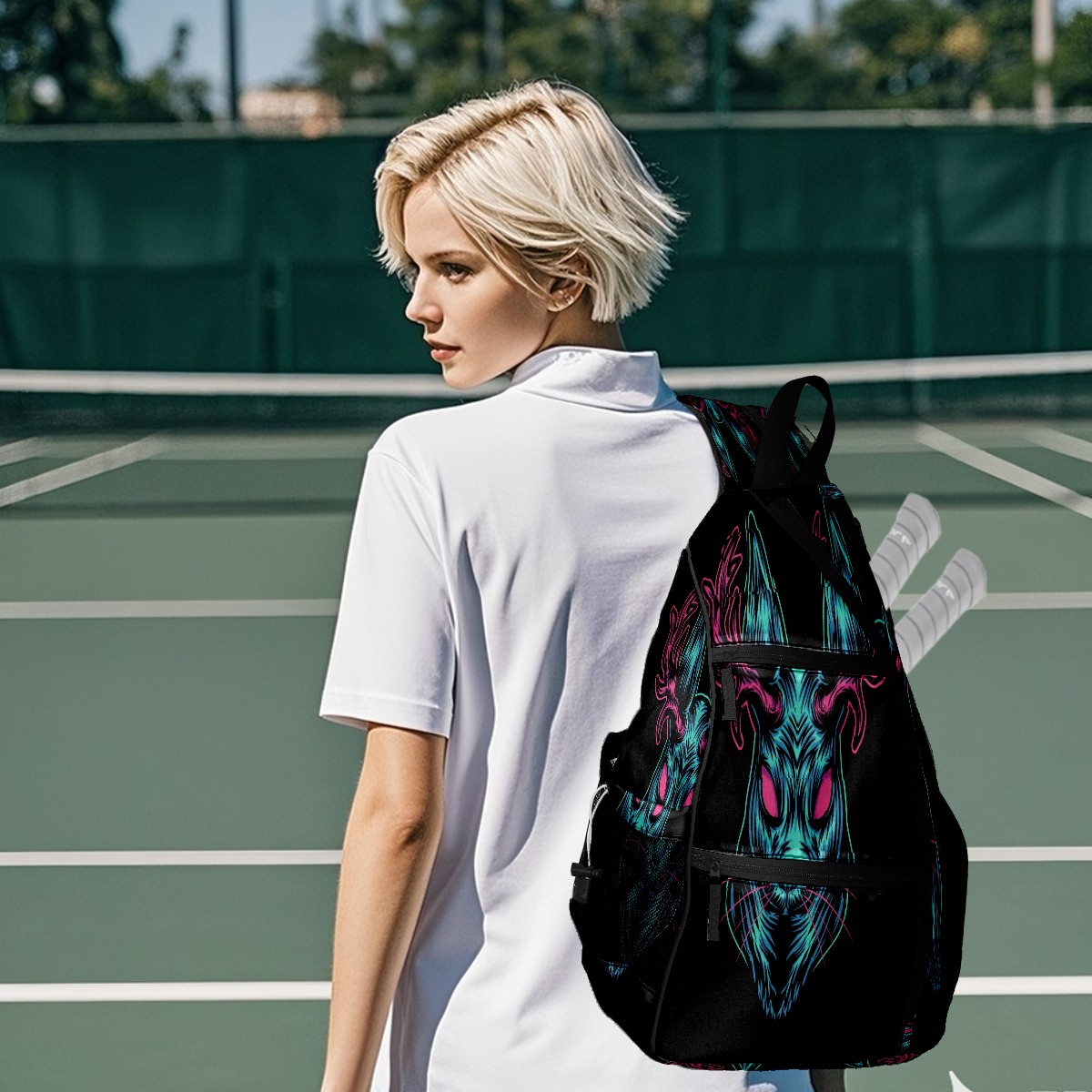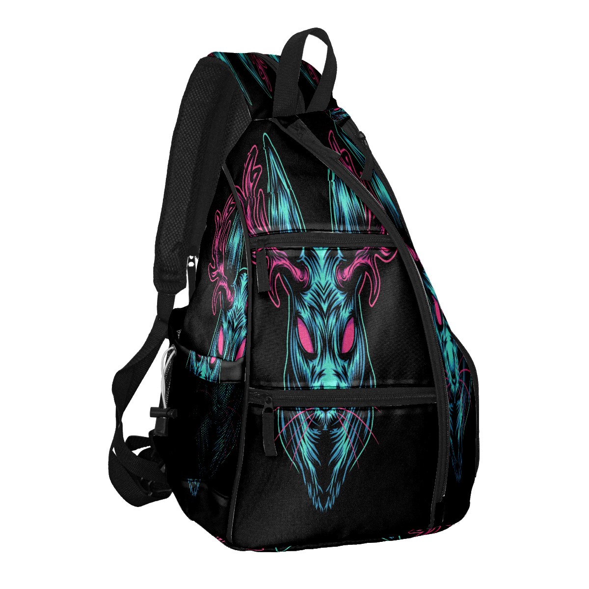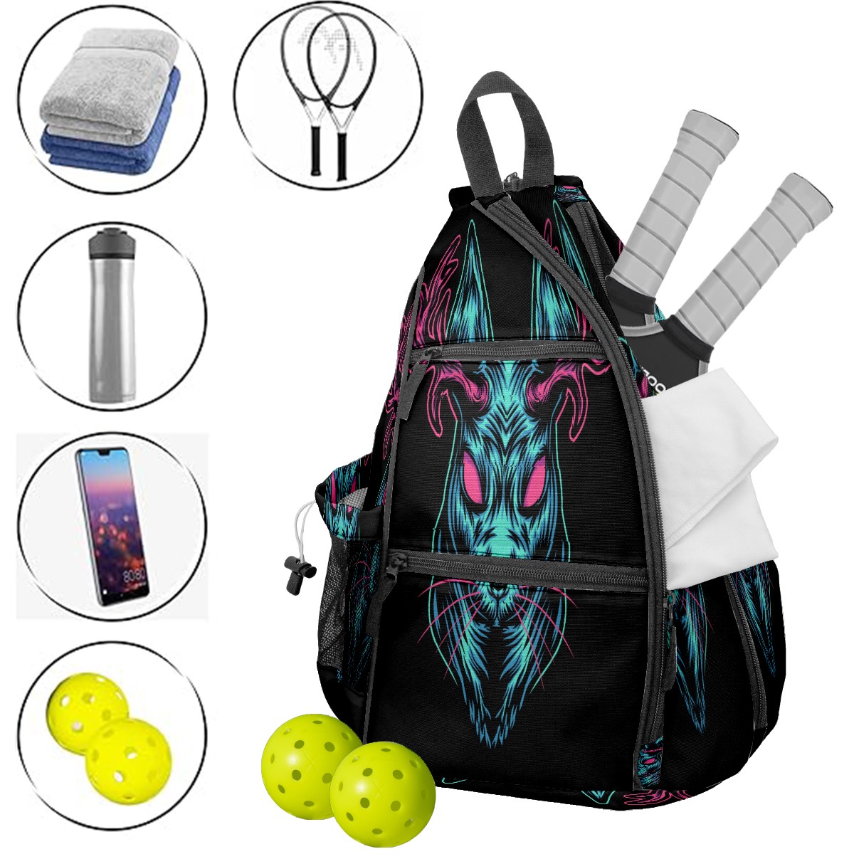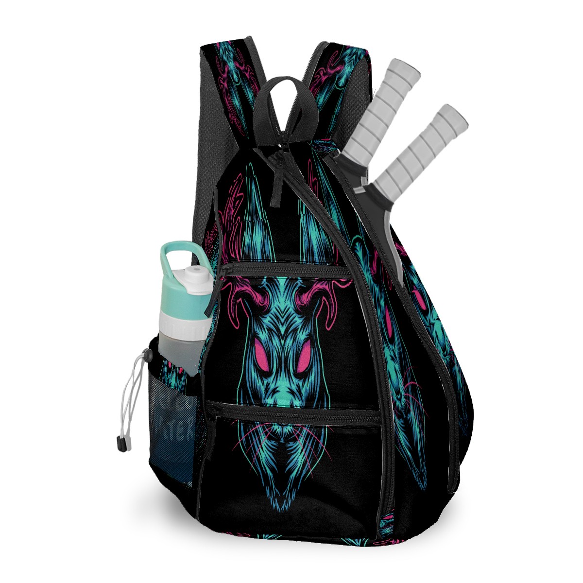 Multifunctional Pickleball Bag,Large Capacity Sports Pickleball Racket Bag, Water Bottle Holder and Fence Hook,Suitable for Both Men Women -Black Devil Deer Head