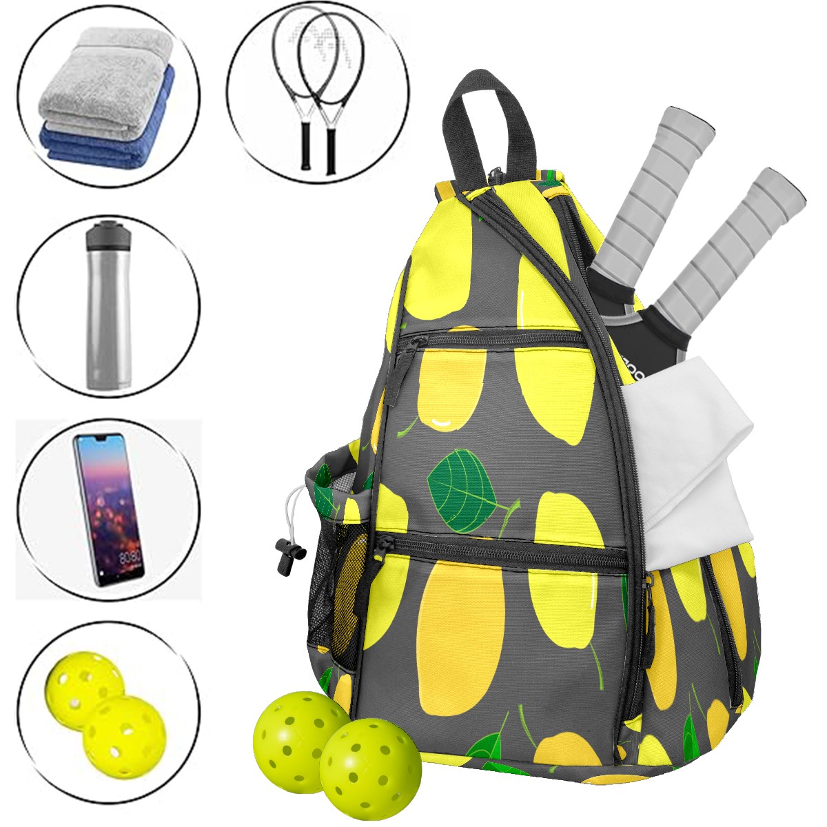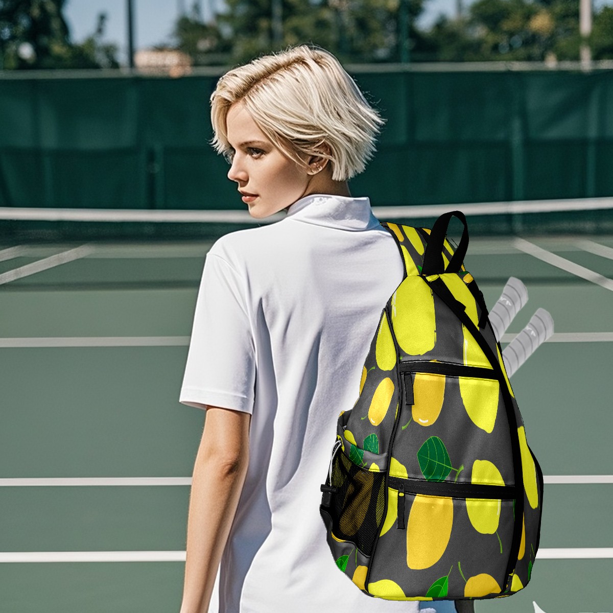 Multifunctional Pickleball Bag,Large Capacity Sports Pickleball Racket Bag, Water Bottle Holder and Fence Hook,Suitable for Both Men Women -Fresh Lemon Pattern