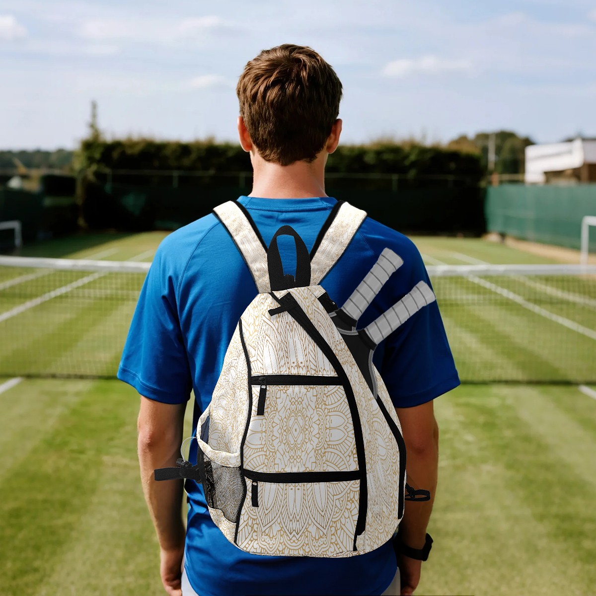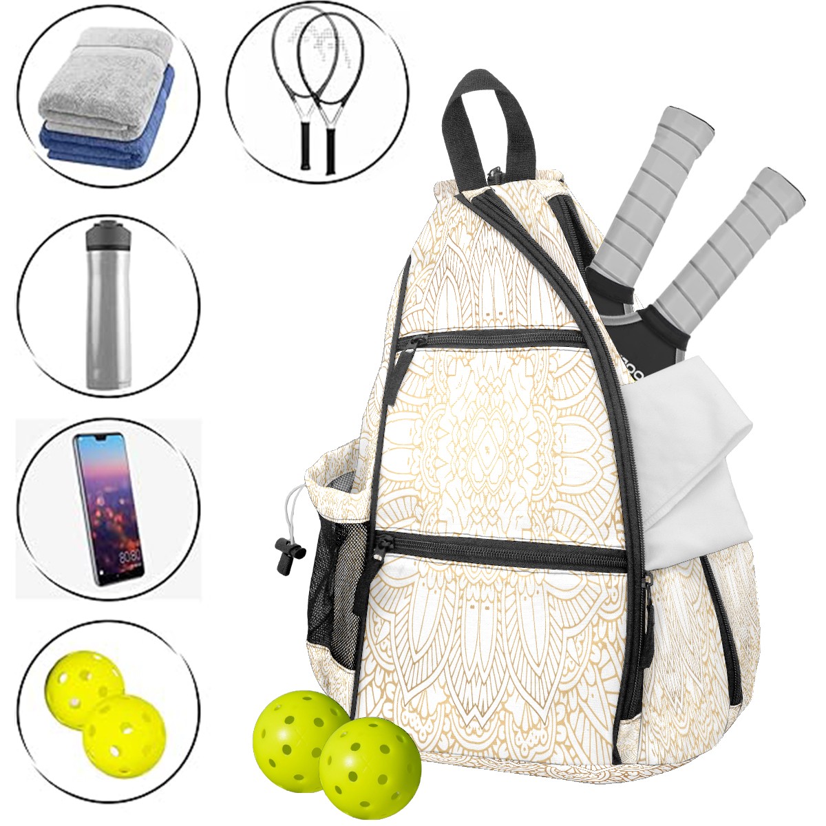 Multifunctional Pickleball Bag,Large Capacity Sports Pickleball Racket Bag, Water Bottle Holder and Fence Hook,Suitable for Both Men Women -Decorative Mandala Background