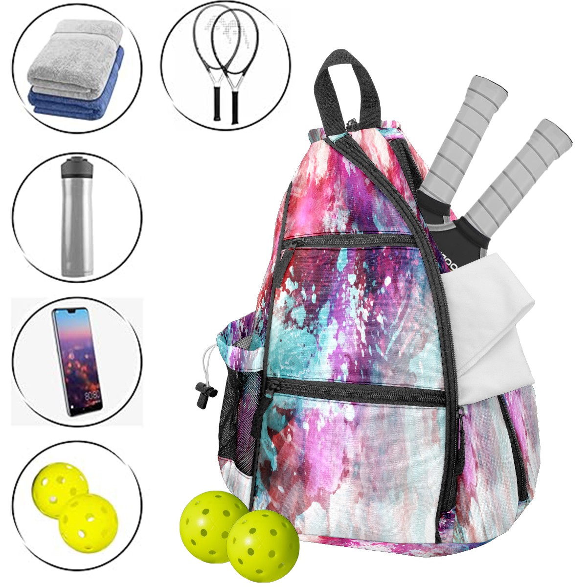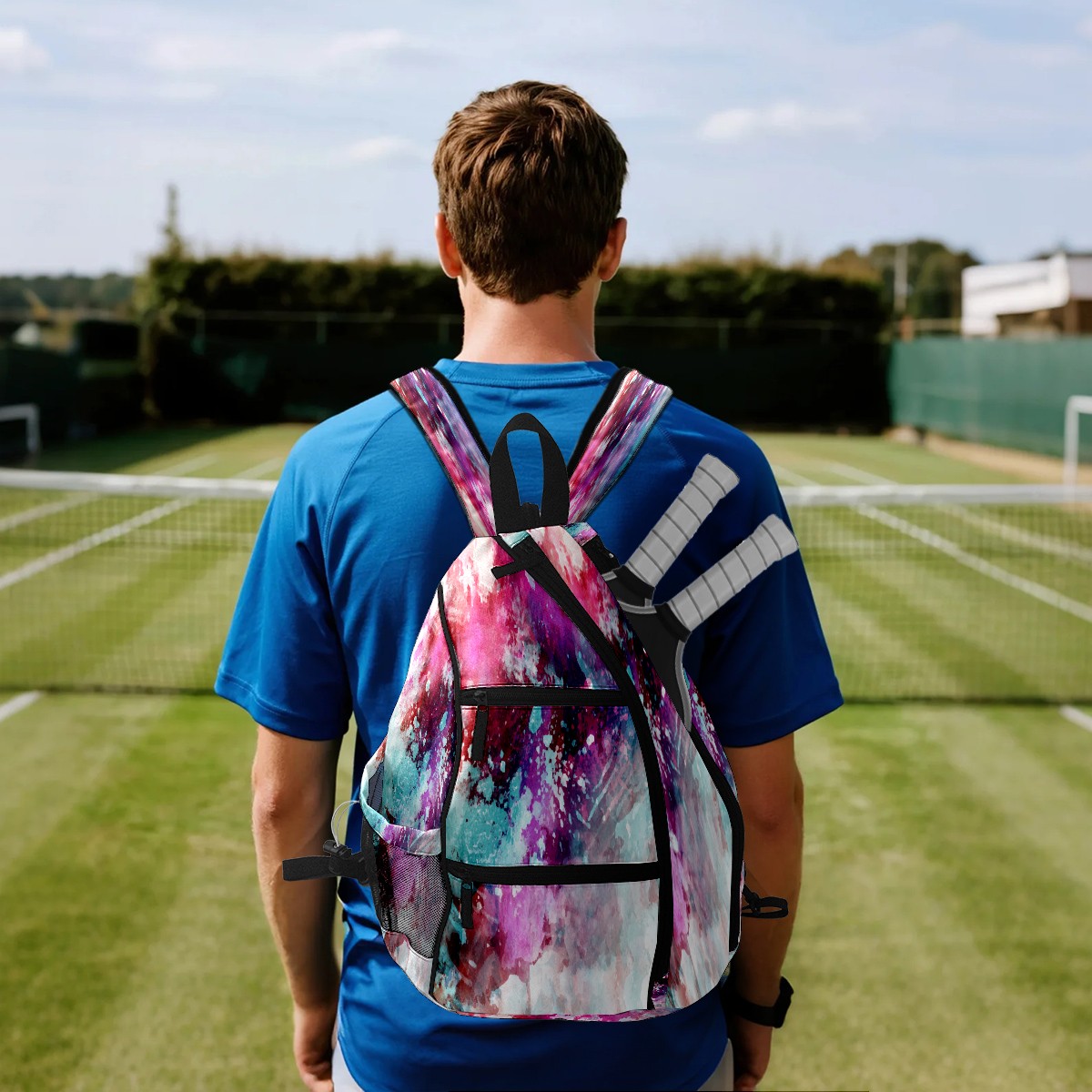 Multifunctional Pickleball Bag,Large Capacity Sports Pickleball Racket Bag, Water Bottle Holder and Fence Hook,Suitable for Both Men Women -Color Pattern