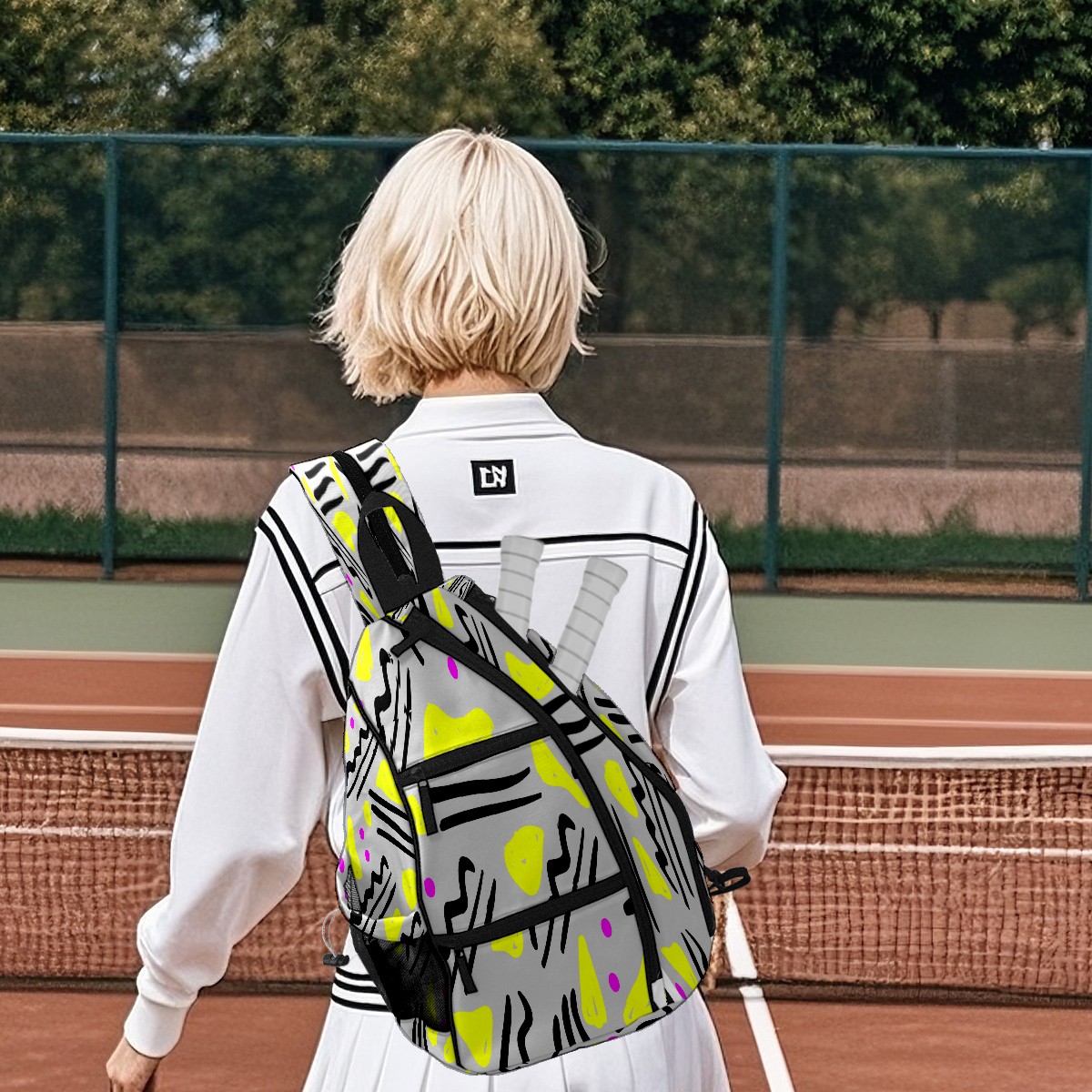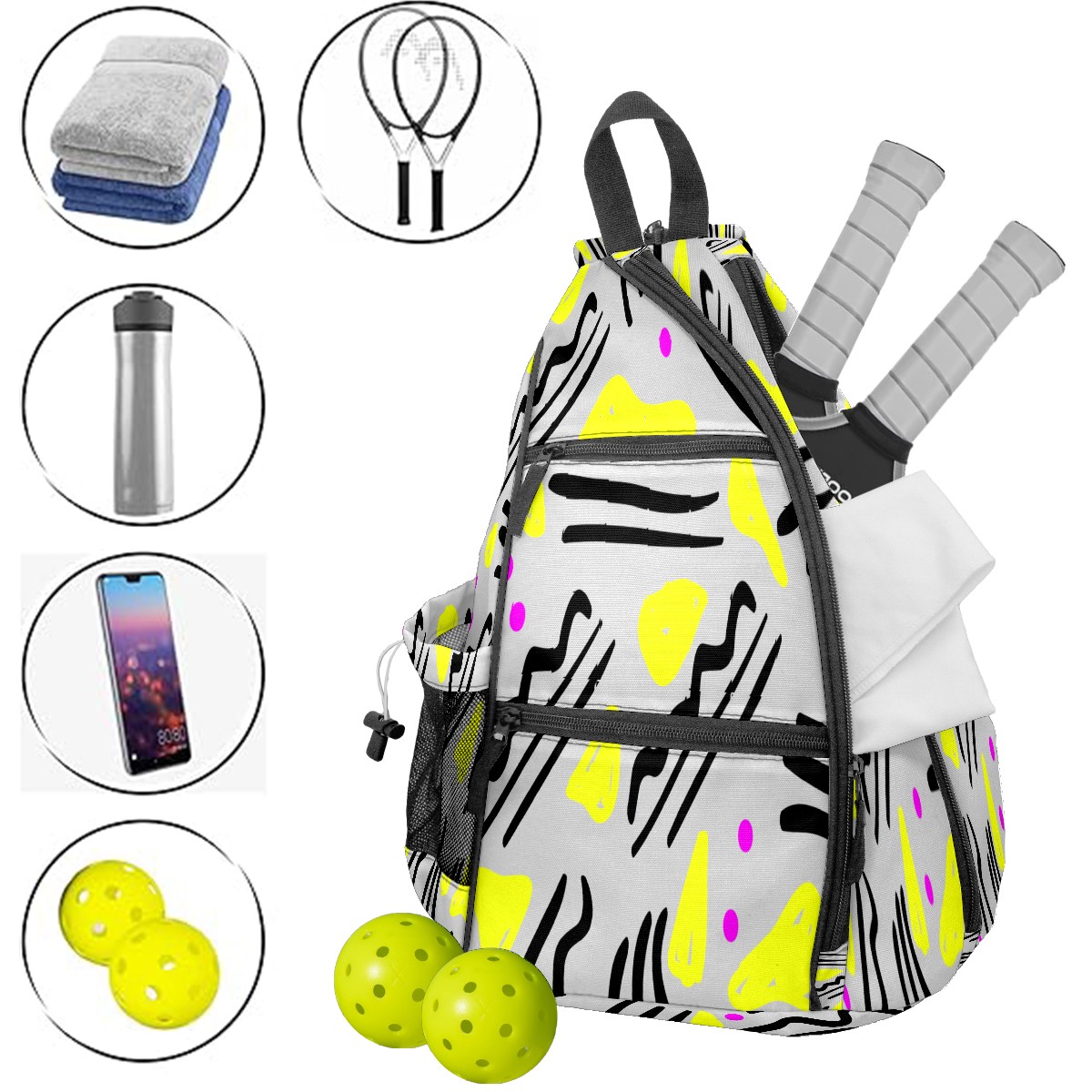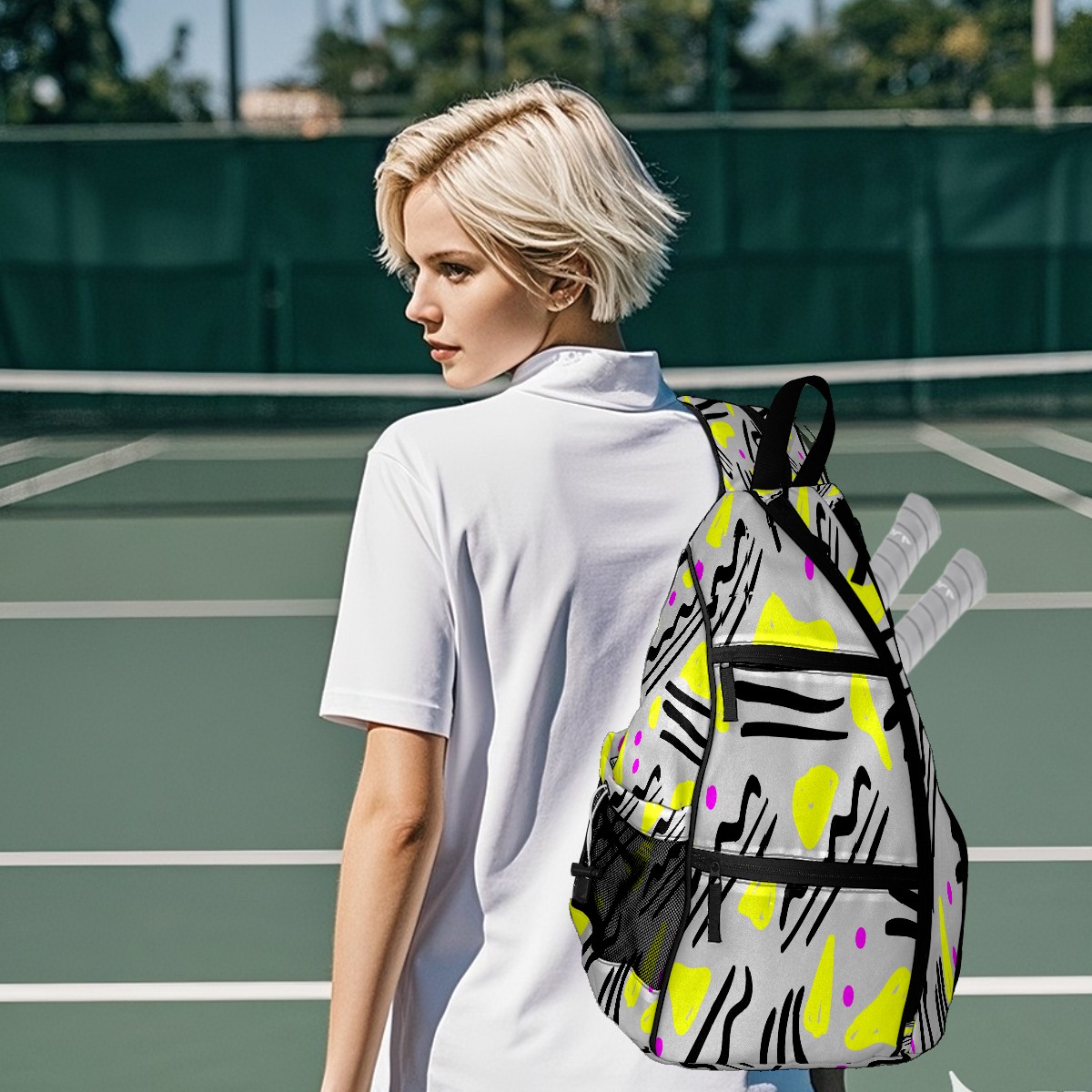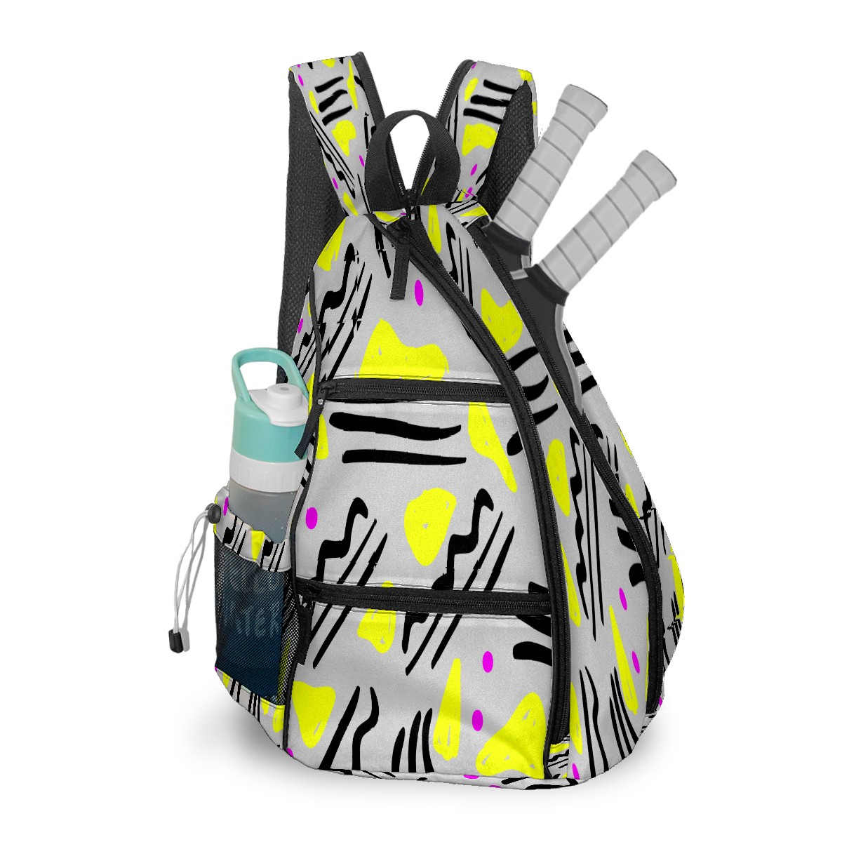 Multifunctional Pickleball Bag,Large Capacity Sports Pickleball Racket Bag, Water Bottle Holder and Fence Hook,Suitable for Both Men Women -Color Geometric Figure Background