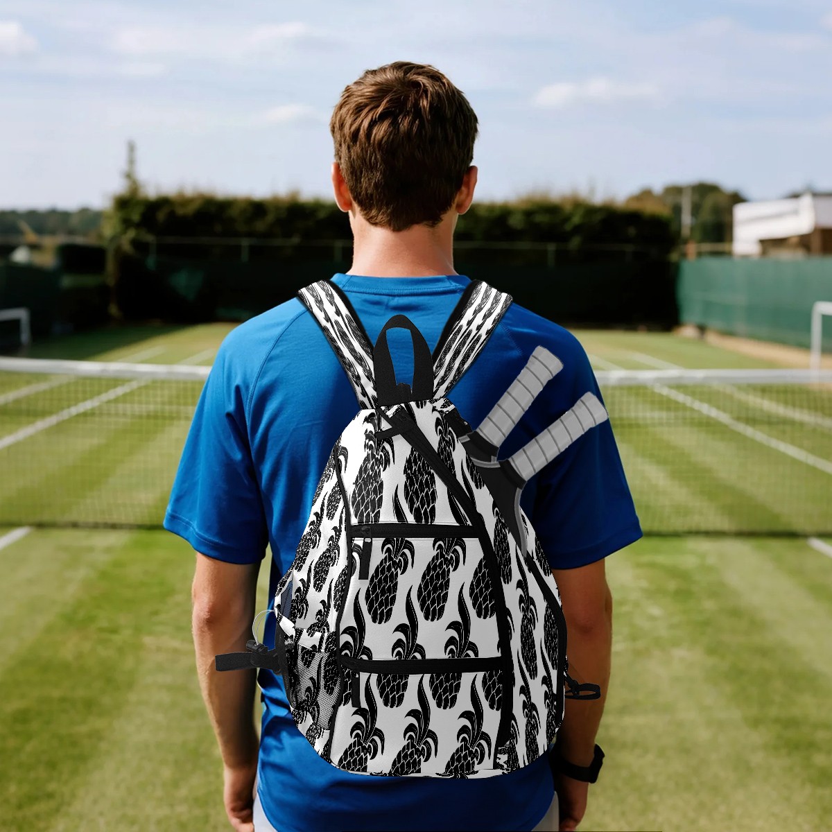 Multifunctional Pickleball Bag,Large Capacity Sports Pickleball Racket Bag, Water Bottle Holder and Fence Hook,Suitable for Both Men Women -Black And White Pineapple Fruit