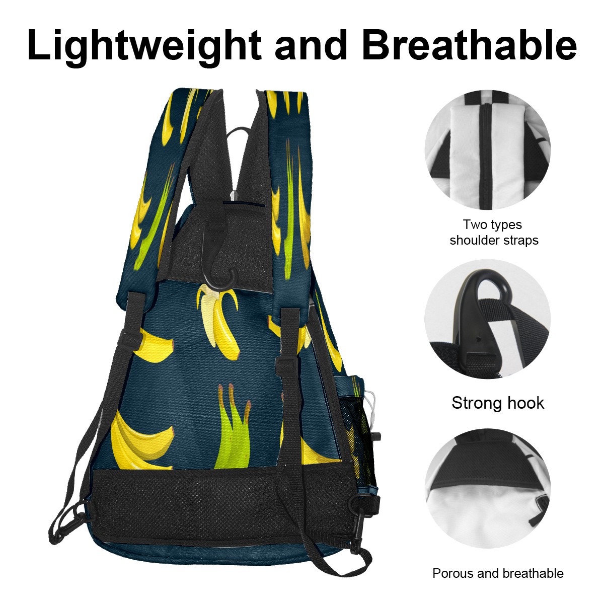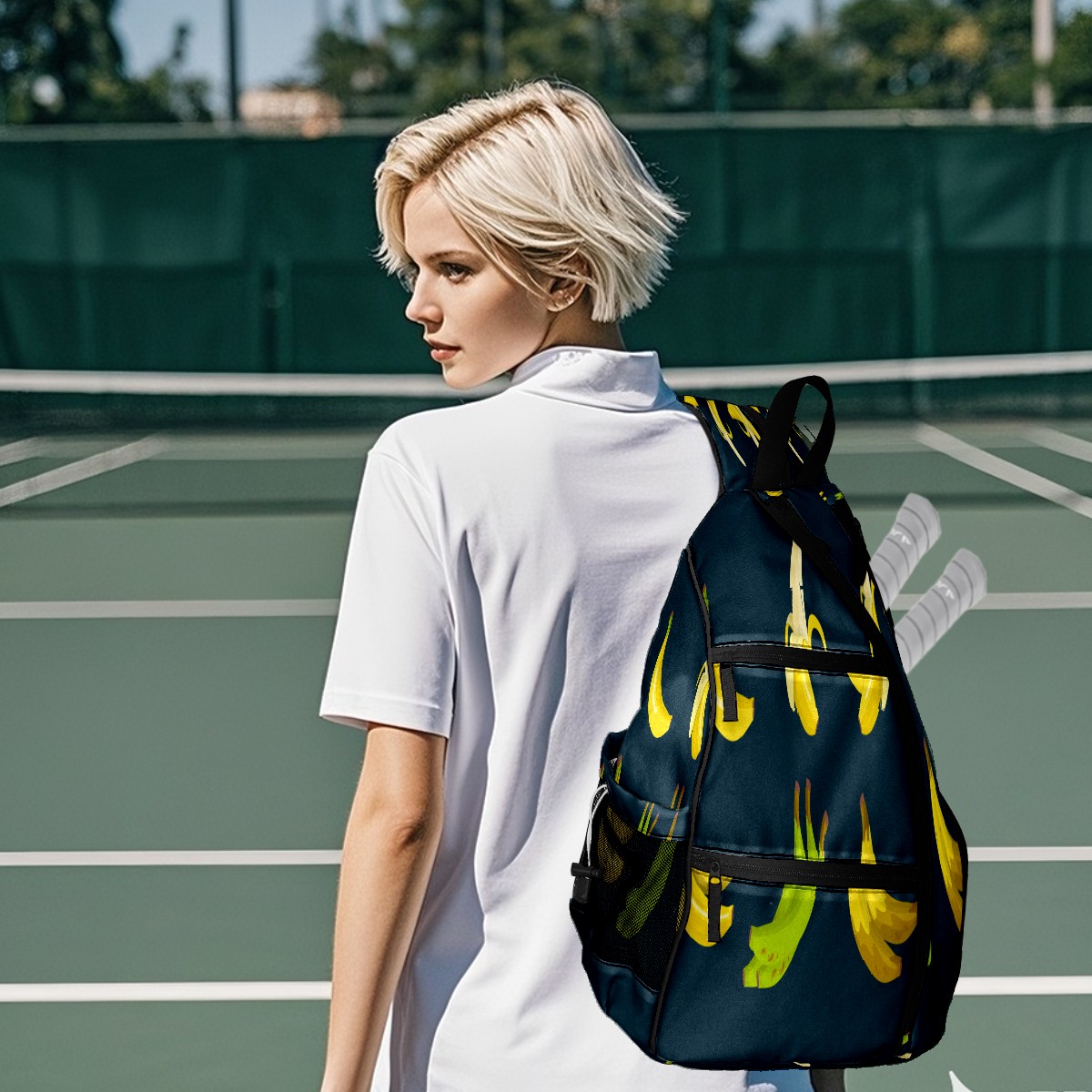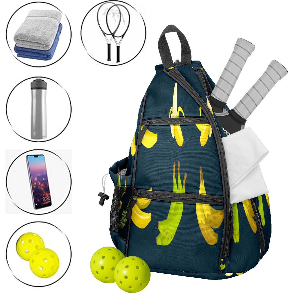 Multifunctional Pickleball Bag,Large Capacity Sports Pickleball Racket Bag, Water Bottle Holder and Fence Hook,Suitable for Both Men Women -Banana