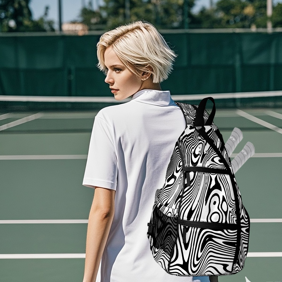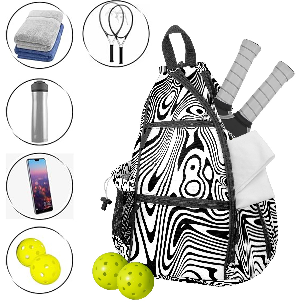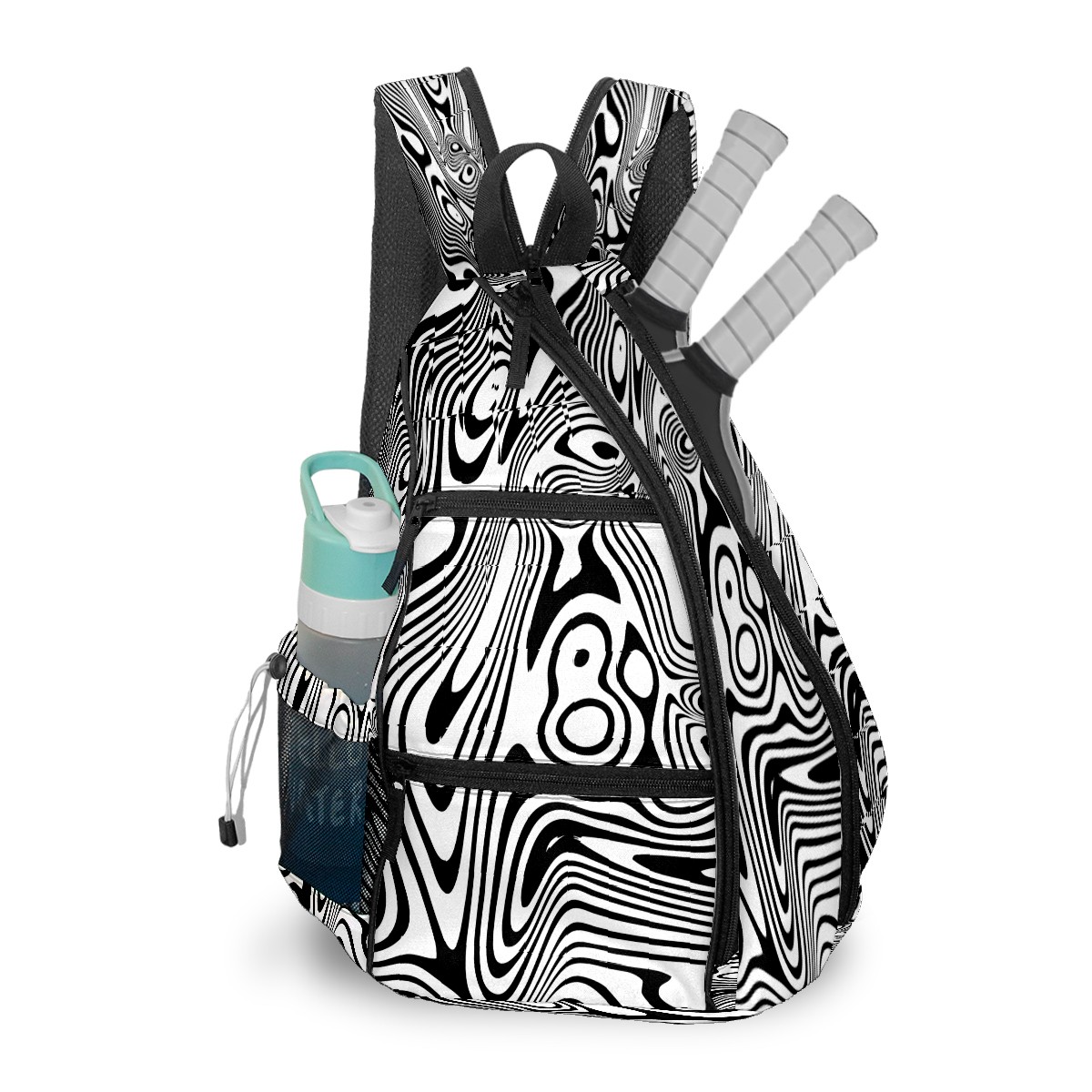 Multifunctional Pickleball Bag,Large Capacity Sports Pickleball Racket Bag, Water Bottle Holder and Fence Hook,Suitable for Both Men Women -Abstract Warped Lines Design