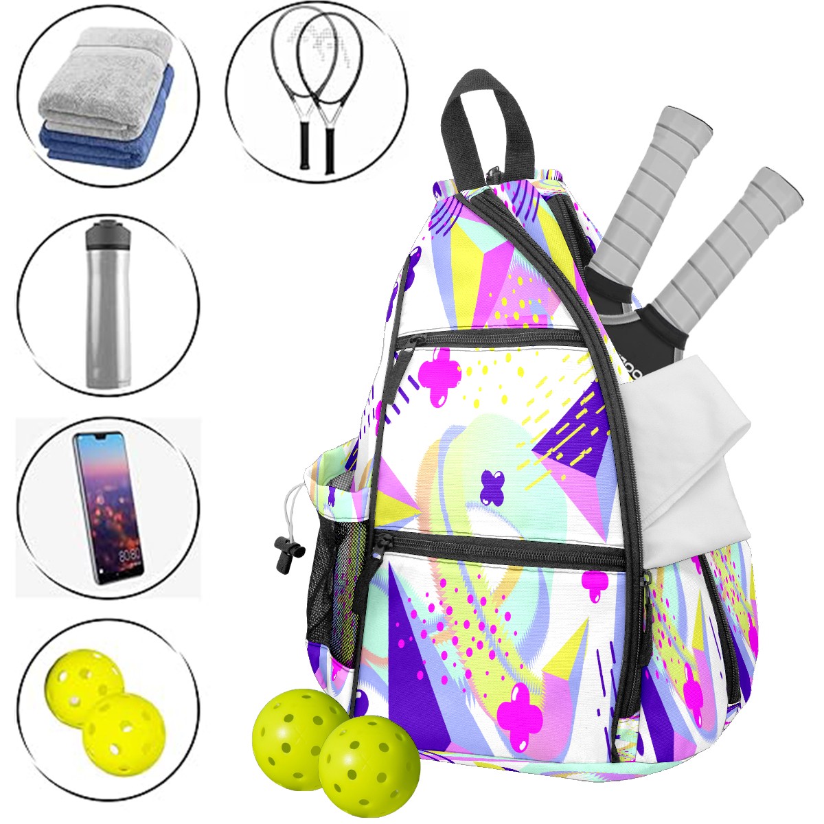 Multifunctional Pickleball Bag,Large Capacity Sports Pickleball Racket Bag, Water Bottle Holder and Fence Hook,Suitable for Both Men Women -Abstract Graphic Triangle