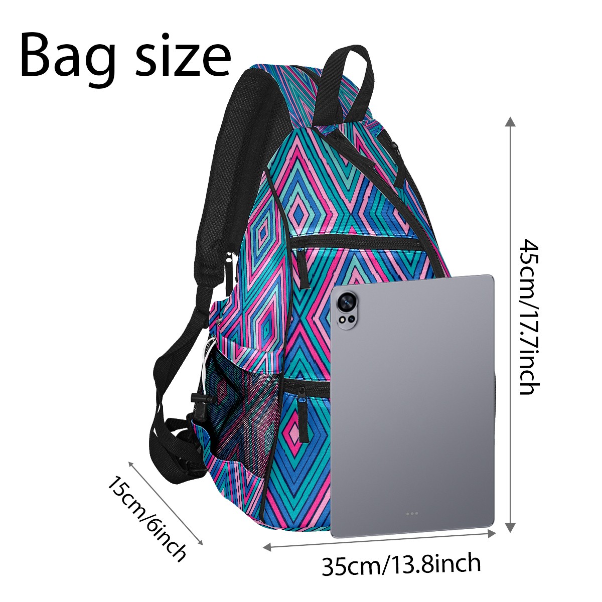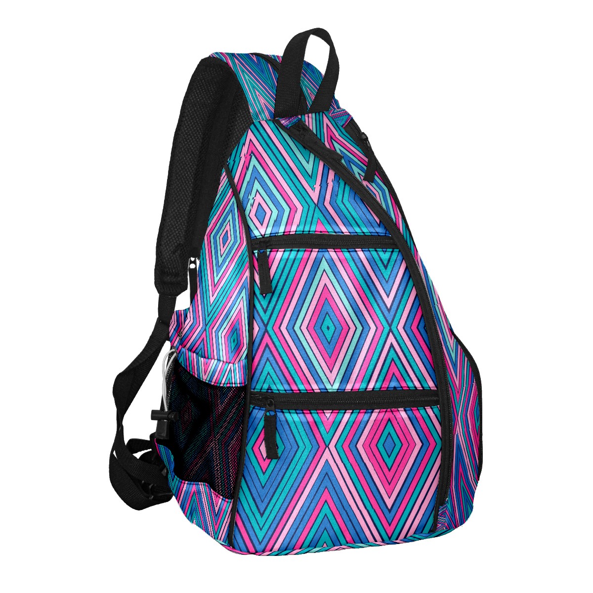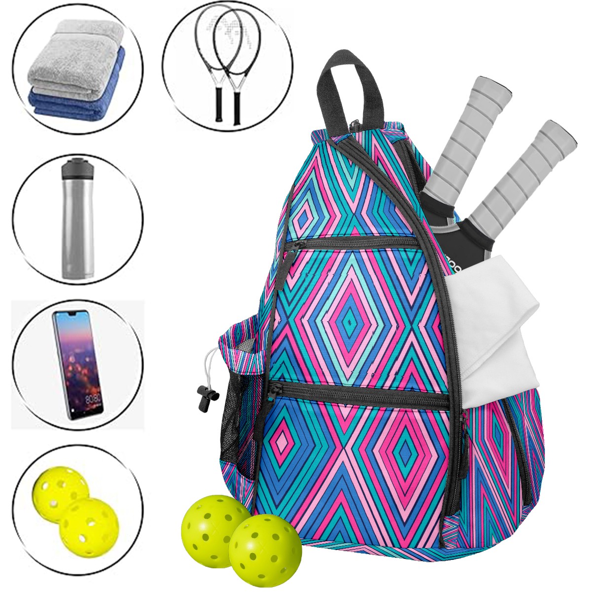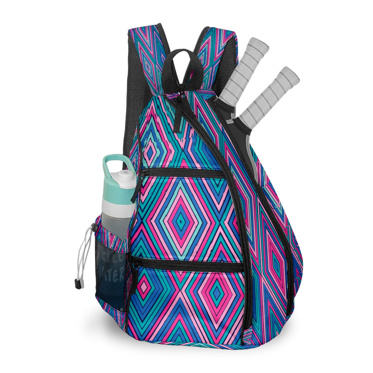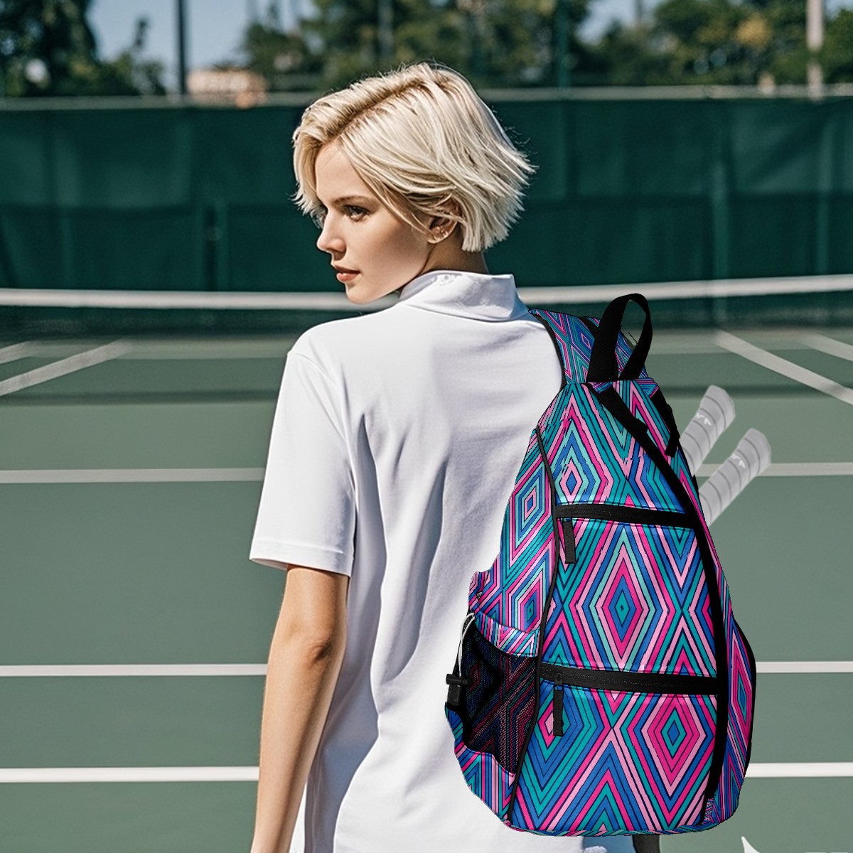 Multifunctional Pickleball Bag,Large Capacity Sports Pickleball Racket Bag, Water Bottle Holder and Fence Hook,Suitable for Both Men Women -Abstract Colorful Geometric Pattern