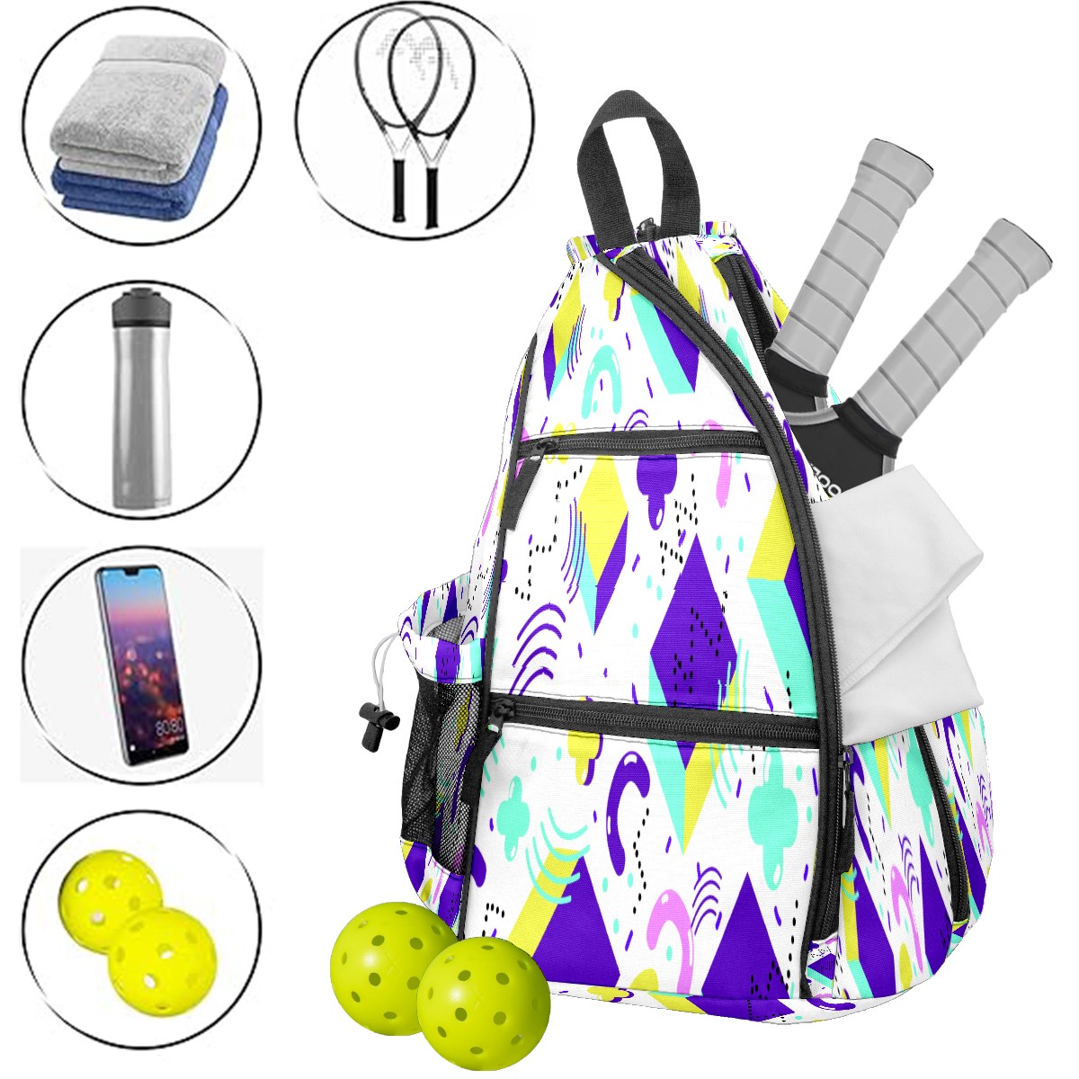 Multifunctional Pickleball Bag,Large Capacity Sports Pickleball Racket Bag, Water Bottle Holder and Fence Hook,Suitable for Both Men Women -Abstract Graphic Cube